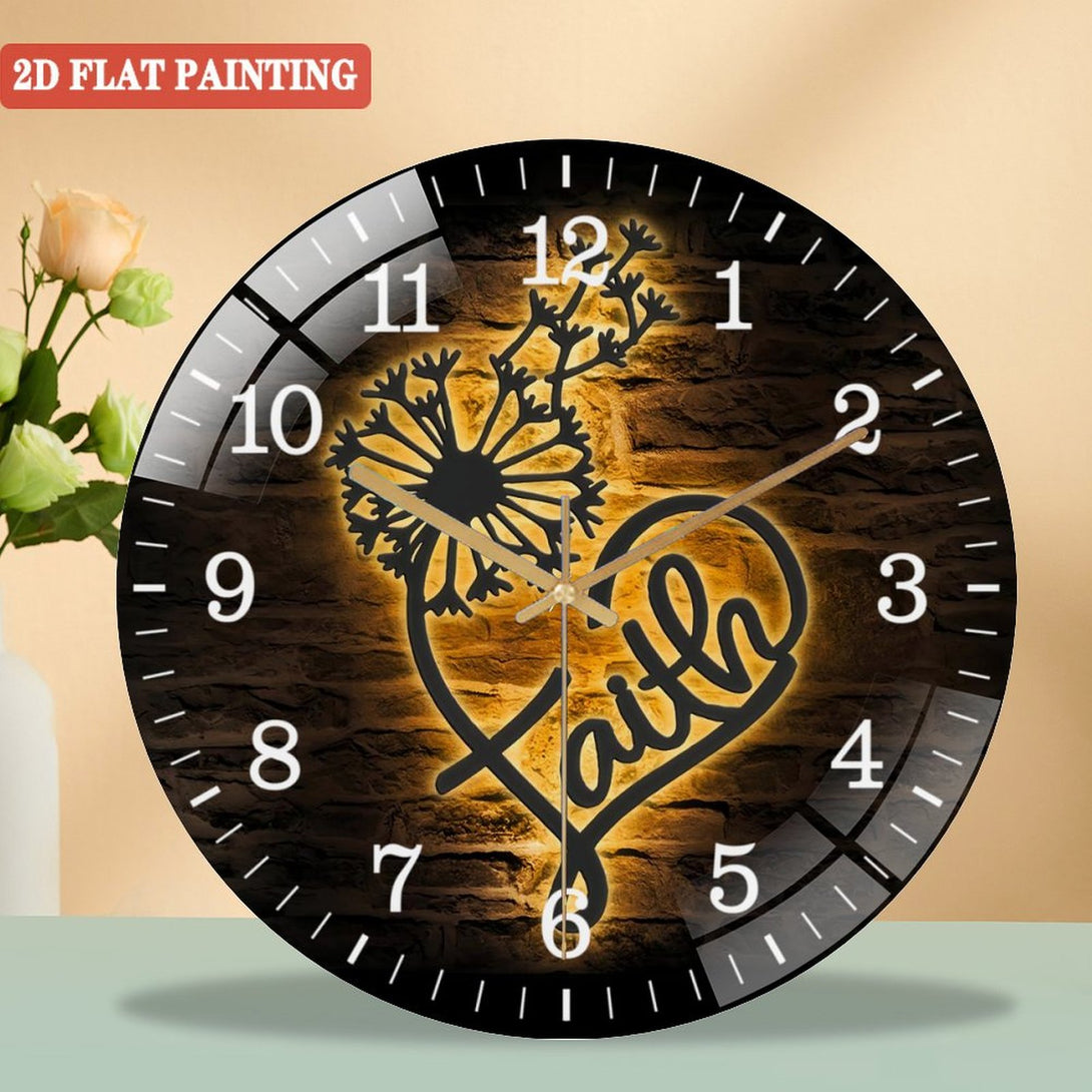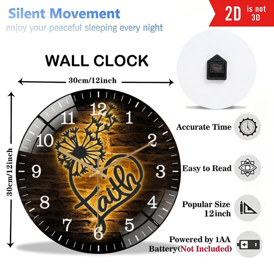 Dandelion Faith Heart Glass Wall Clocks,Christ Glass Wall Clocks,Home Decor God Faith Cross Decoration Religious Lord Housewarming Xmas Birthday
