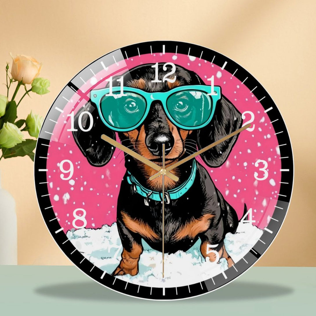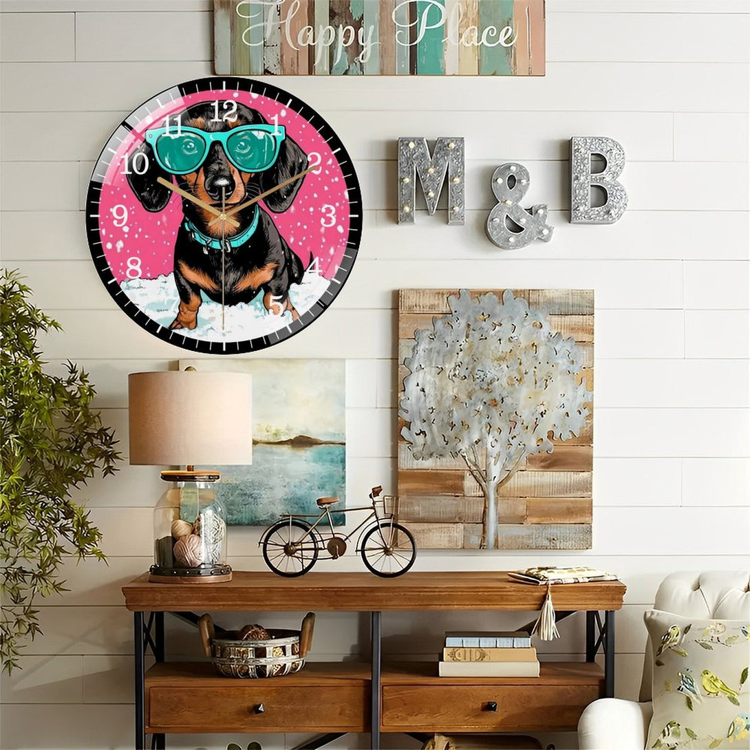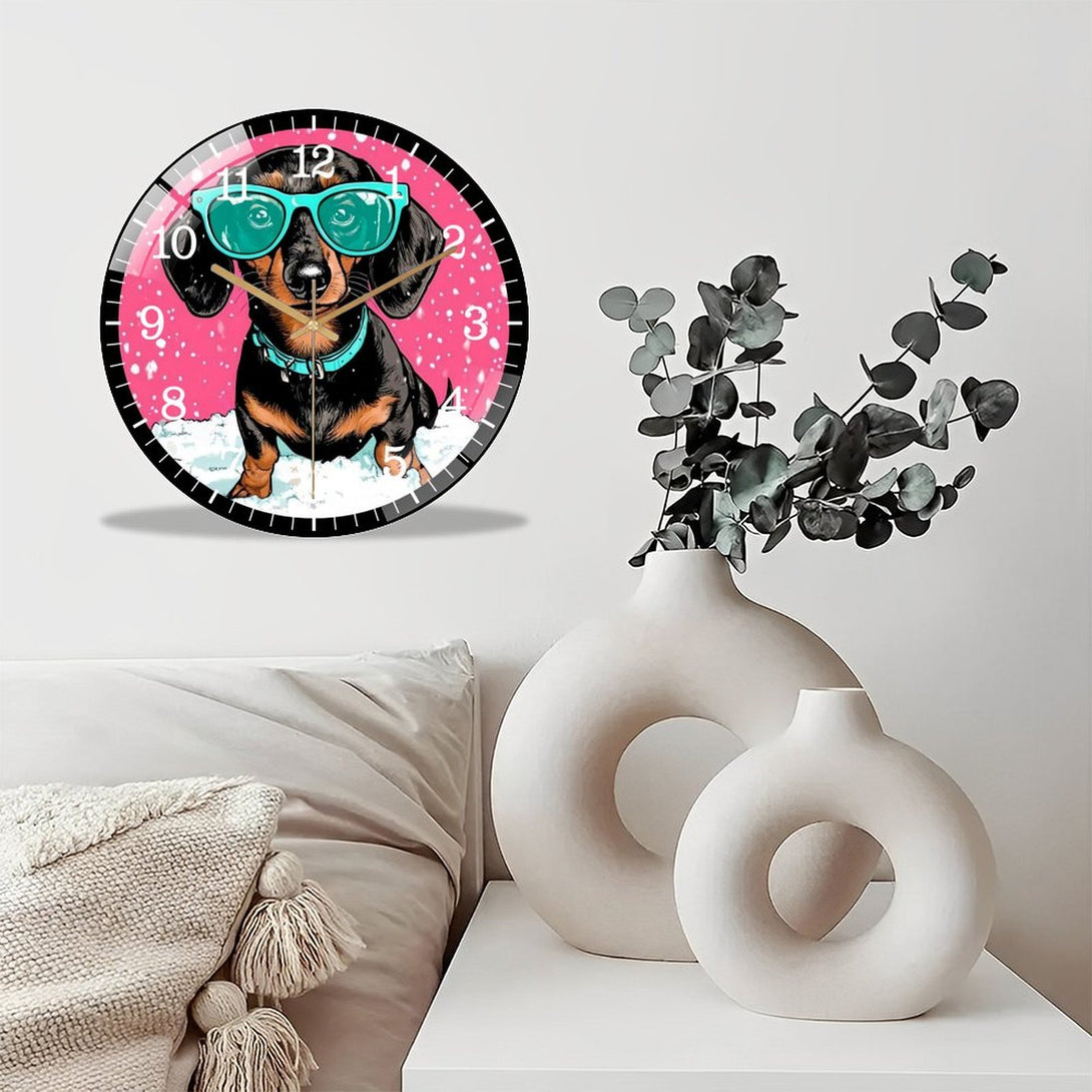 Decor Wall Clocks: Dashchund Dog Christmas Glass Wall Clock, Christmas Dog Decoration Wall Clock for Homes, Bars, Offices, Man Caves, Garages, And Living Rooms. Also Makes A Great Gift.