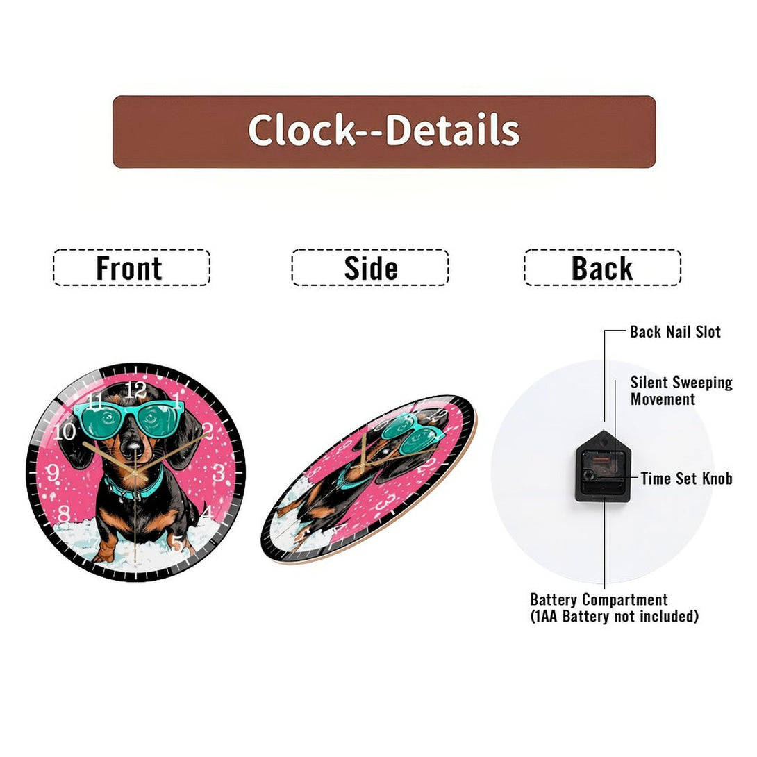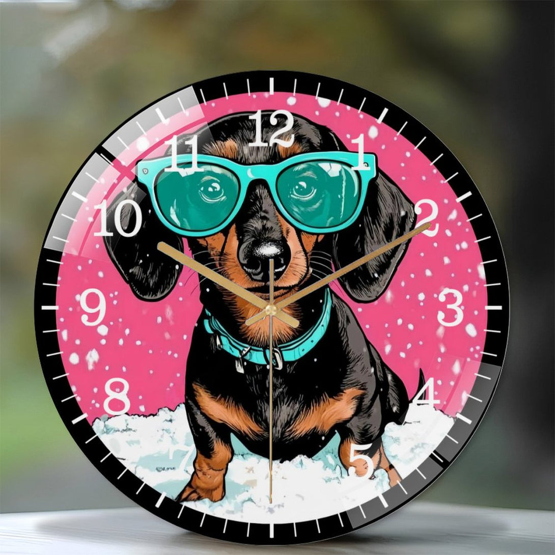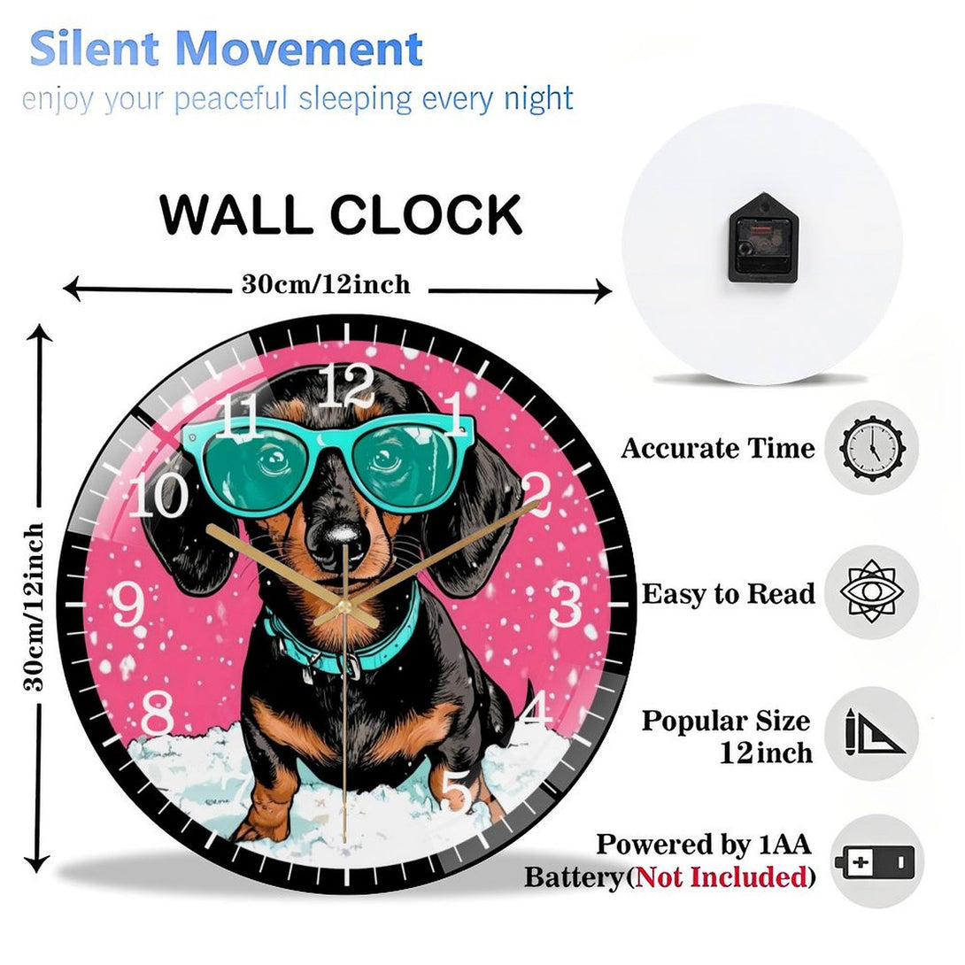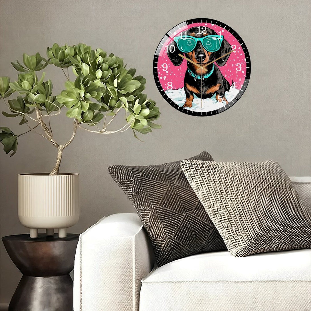 Decor Wall Clocks: Dashchund Dog Christmas Glass Wall Clock, Christmas Dog Decoration Wall Clock for Homes, Bars, Offices, Man Caves, Garages, And Living Rooms. Also Makes A Great Gift.