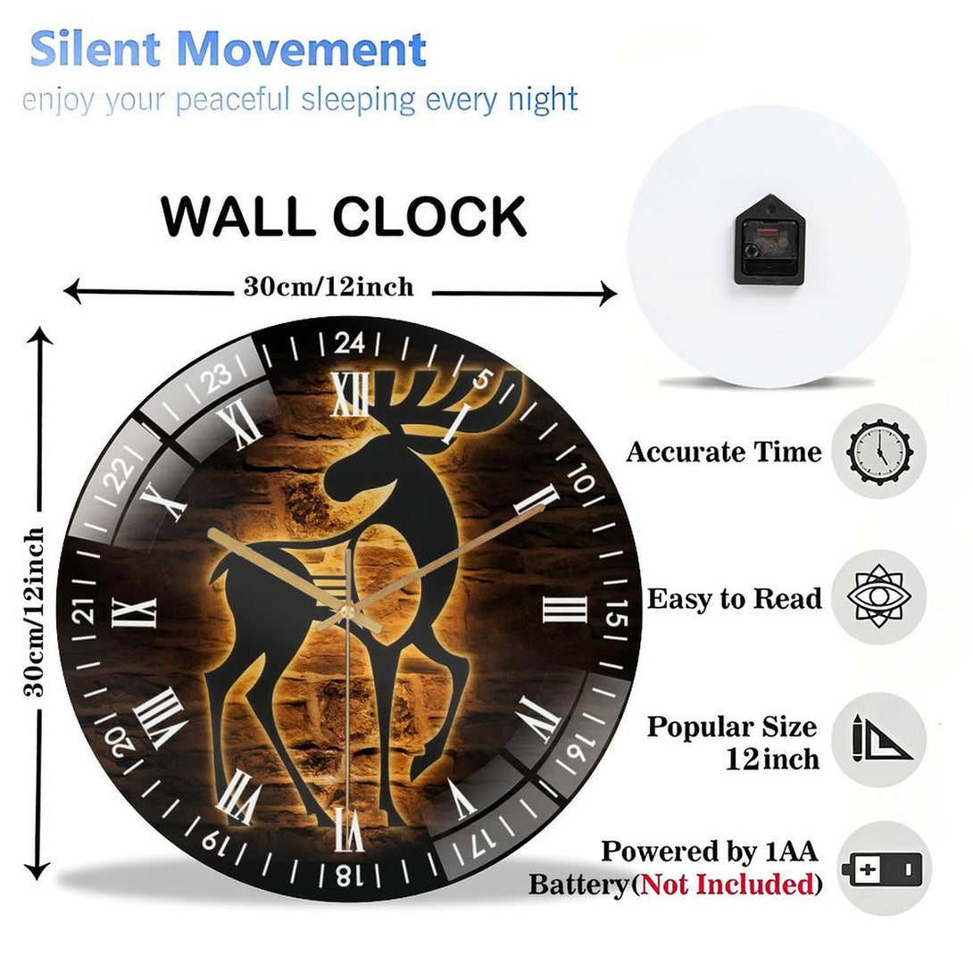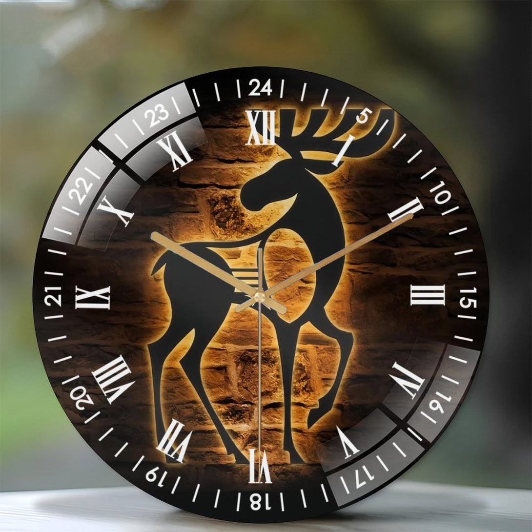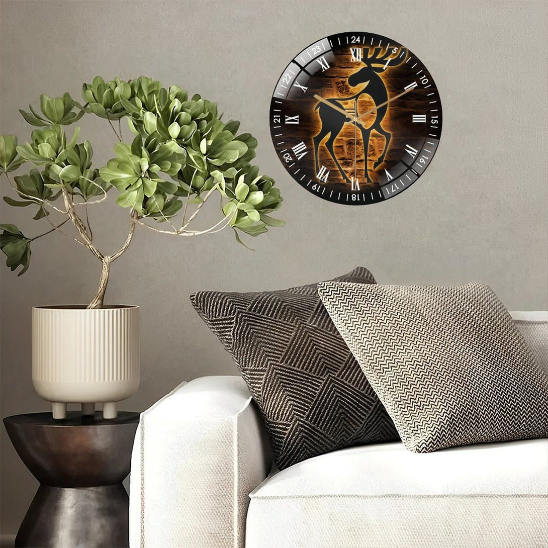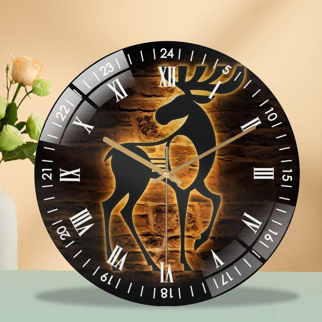 Deer Modern Abstract Glass Wall Clock, ELK Geometric Minimalist Glass Wall Clock, Home Decor Man Cave Decoration Housewarming Christmas Gift,12×12inch(30×30cm)