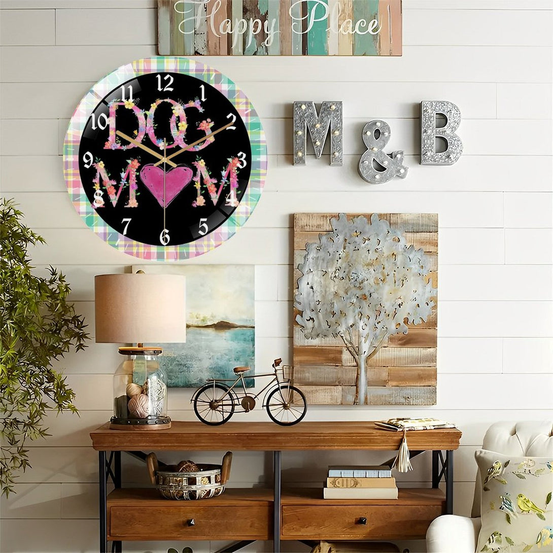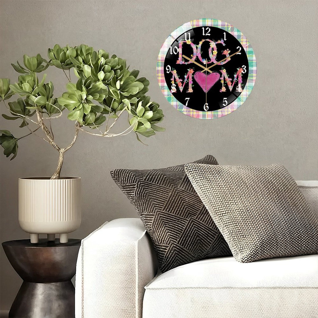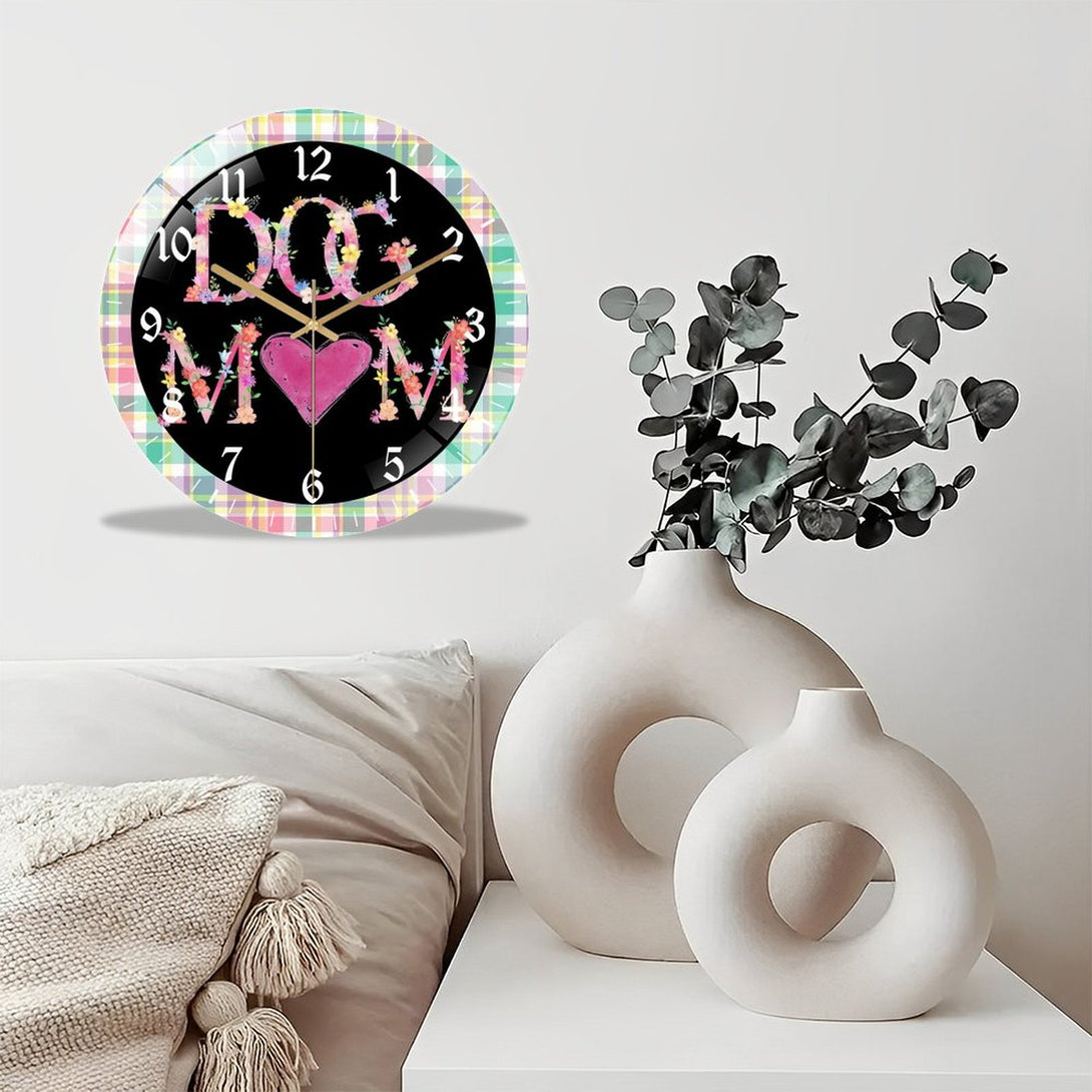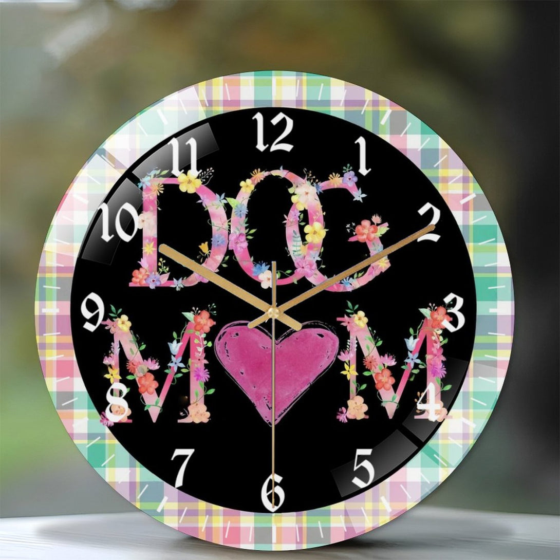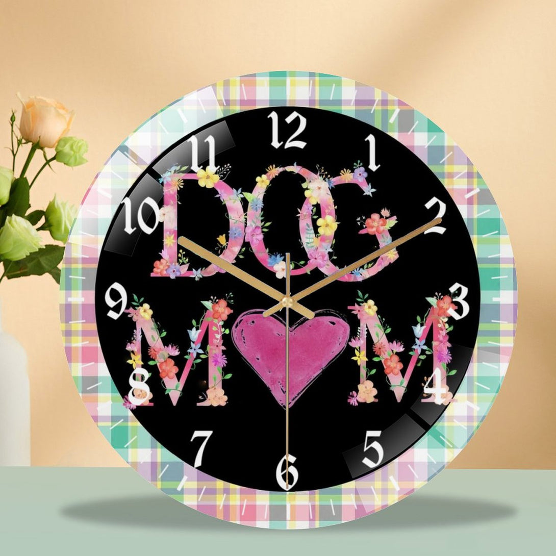 Decor Wall Clocks: Dog Mom Wreath Glass Wall Clock for Homes, Bars, Offices, Man Caves, Garages, And Living Rooms. Also Makes A Great Gift. Style 12×12inch(30×30cm)