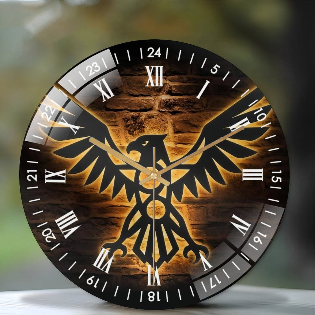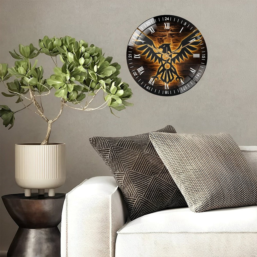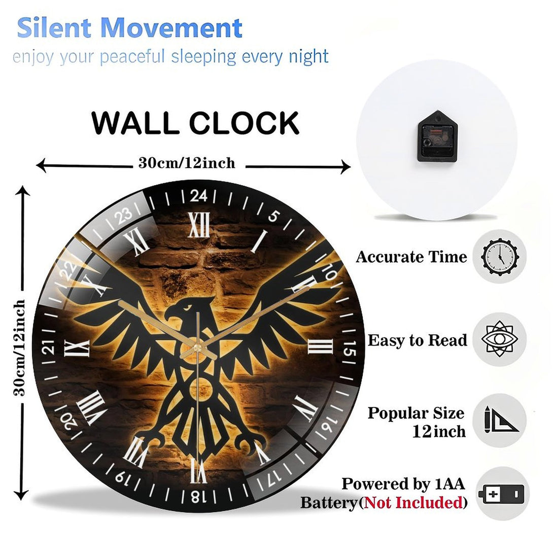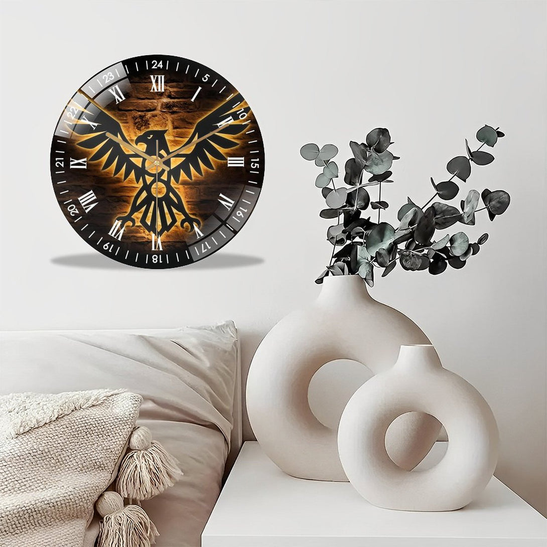 Eagle Modern Abstract Glass Wall Clock, Eagle Geometric Minimalist Glass Wall Clock, Home Decor Man Cave Decoration Housewarming Christmas Gift,12×12inch(30×30cm)