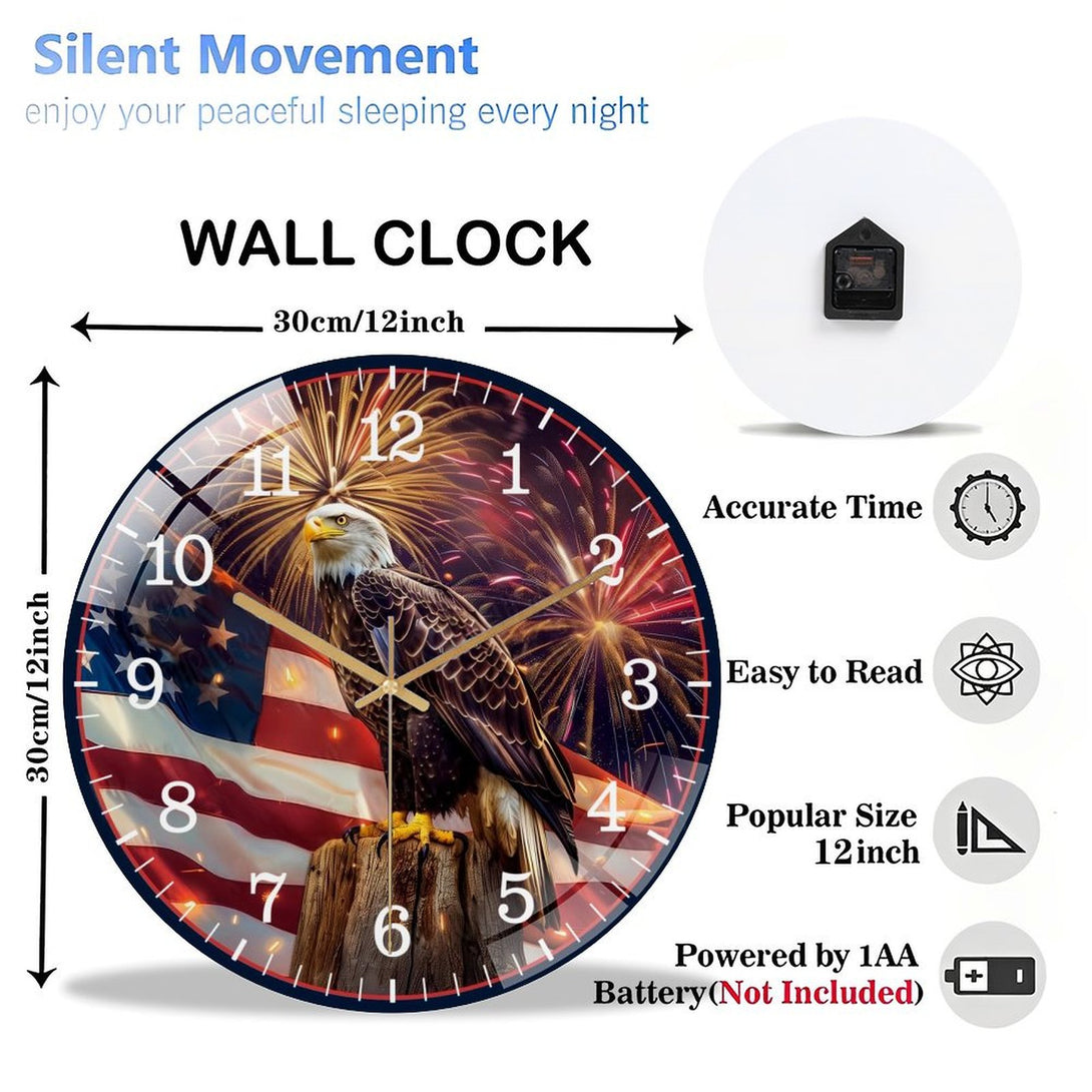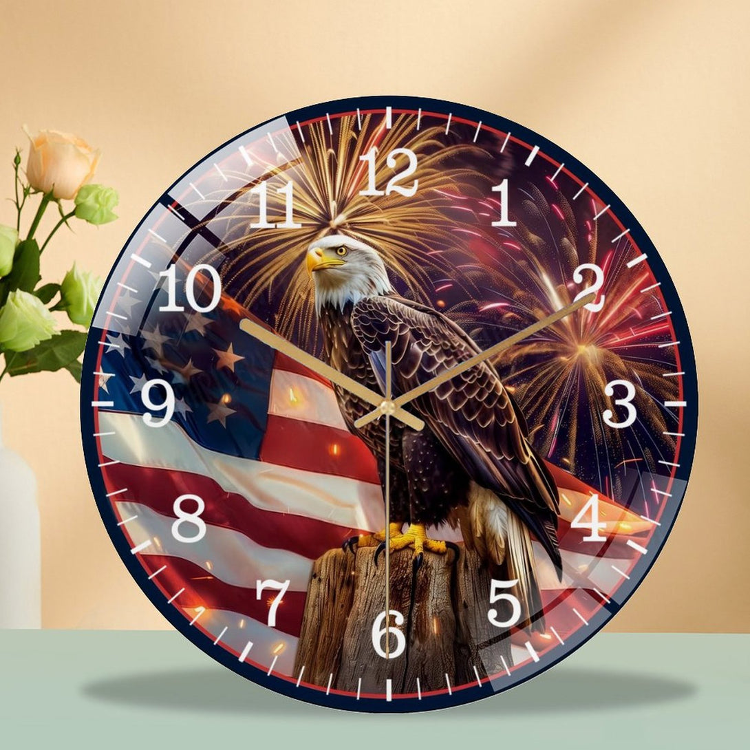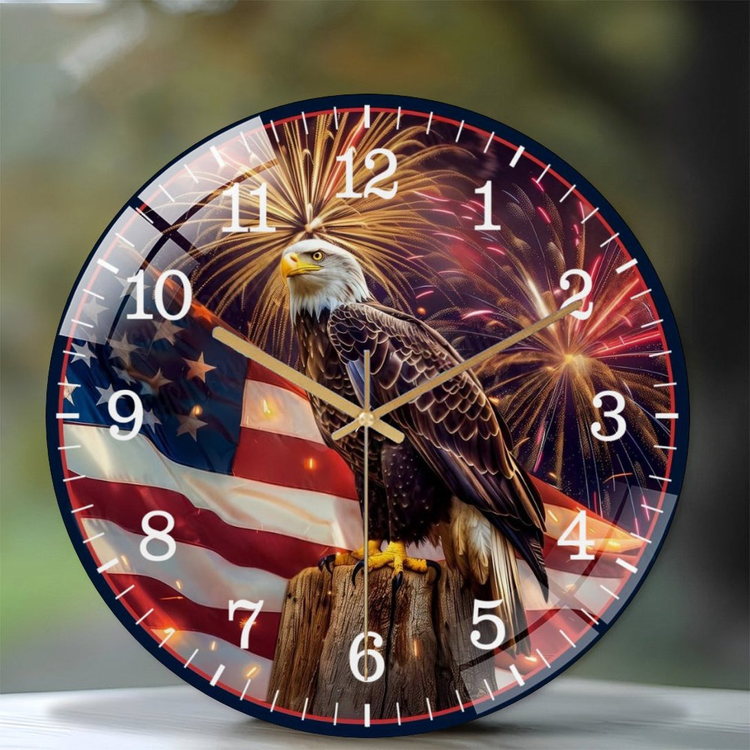 Eagle Patriotic Fireworks Glass Wall Clock, Eagle Decor Wall Clock for Homes, Bars, Offices, Man Caves, Garages, And Living Rooms .Also Makes A Great Gift.,12×12inch(30×30cm)