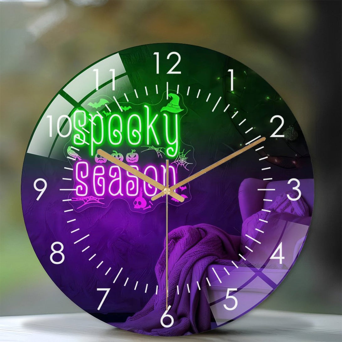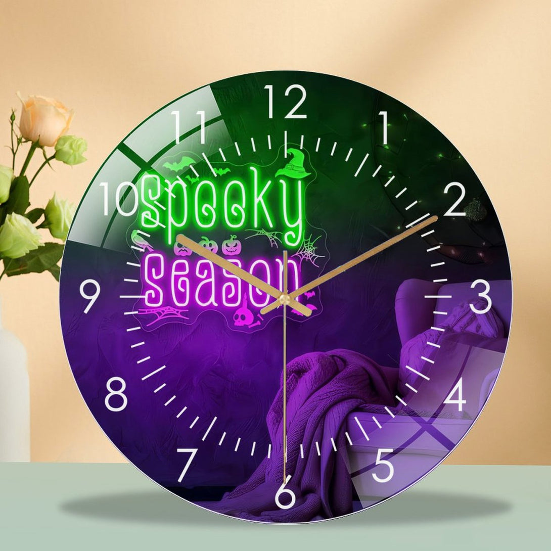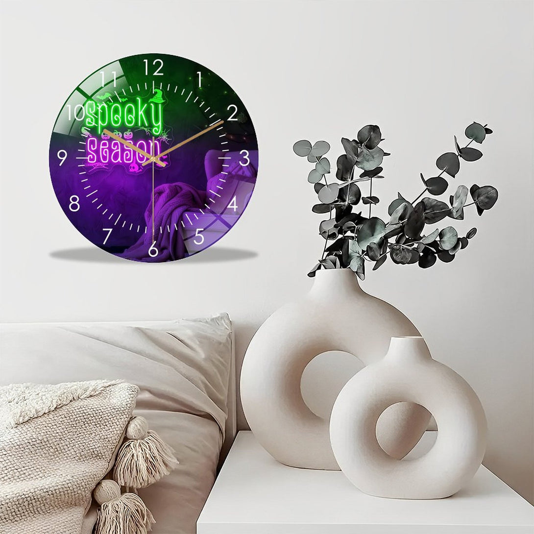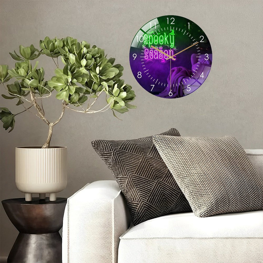 Decor Wall Clocks: Fall Decor Haunted House Party Glass Wall Clock, Spooky Season Decor Wall Clock, for Homes, Bars, Offices, Man Caves, Garages, And Living Rooms. Hallo-ween Gift .Also Makes A Grea