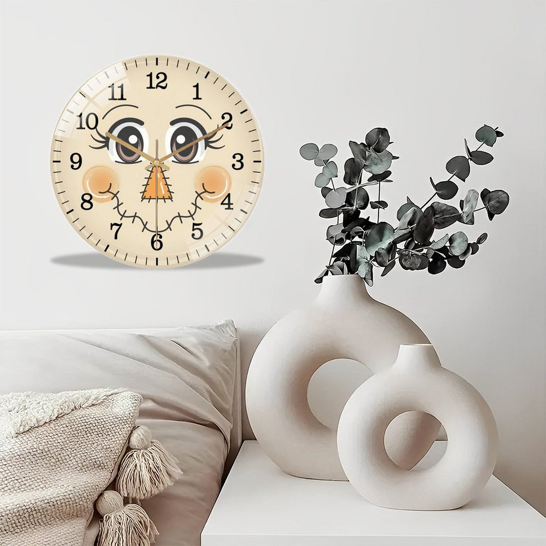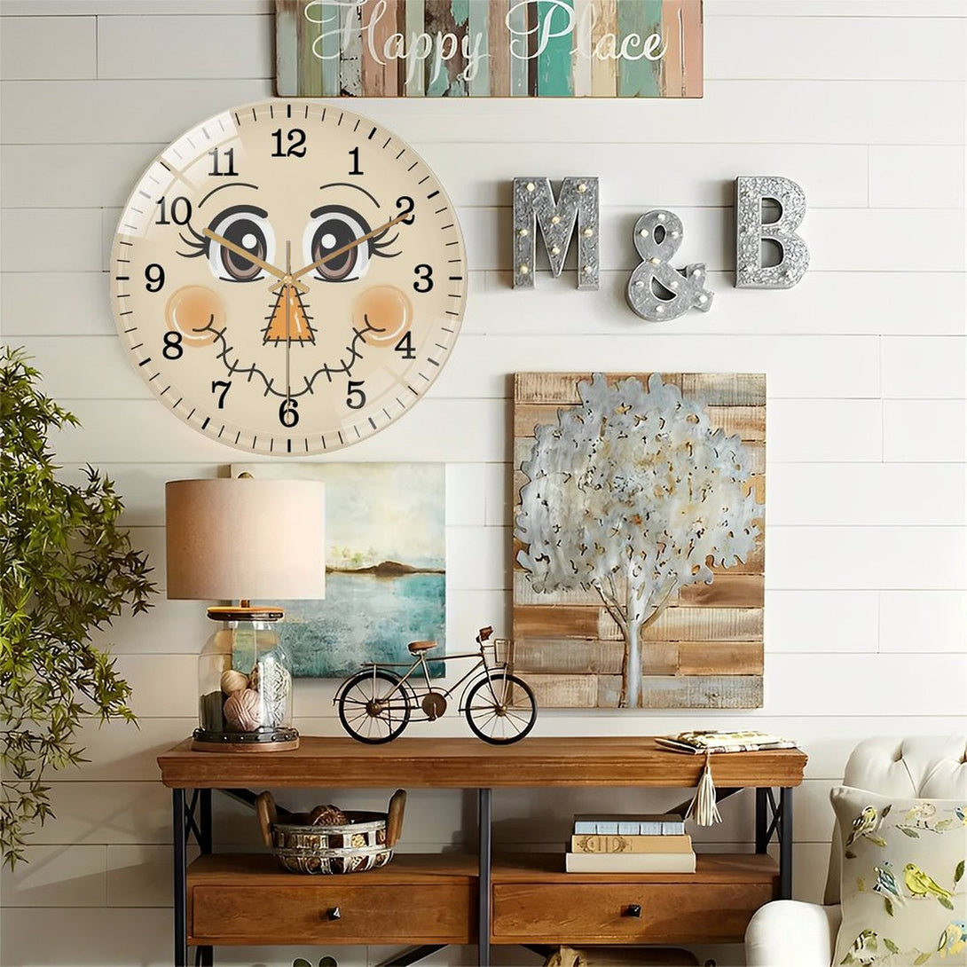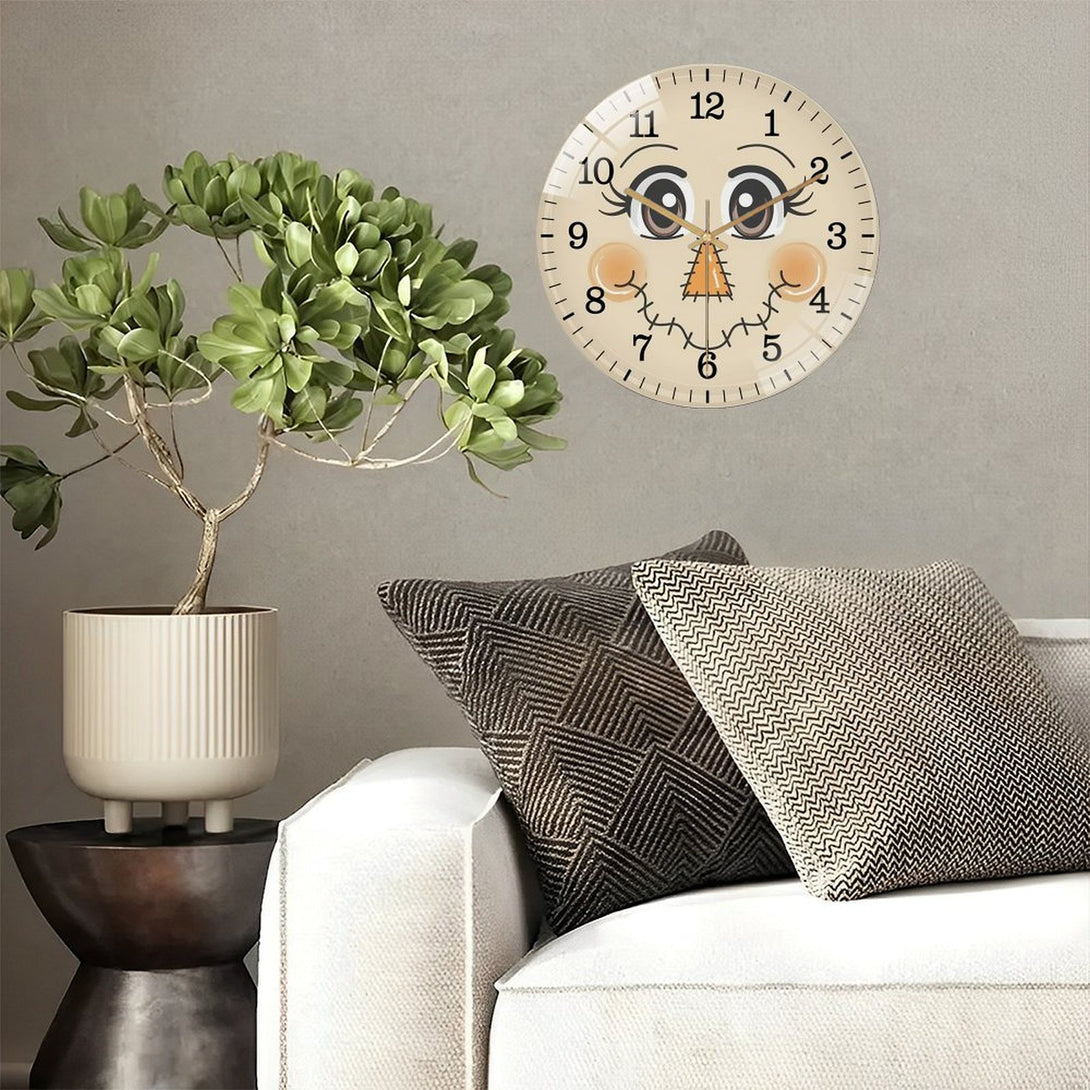Decor Wall Clocks: Fall Decorations Scarecrow Glass Wall Clock for Homes, Bars, Offices, Man Caves, Garages, And Living Rooms. Also Makes A Great Gift. Style 12×12inch(30×30cm)