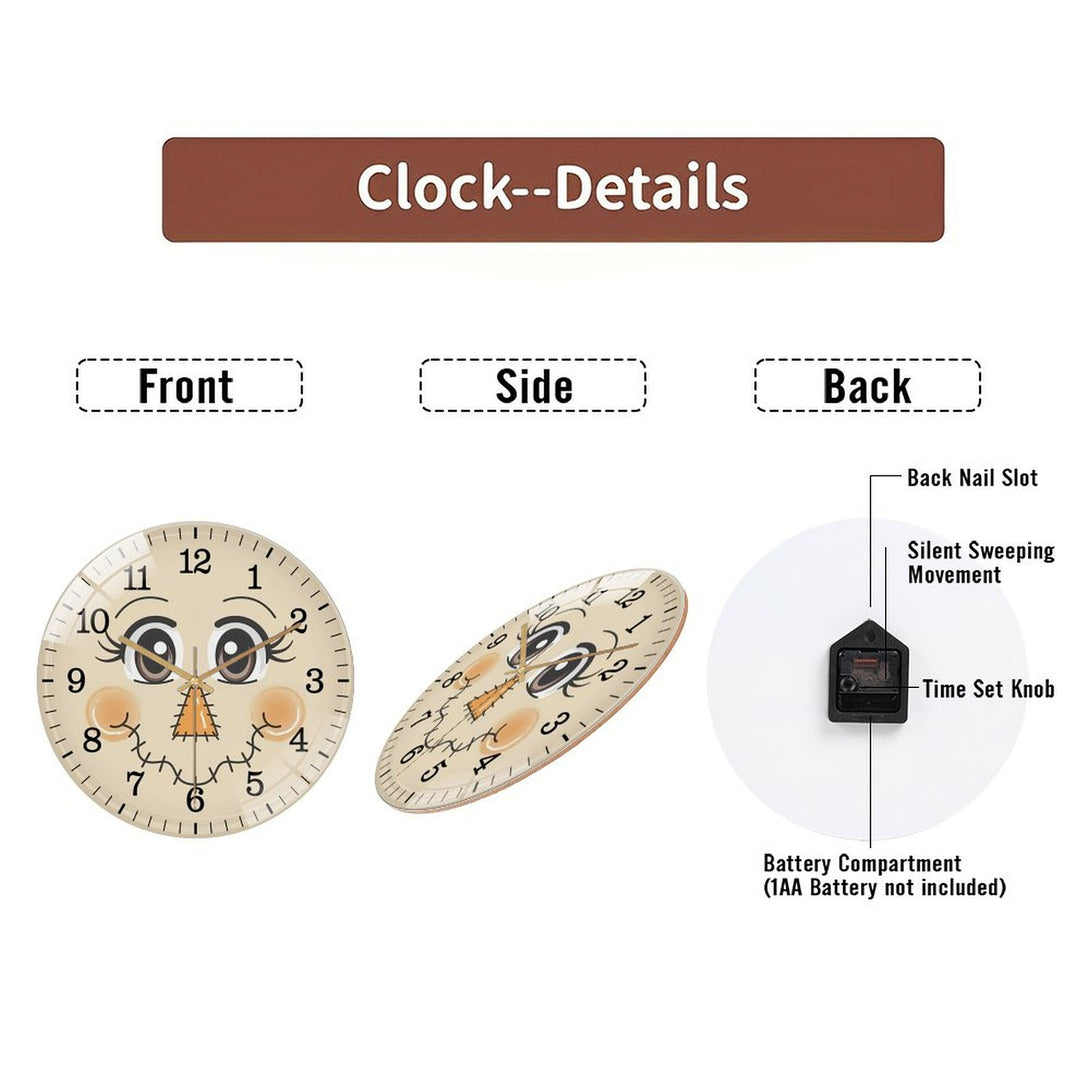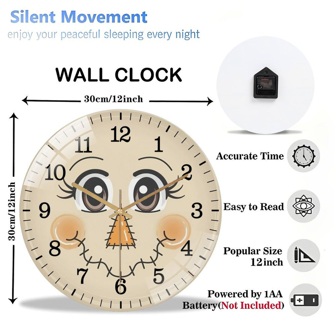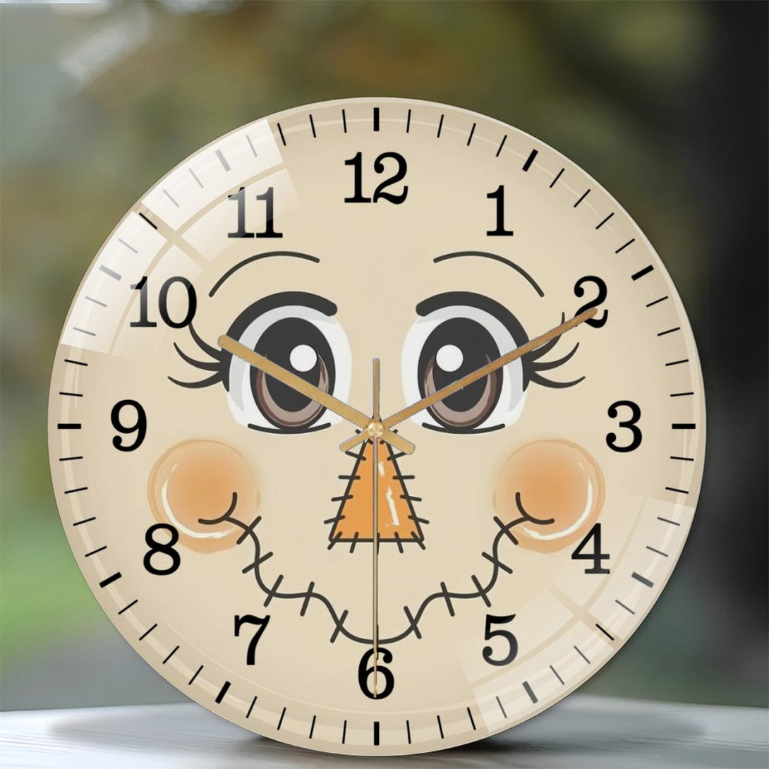 Decor Wall Clocks: Fall Decorations Scarecrow Glass Wall Clock for Homes, Bars, Offices, Man Caves, Garages, And Living Rooms. Also Makes A Great Gift. Style 12×12inch(30×30cm)
