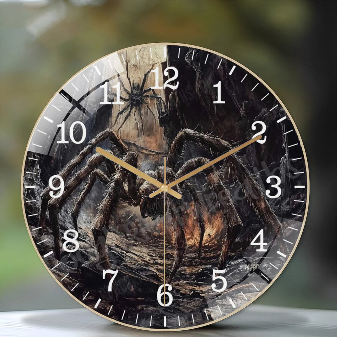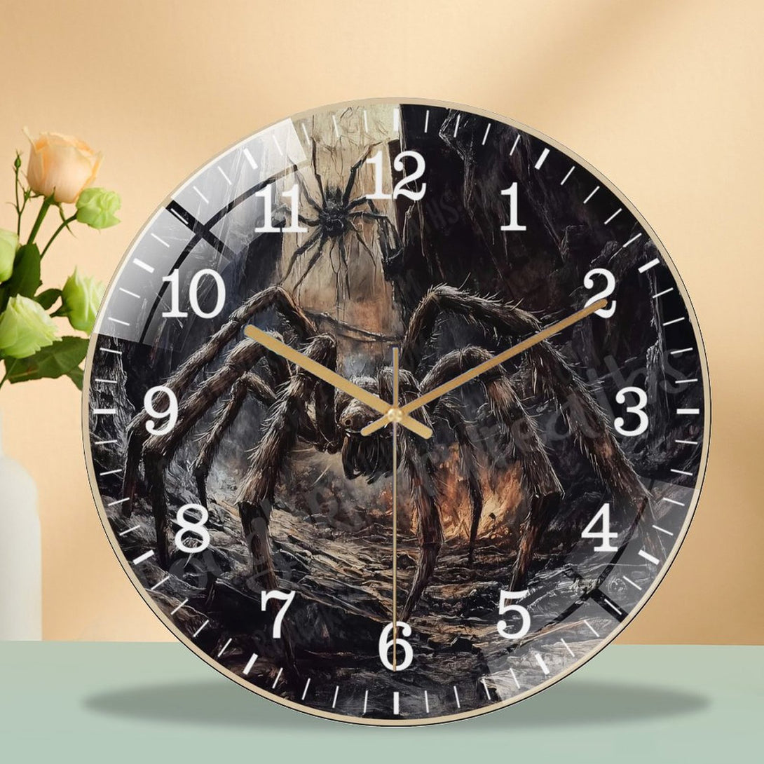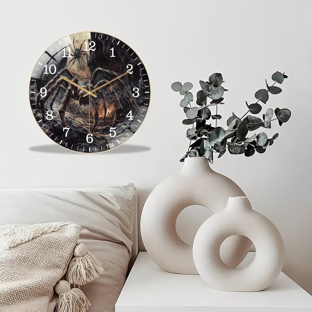Fall Spooky Spider Glass Wall Clock, Spooky Hallo-ween Decor Wall Clock for Homes, Bars, Offices, Man Caves, Garages, And Living Rooms. Hallo-ween Gift,12×12inch(30×30cm)