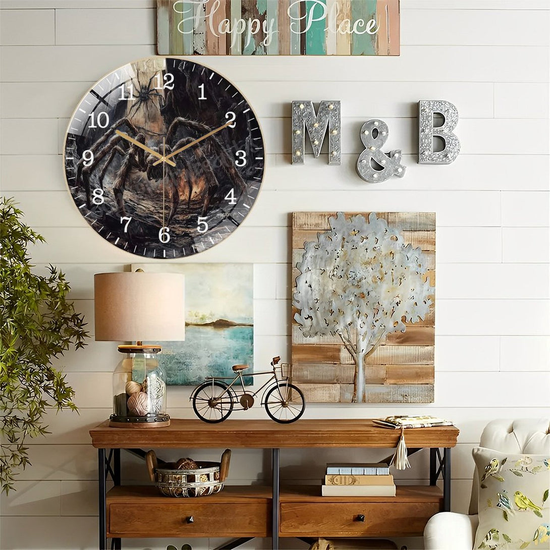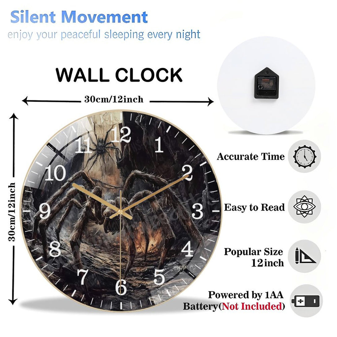 Decor Wall Clocks: Fall Spooky Spider Glass Wall Clock, Spooky Hallo-ween Decor Wall Clock for Homes, Bars, Offices, Man Caves, Garages, And Living Rooms. Hallo-ween Gift Style 12×12inch(30×30cm)