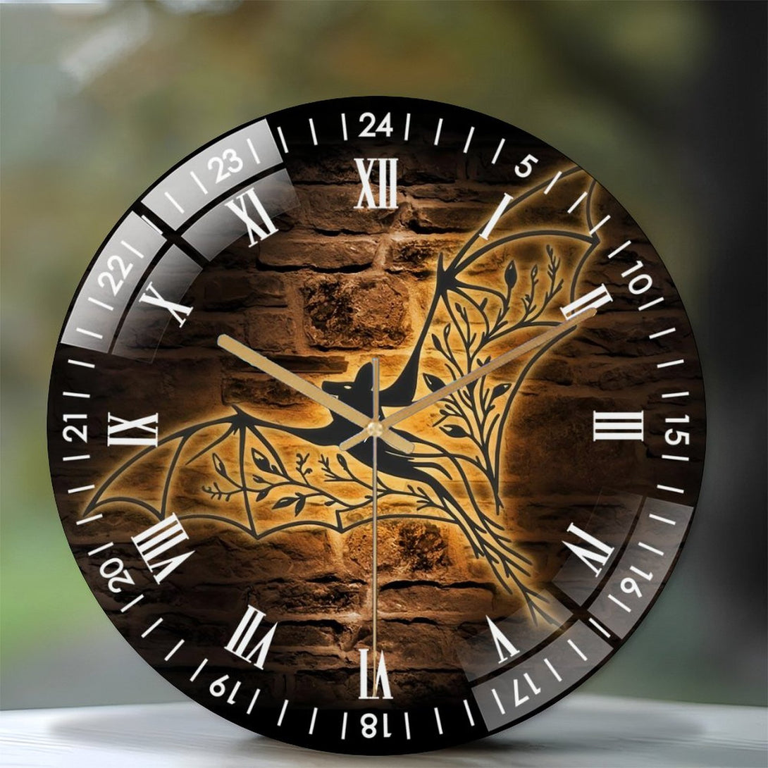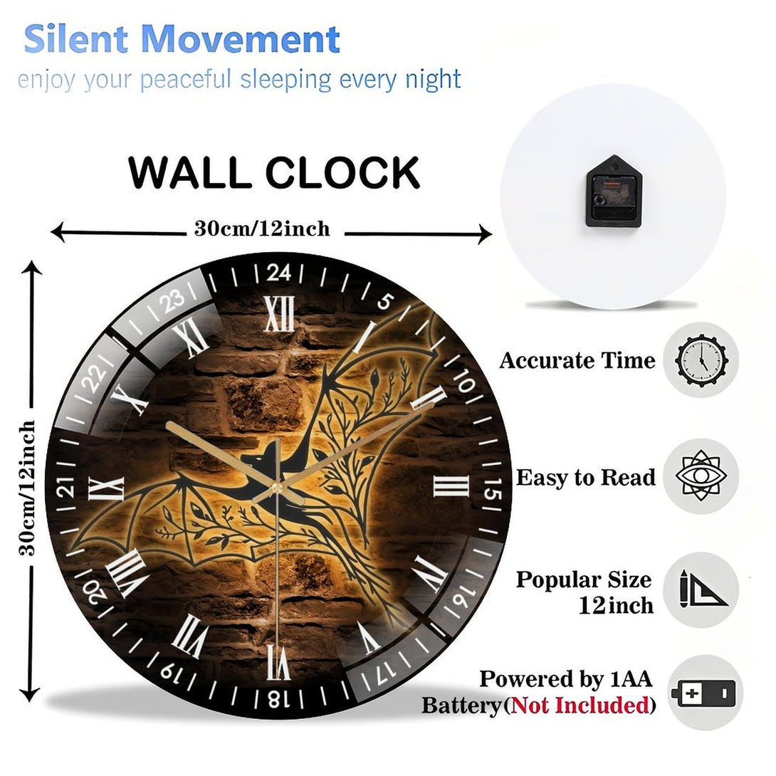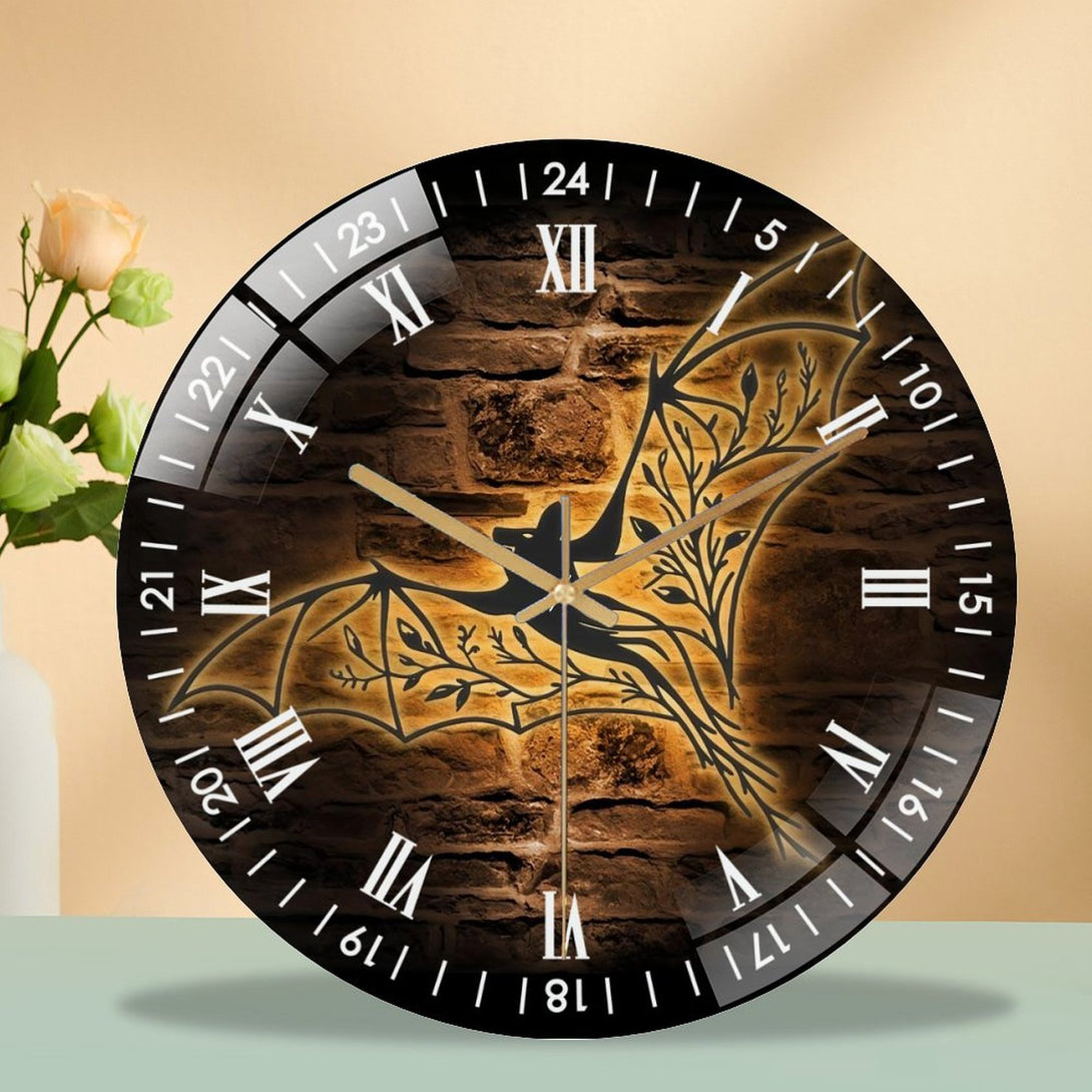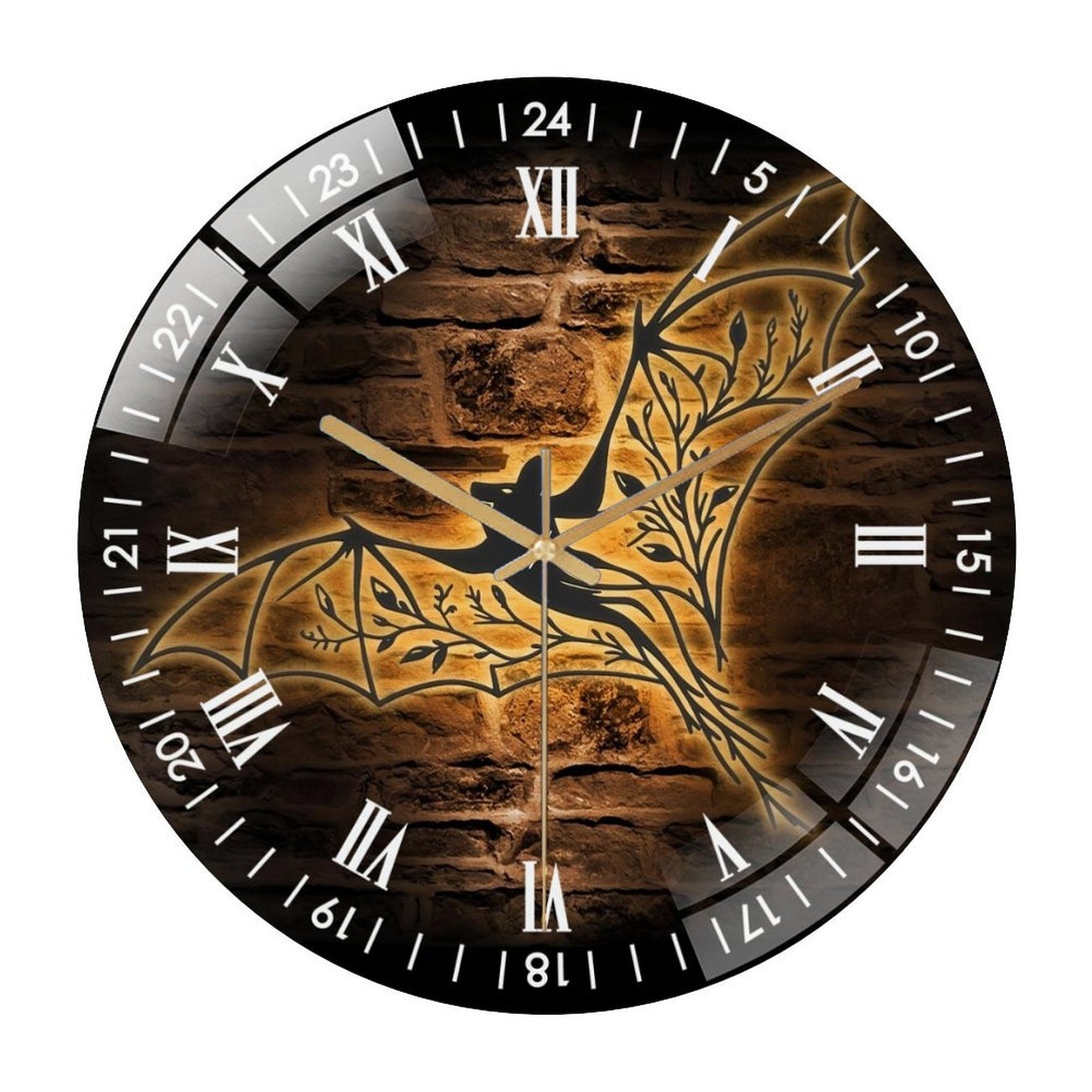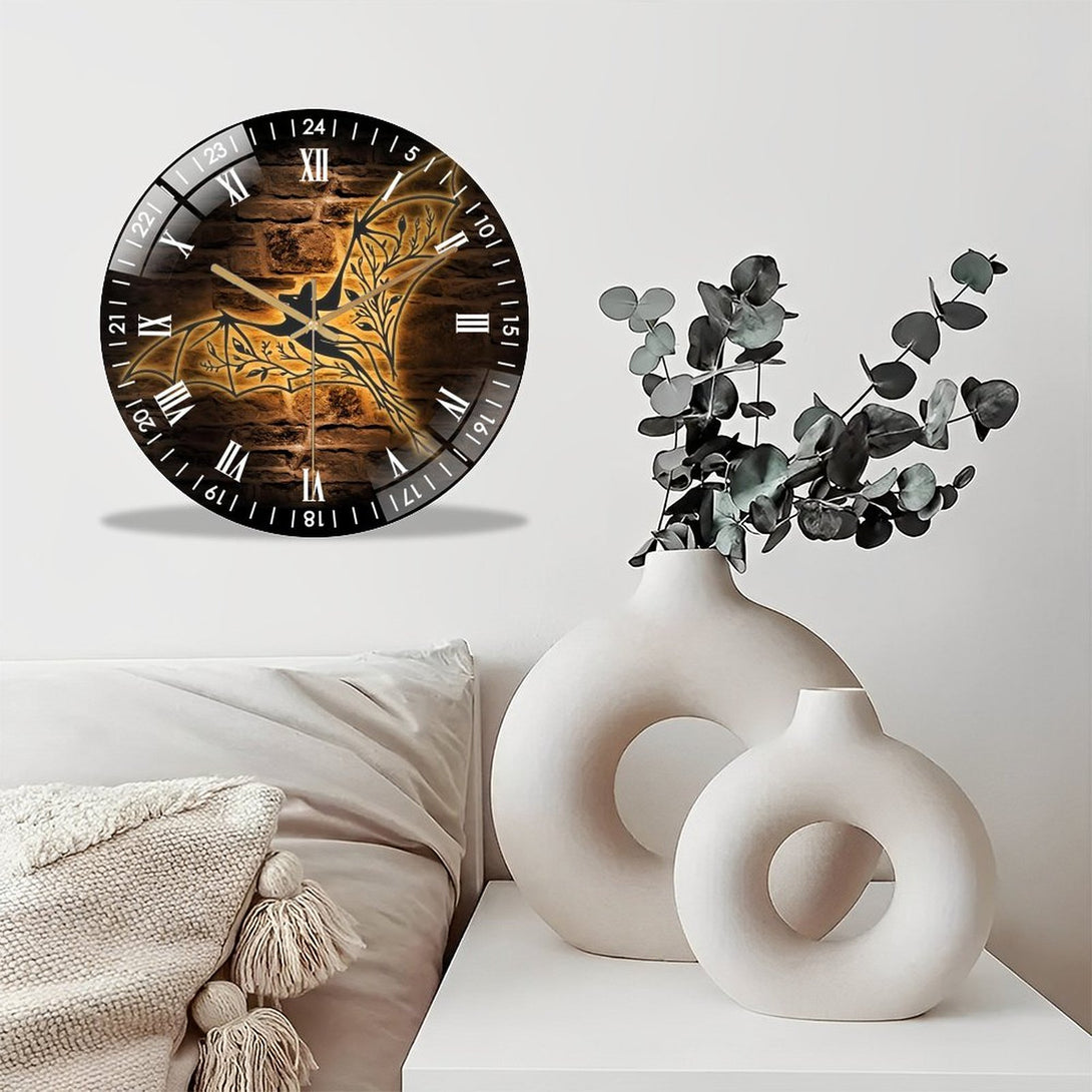 Floral Bat Glass Wall Clock,Bat Hallo-ween Wall Clock, Home Decor Black Horror Bird Dracula Decoration Man Cave Hanging Gift.,12×12inch(30×30cm)