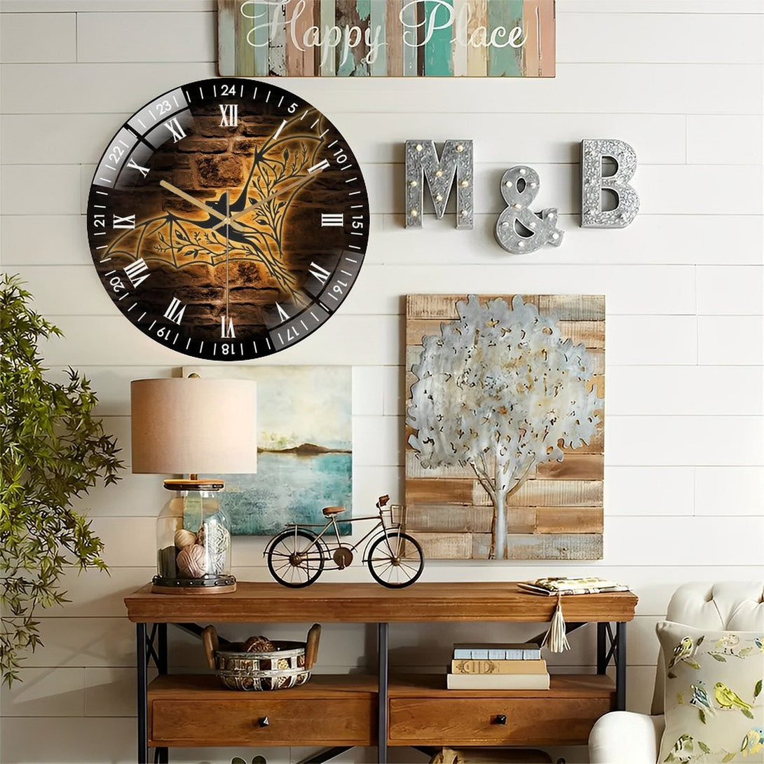 Decor Wall Clocks: Floral Bat Glass Wall Clock,Bat Hallo-ween Wall Clock, Home Decor Black Horror Bird Dracula Decoration Man Cave Hanging Gift. Style 12×12inch(30×30cm)