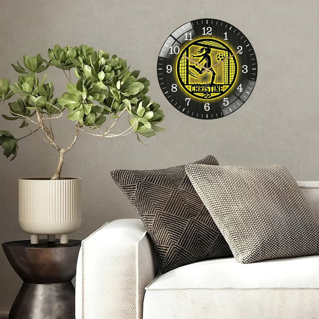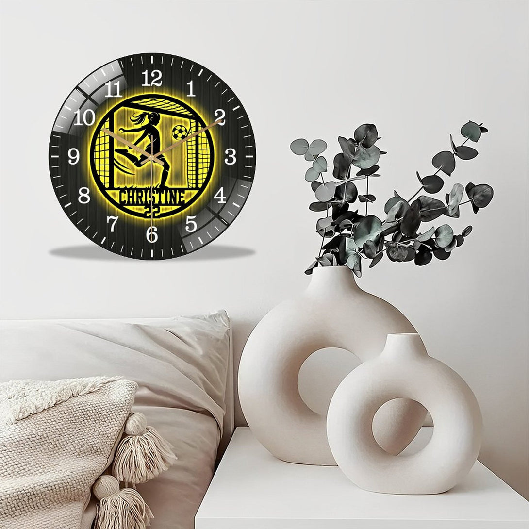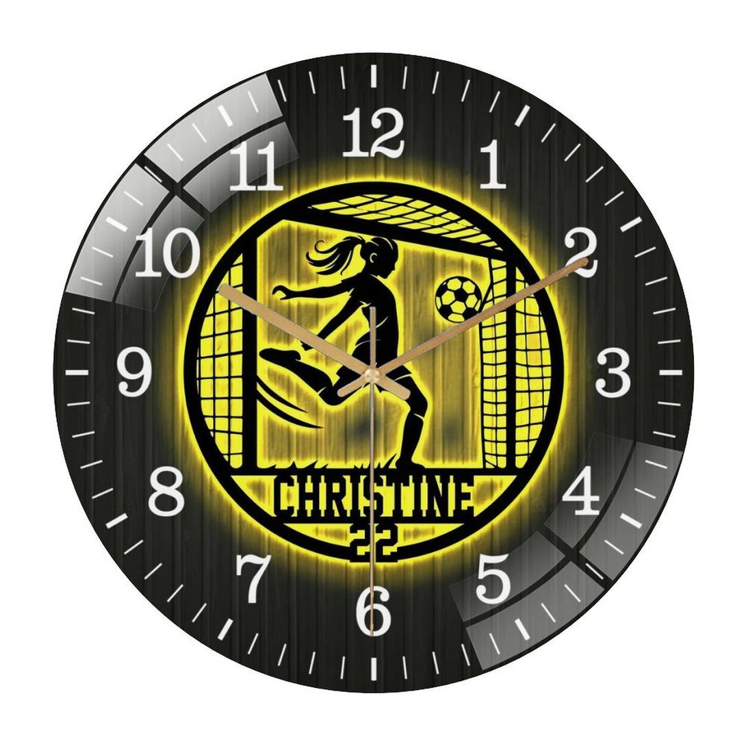 Decor Wall Clocks: Football Player Lover Glass Wall Clock, Home Decor, Girl Nursery Decoration, Birthday Xmas Wall Clock for Homes, Bars, Offices, Man Caves, Garages, And Living Rooms.