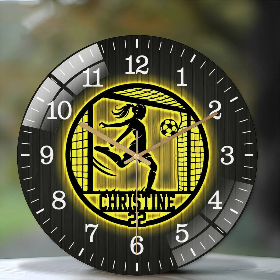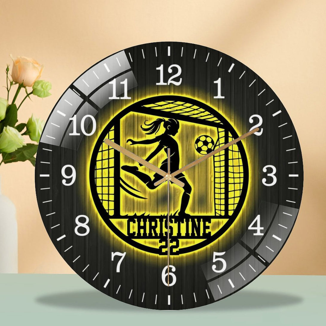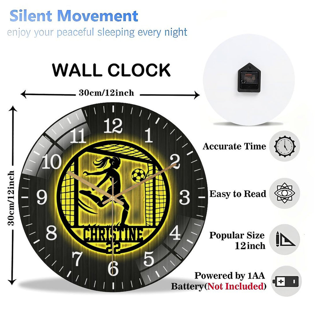 Decor Wall Clocks: Football Player Lover Glass Wall Clock, Home Decor, Girl Nursery Decoration, Birthday Xmas Wall Clock for Homes, Bars, Offices, Man Caves, Garages, And Living Rooms.