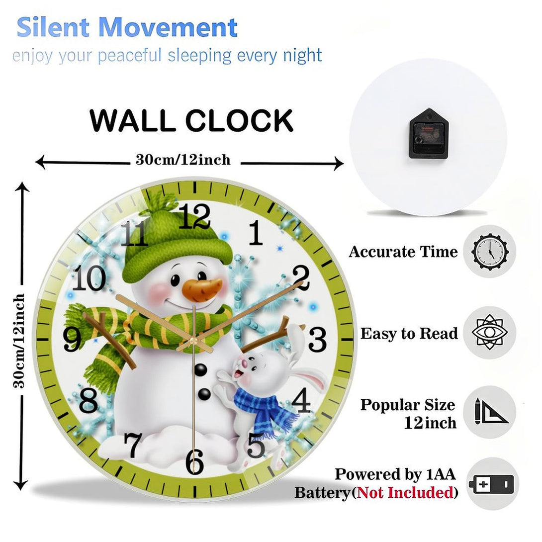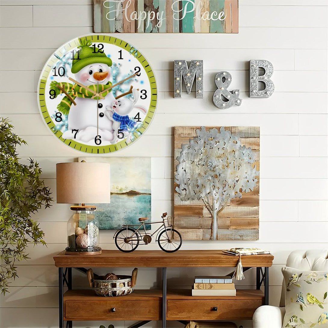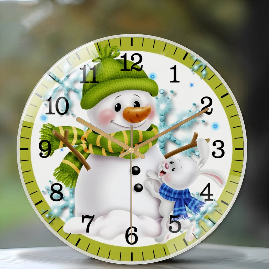 Friends Snowman Glass Wall Clock ,Home DecorWall Clock for Homes, Bars, Offices, Man Caves, Garages, And Living Rooms. Also Makes A Great Gift.,12×12inch(30×30cm)