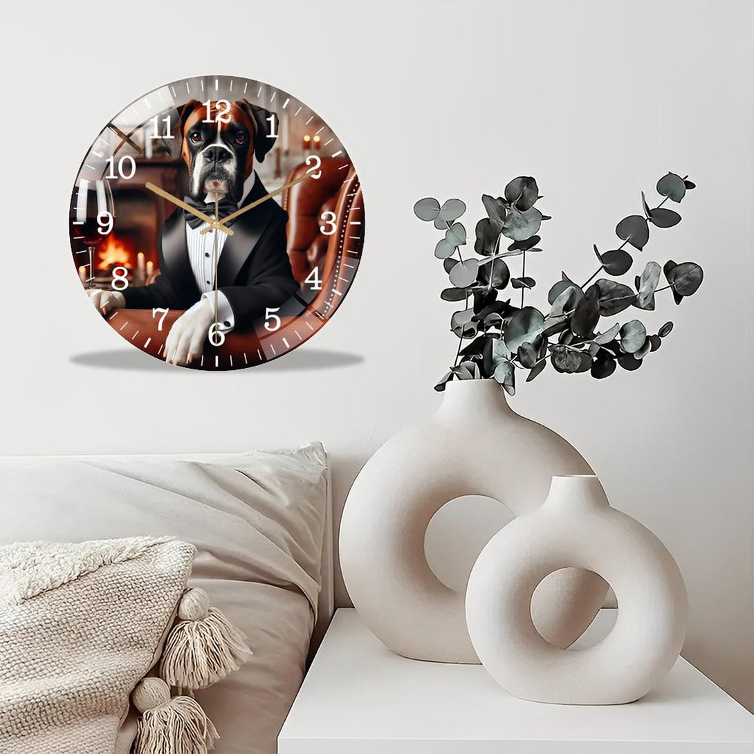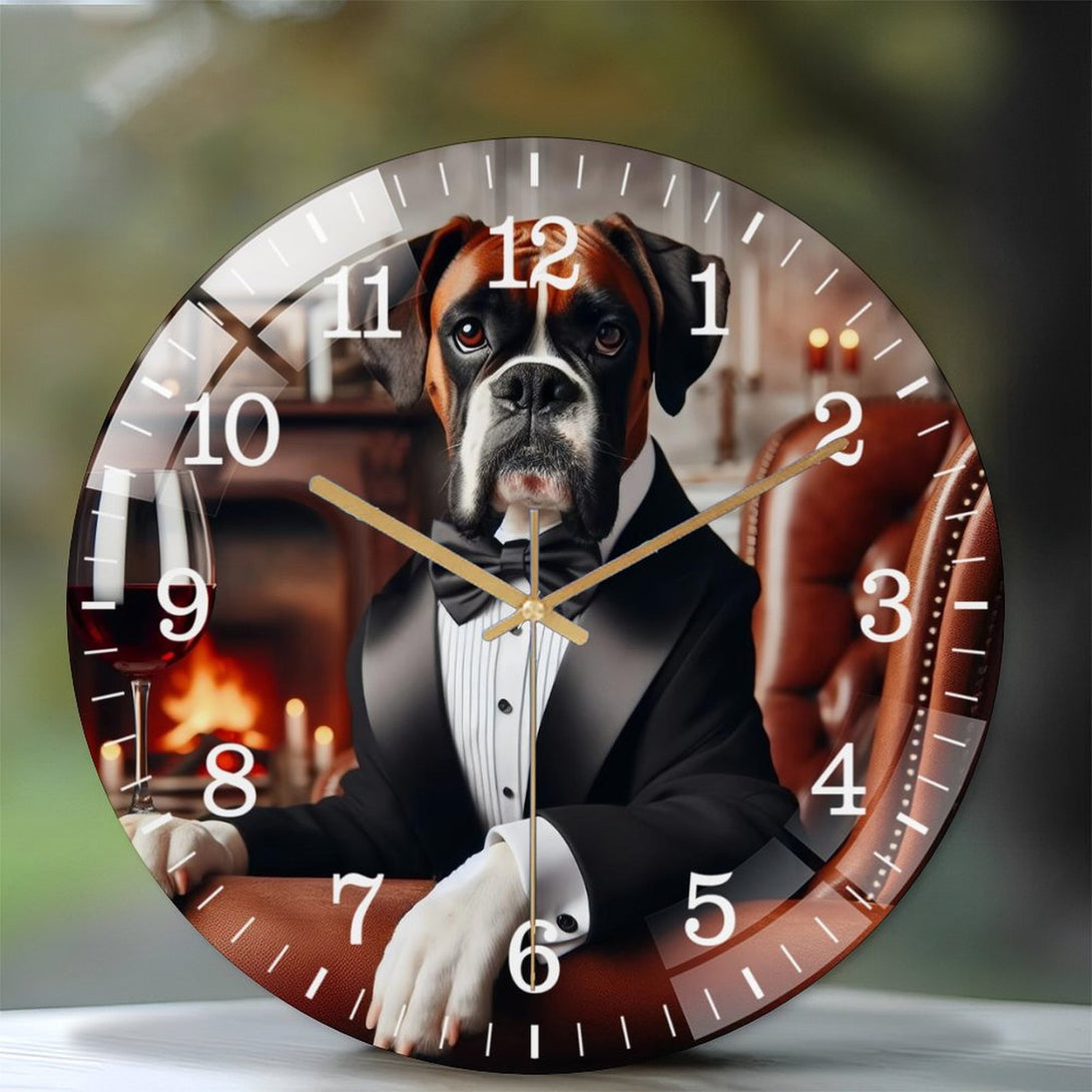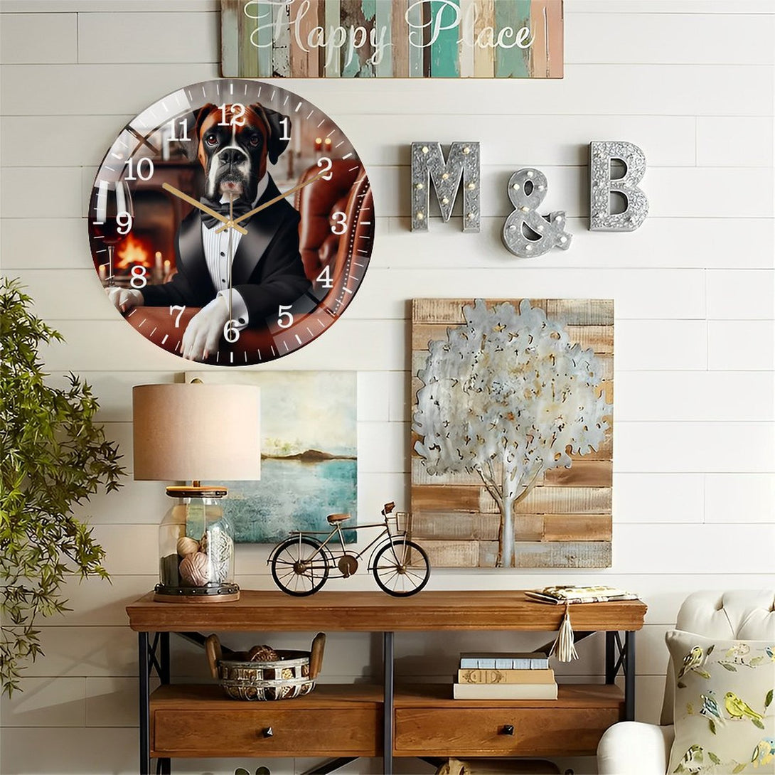 Decor Wall Clocks: Funny Boxer in A Tuxedo Glass Wall Clock ,Silly Sh Arp Dressed Dog Collection Wall Clock ,Dog Lover Wall Clock for Homes, Bars, Offices, Man Caves, Garages, And Living Rooms.