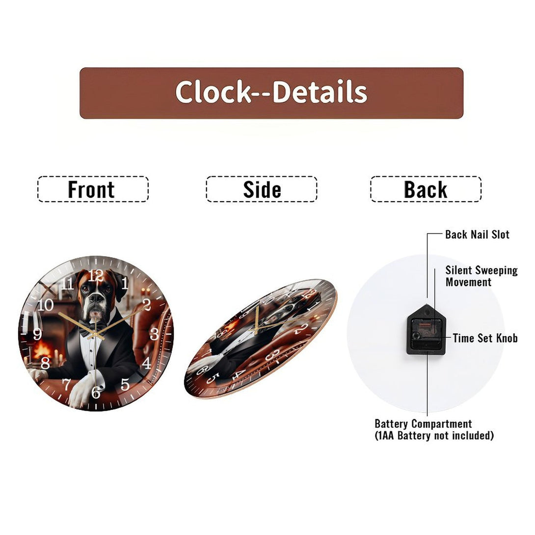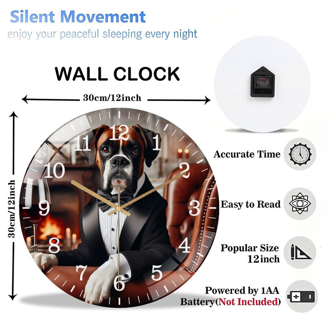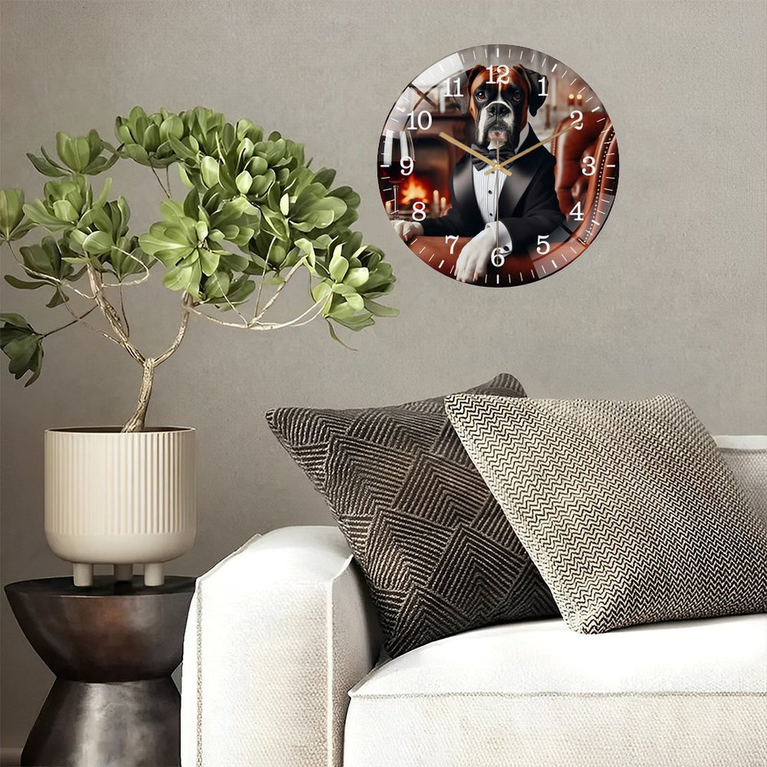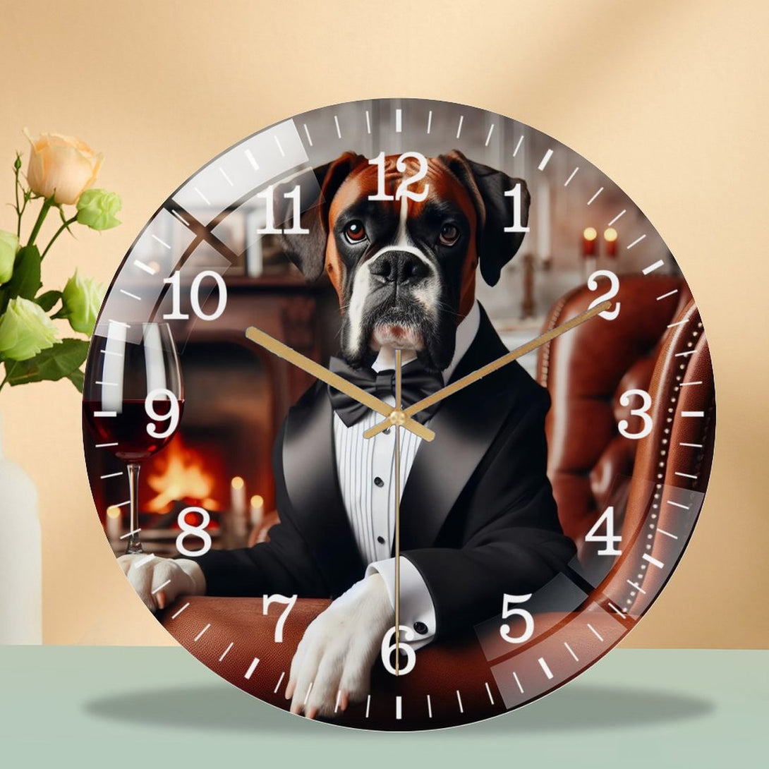Decor Wall Clocks: Funny Boxer in A Tuxedo Glass Wall Clock ,Silly Sh Arp Dressed Dog Collection Wall Clock ,Dog Lover Wall Clock for Homes, Bars, Offices, Man Caves, Garages, And Living Rooms.
