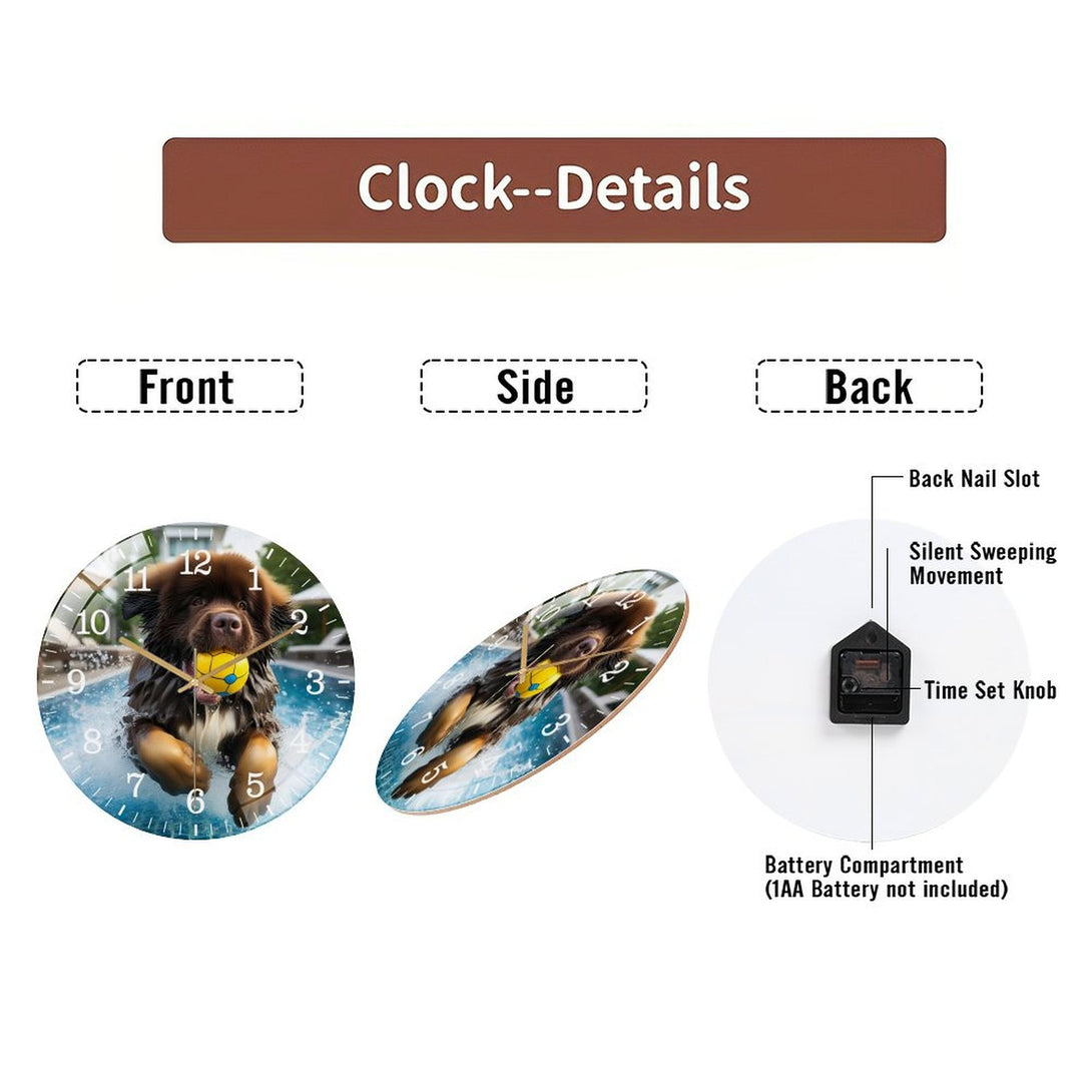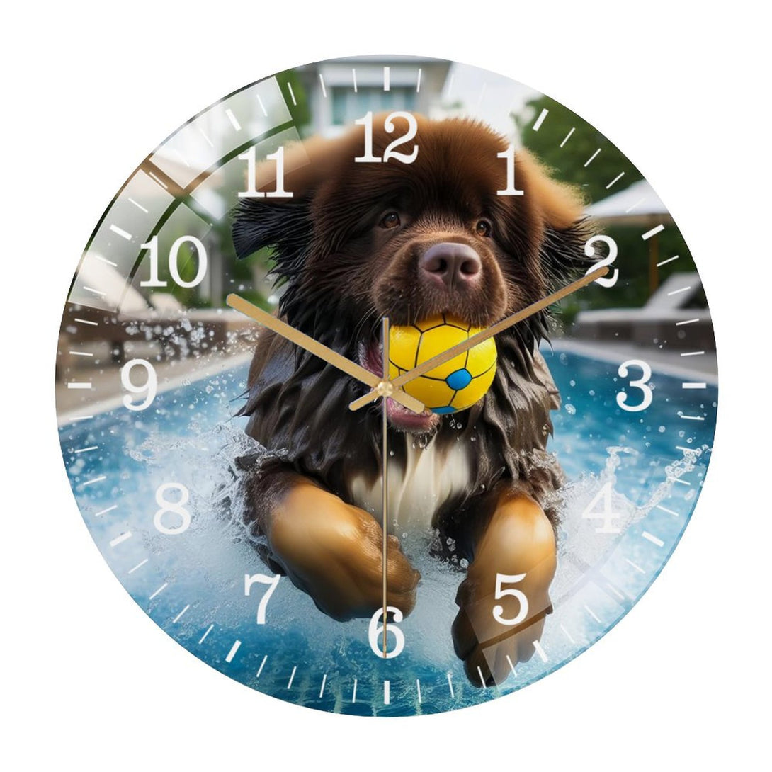 Decor Wall Clocks: Funny Newfoundland Swimming Dog Glass Wall Clock ,Dog Lover Wall Clock for Homes, Bars, Offices, Man Caves, Garages, And Living Rooms. Style 12×12inch(30×30cm)