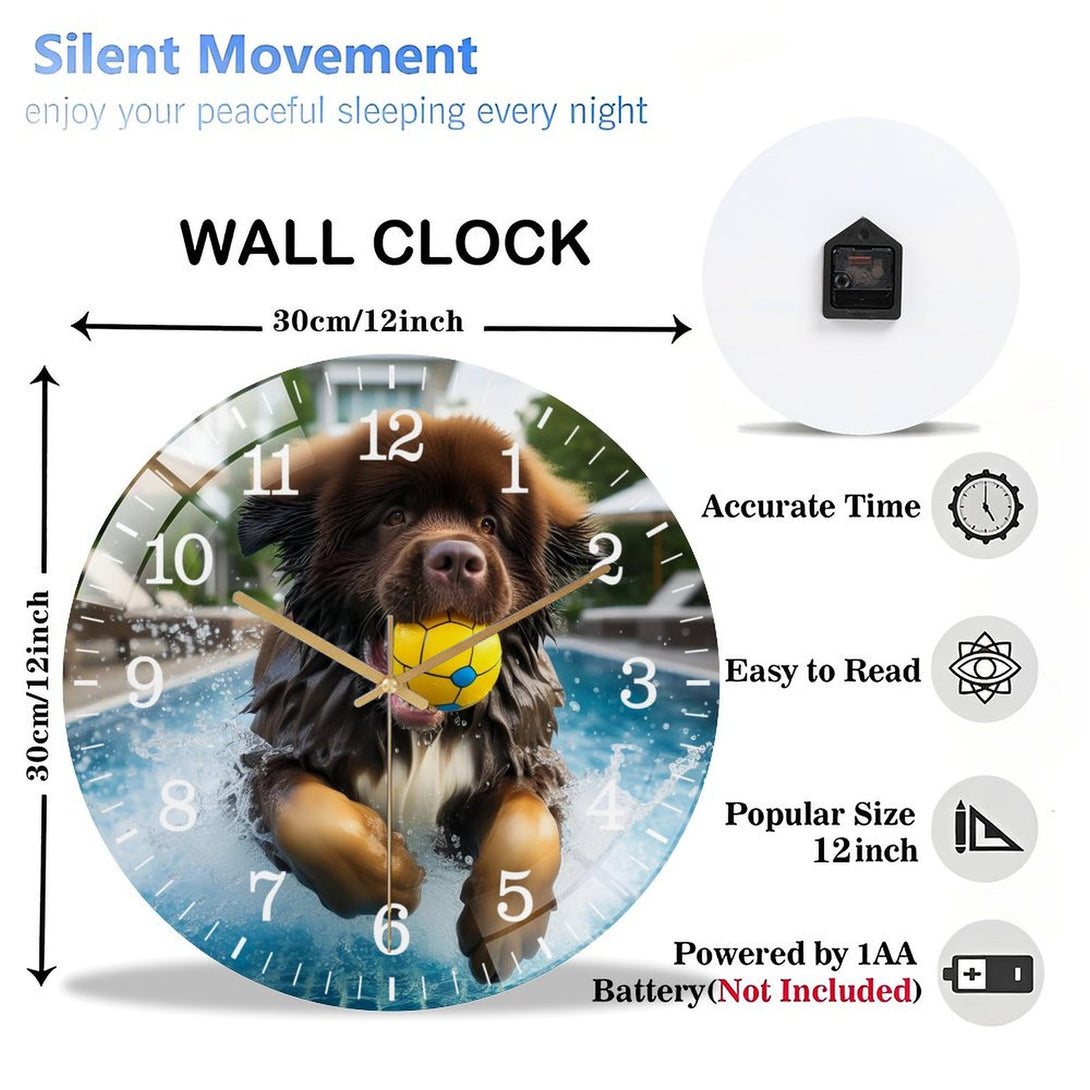 Funny Newfoundland Swimming Dog Glass Wall Clock ,Dog Lover Wall Clock for Homes, Bars, Offices, Man Caves, Garages, And Living Rooms.,12×12inch(30×30cm)