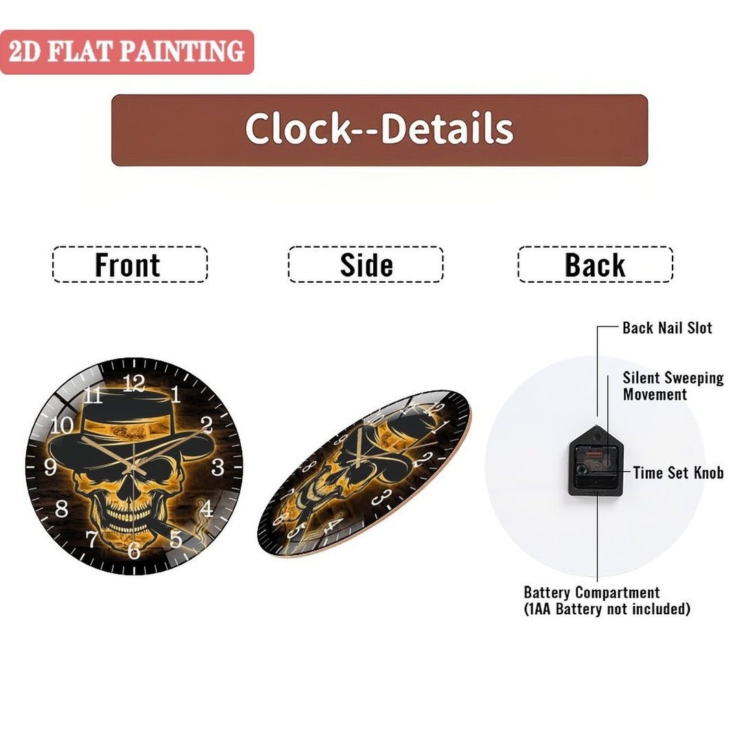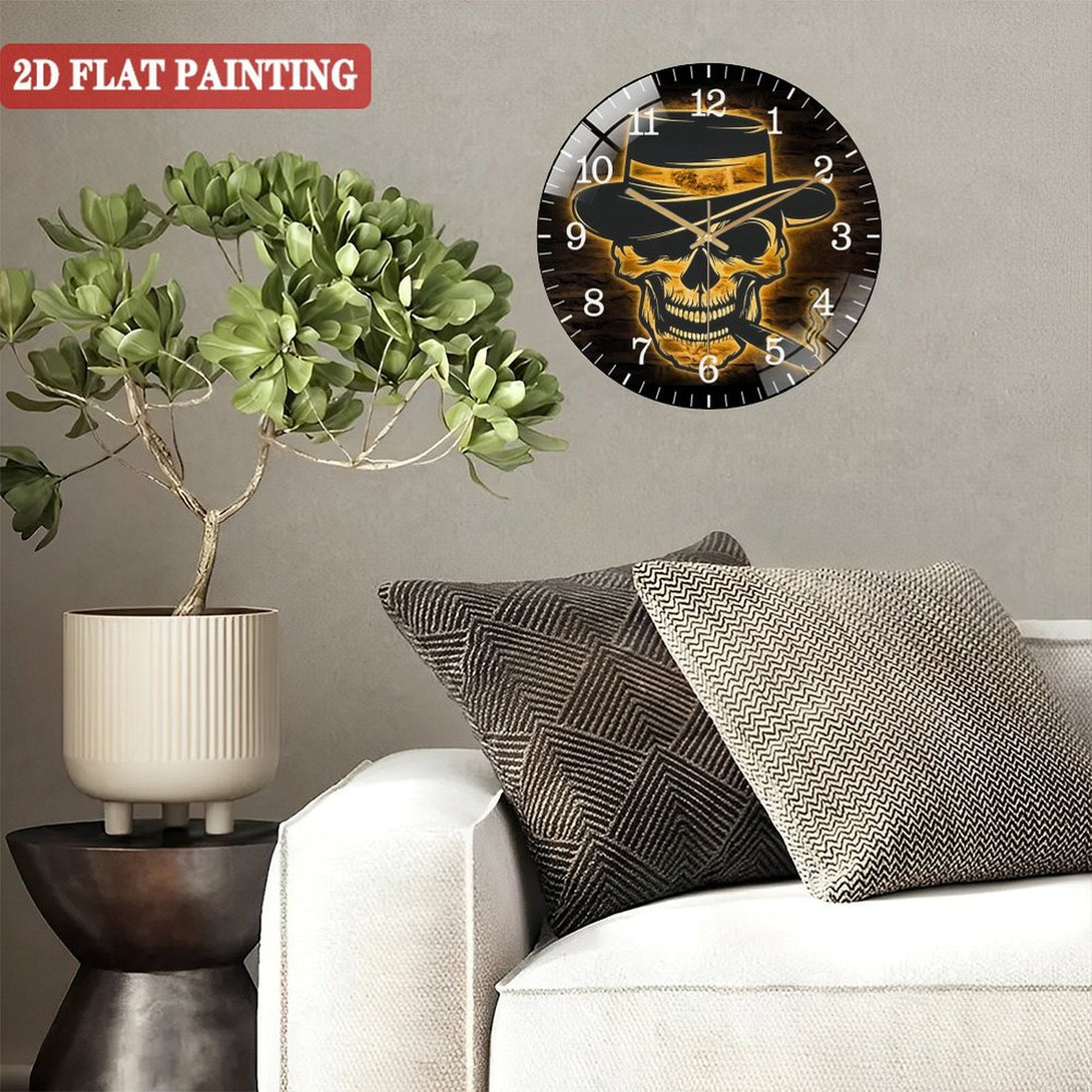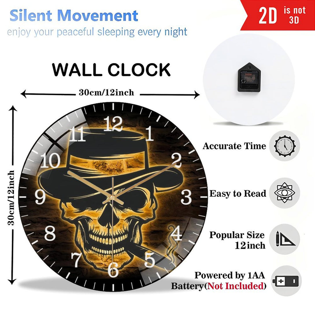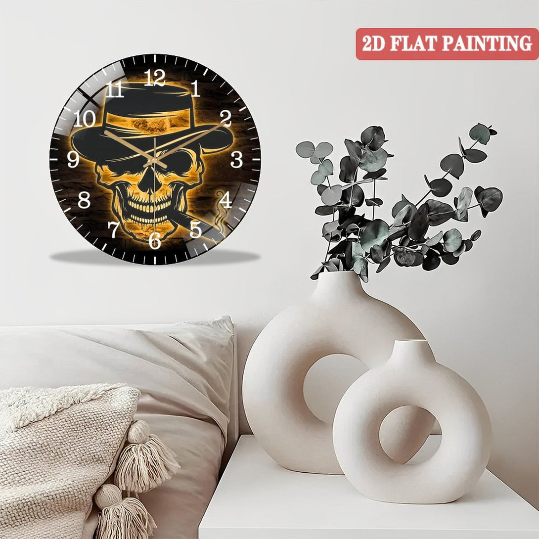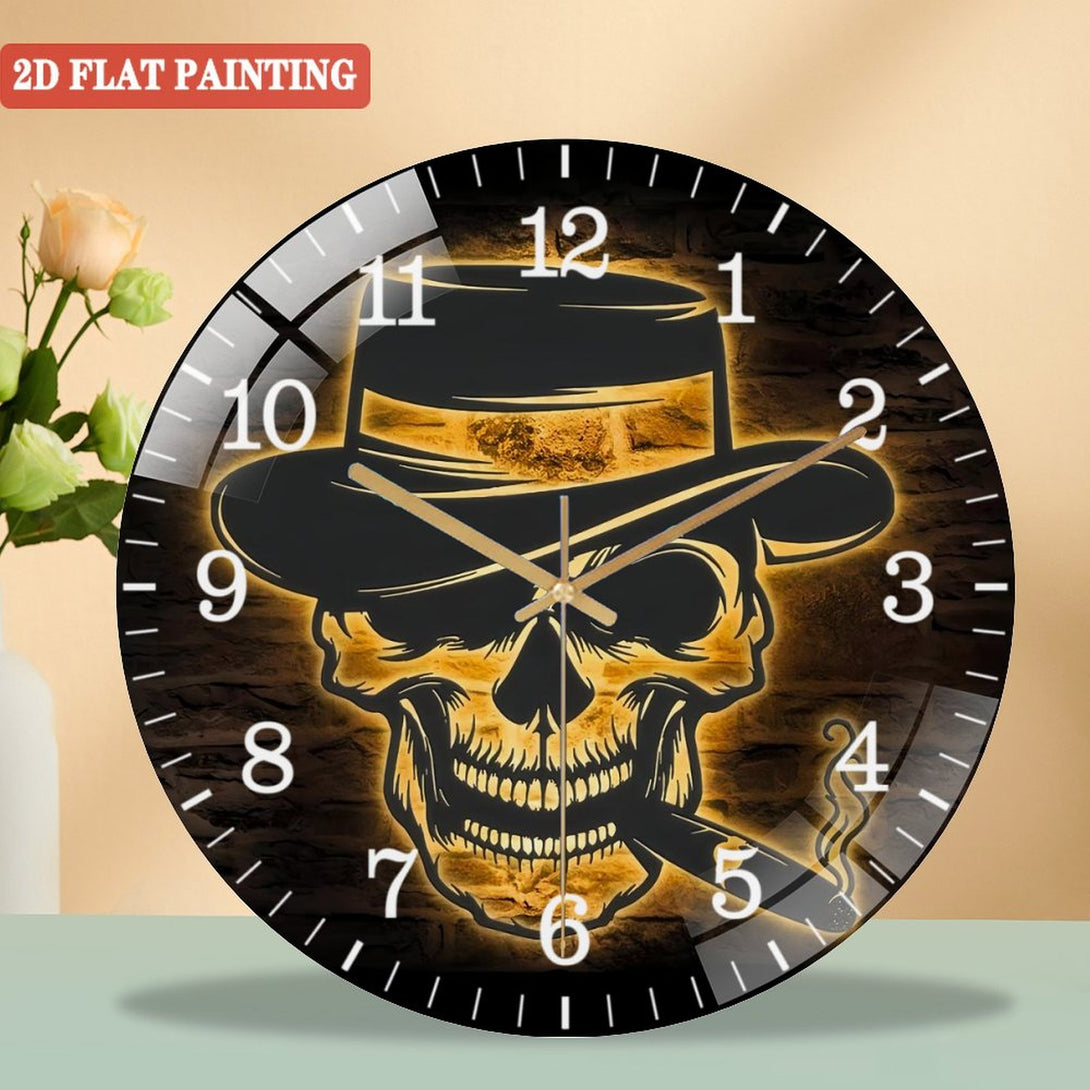 Gangter Sugar Skull Cigar Glass Wall Clocks, Skull Smoking Cigar Glass Wall Clocks, Home Decor Smoker Man Cave Decoration Xmas