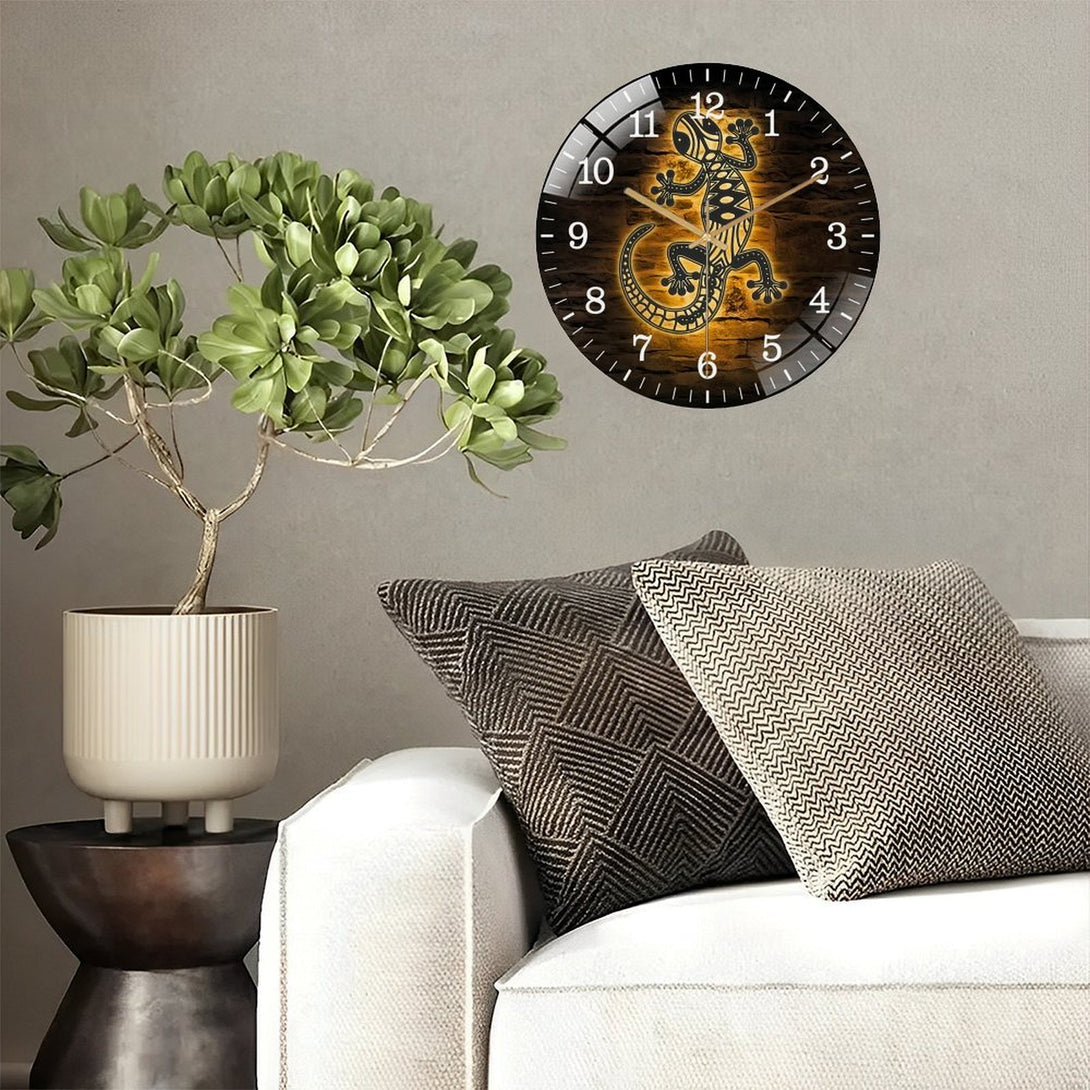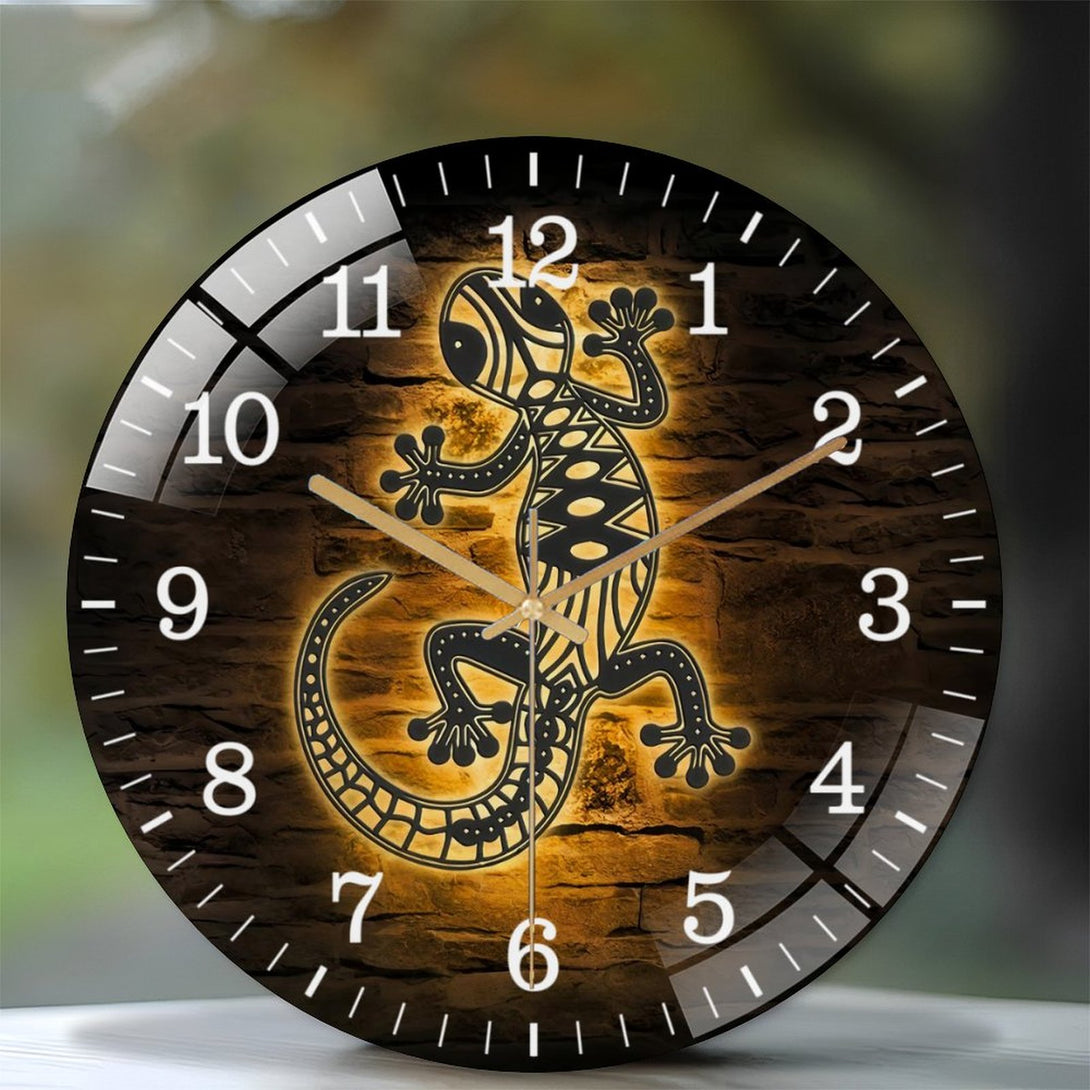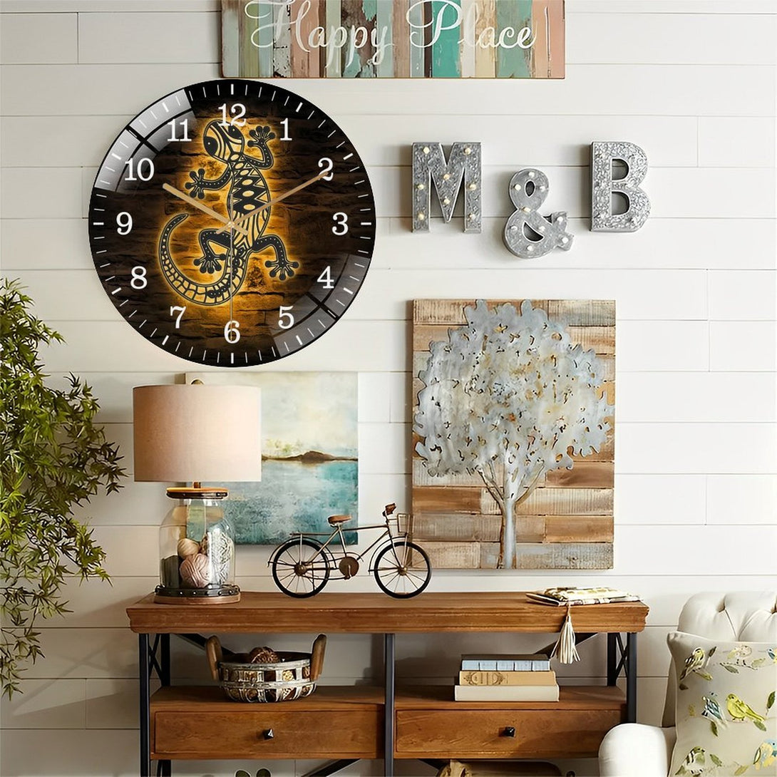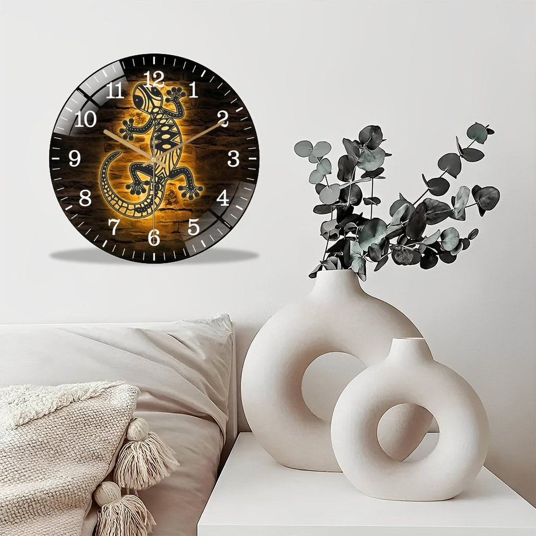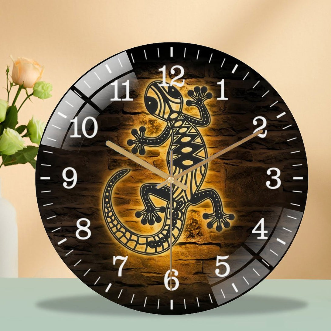Gecko Glass Wall Clocks, Lizard Lover Glass Wall Clocks, Home Decor Pet Animal Kid Nursery Decoration Birthday Xmas