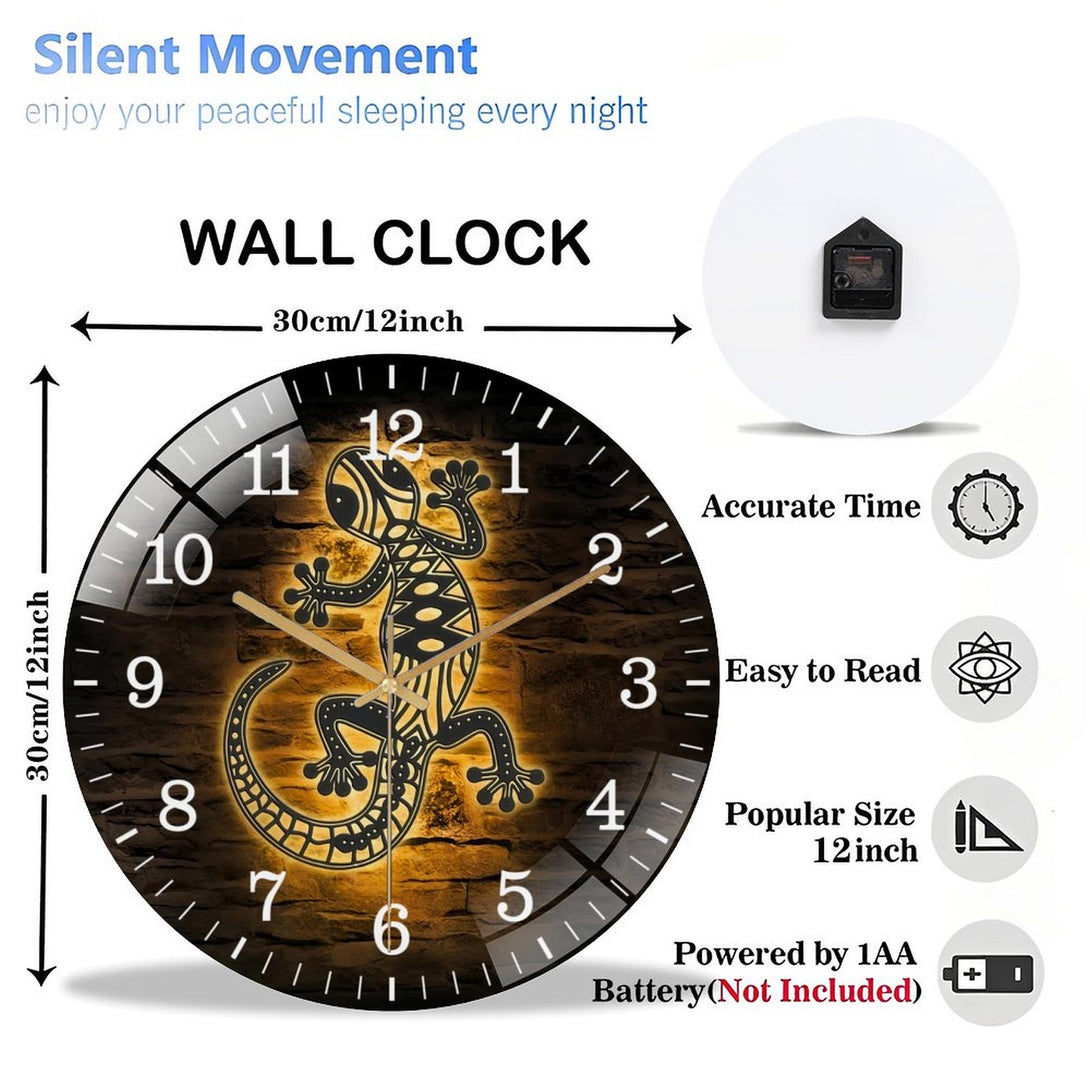 Decor Wall Clocks: Gecko Glass Wall Clocks, Lizard Lover Glass Wall Clocks, Home Decor Pet Animal Kid Nursery Decoration Birthday Xmas Style 12×12inch(30×30cm)