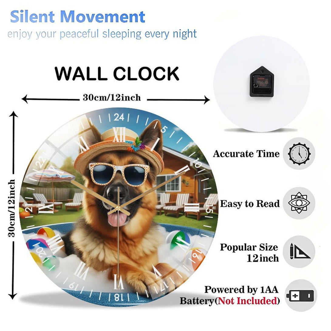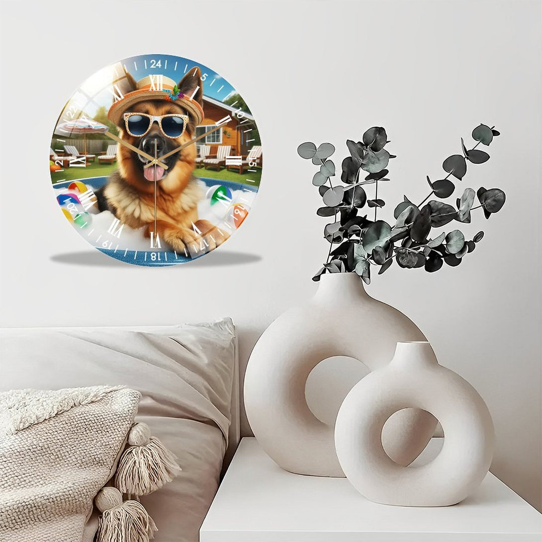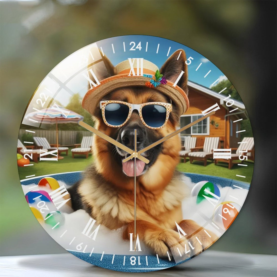 German Shepherd in A Hot Tub Glass Wall Clock ,Dog Lover Decor Wall Clock for Homes, Bars, Offices, Man Caves, Garages, And Living Rooms. Hallo-ween Gift,12×12inch(30×30cm)