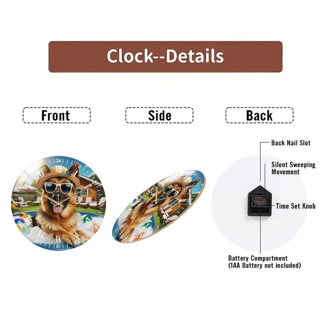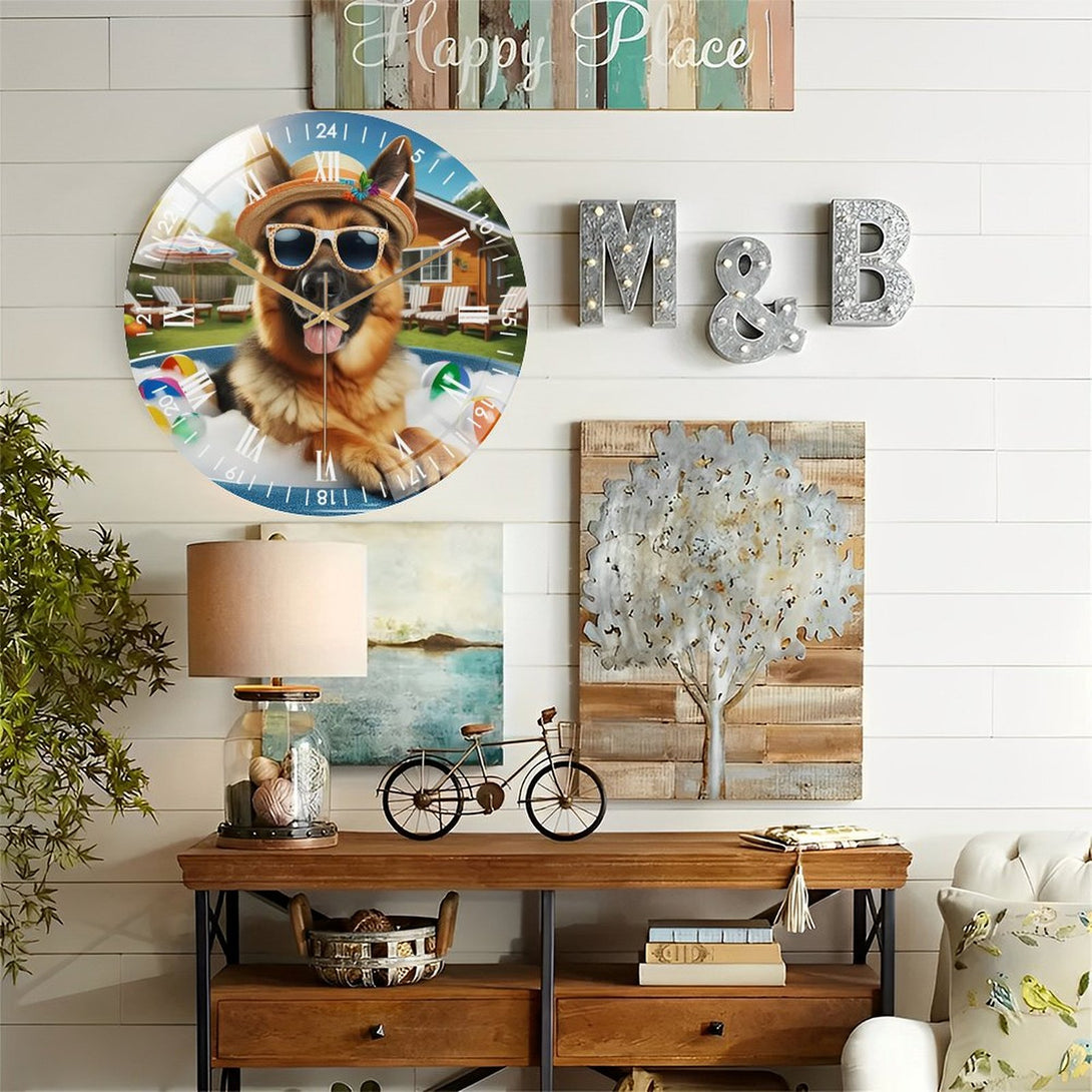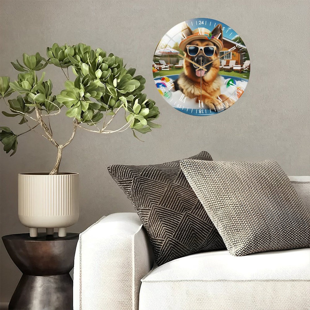 German Shepherd in A Hot Tub Glass Wall Clock ,Dog Lover Decor Wall Clock for Homes, Bars, Offices, Man Caves, Garages, And Living Rooms. Hallo-ween Gift,12×12inch(30×30cm)