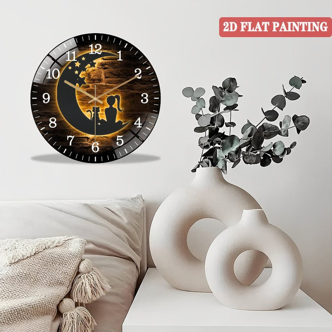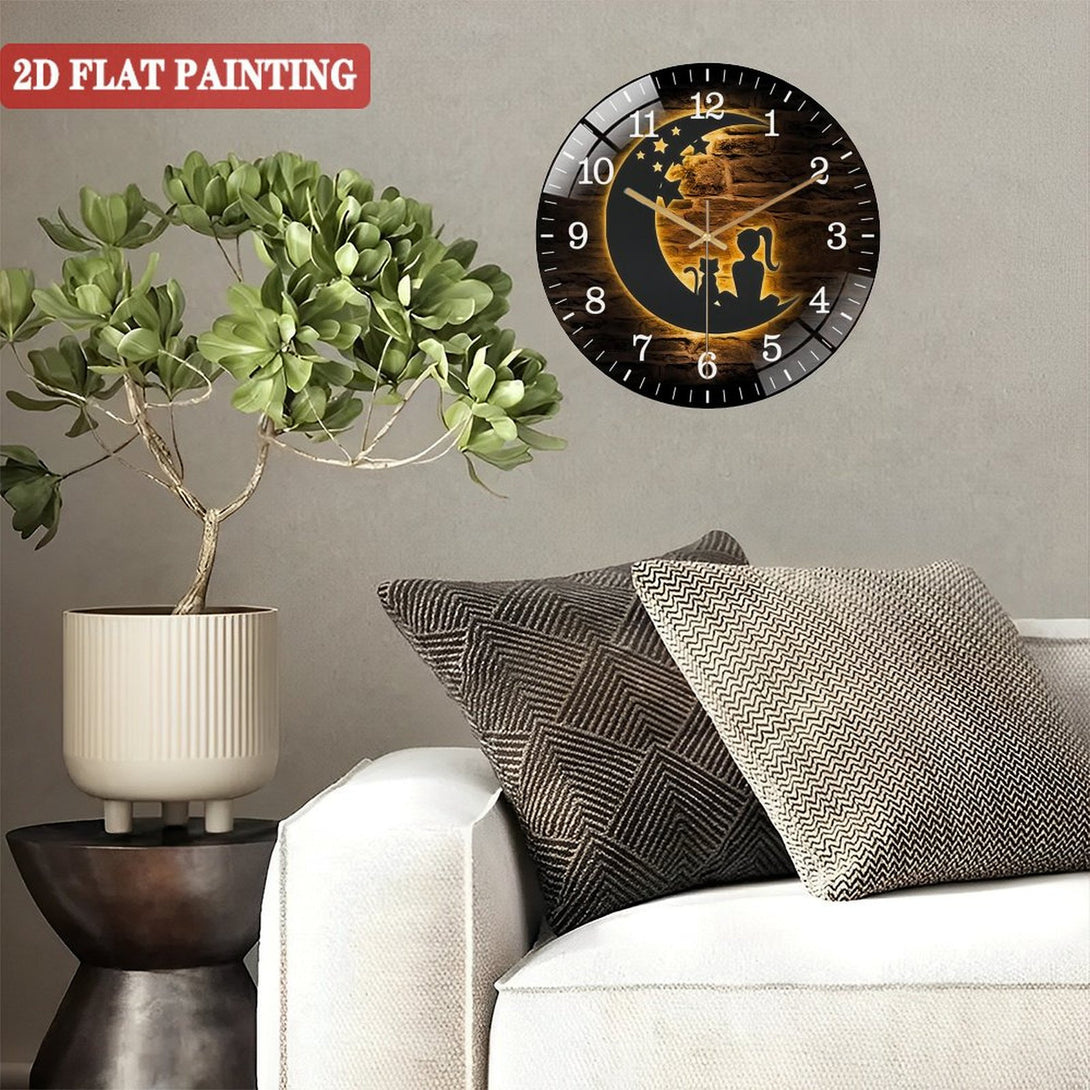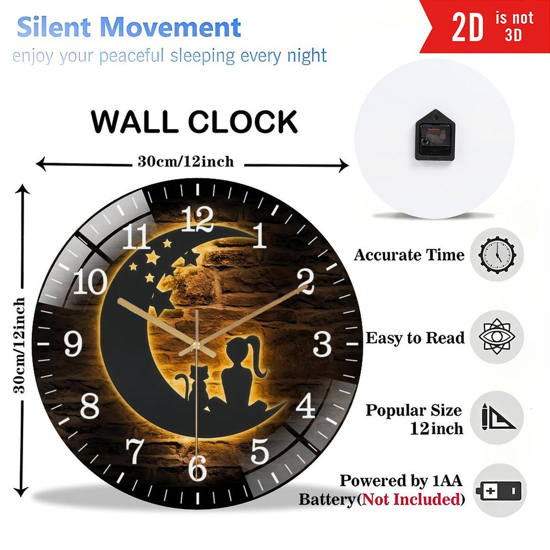 Girl And Cat On The Moon Glass Wall Clocks,Moon Cat Glass Wall Clocks,Home Decor Crescent Moon Decoration Man Cave Hanging Door Housewarming