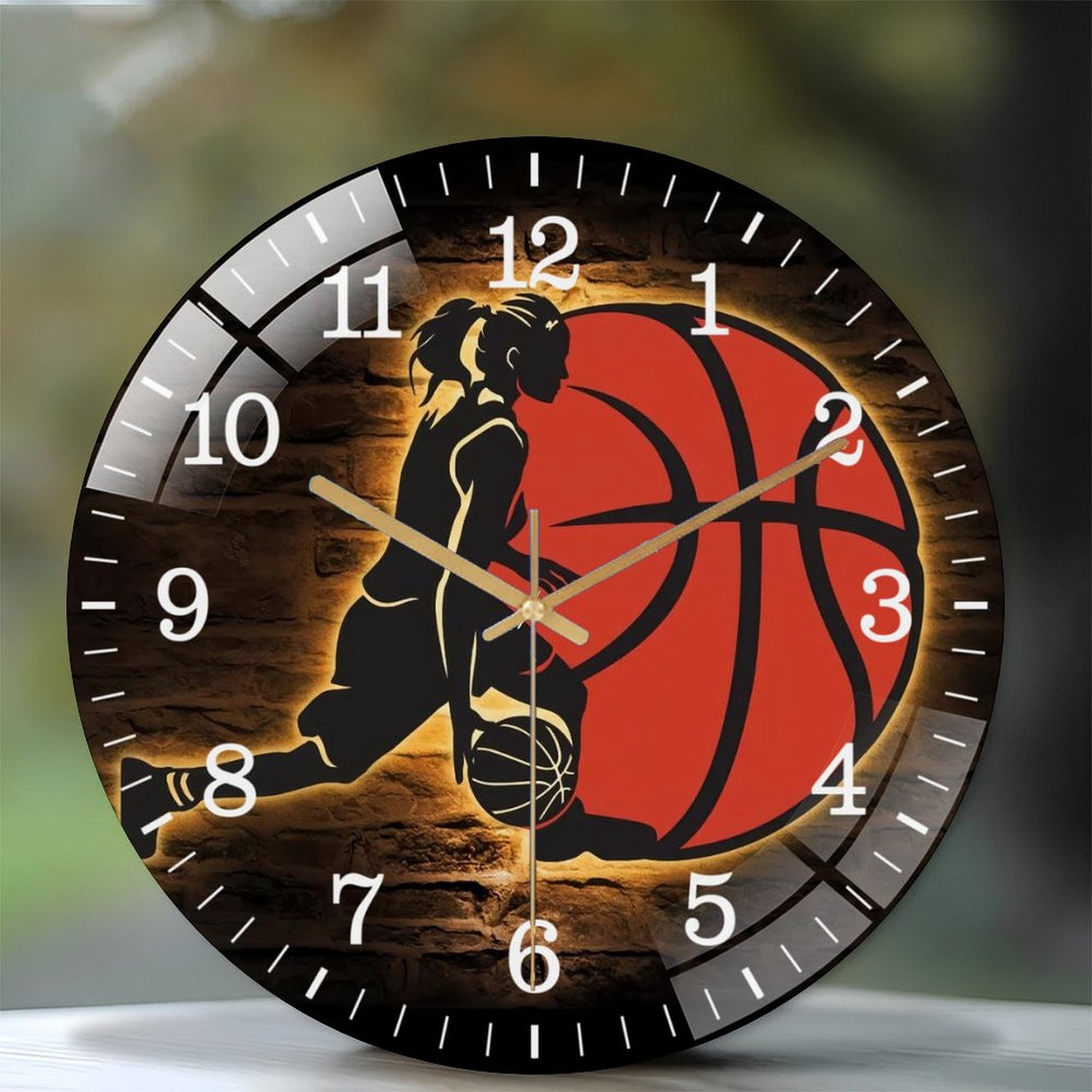 Girl Basketball Glass Wall Clock, Female Player Lover Wall Clock, Home Decor Man Cave Sport Room Decoration Mother's Day Birthday Christmas.,12×12inch(30×30cm)