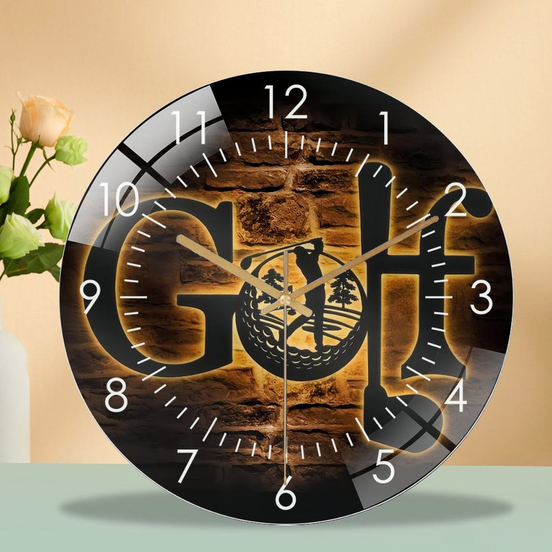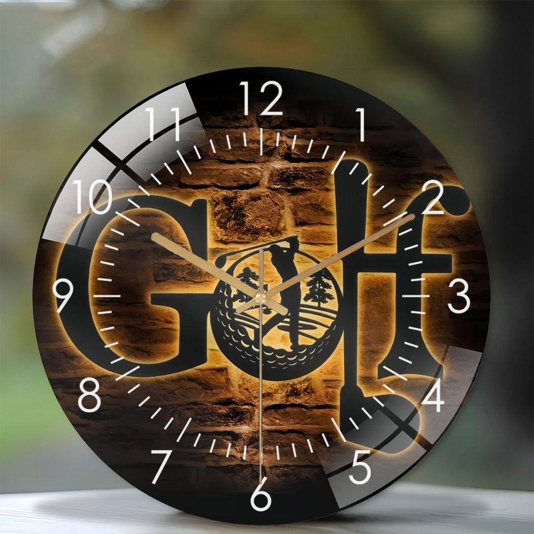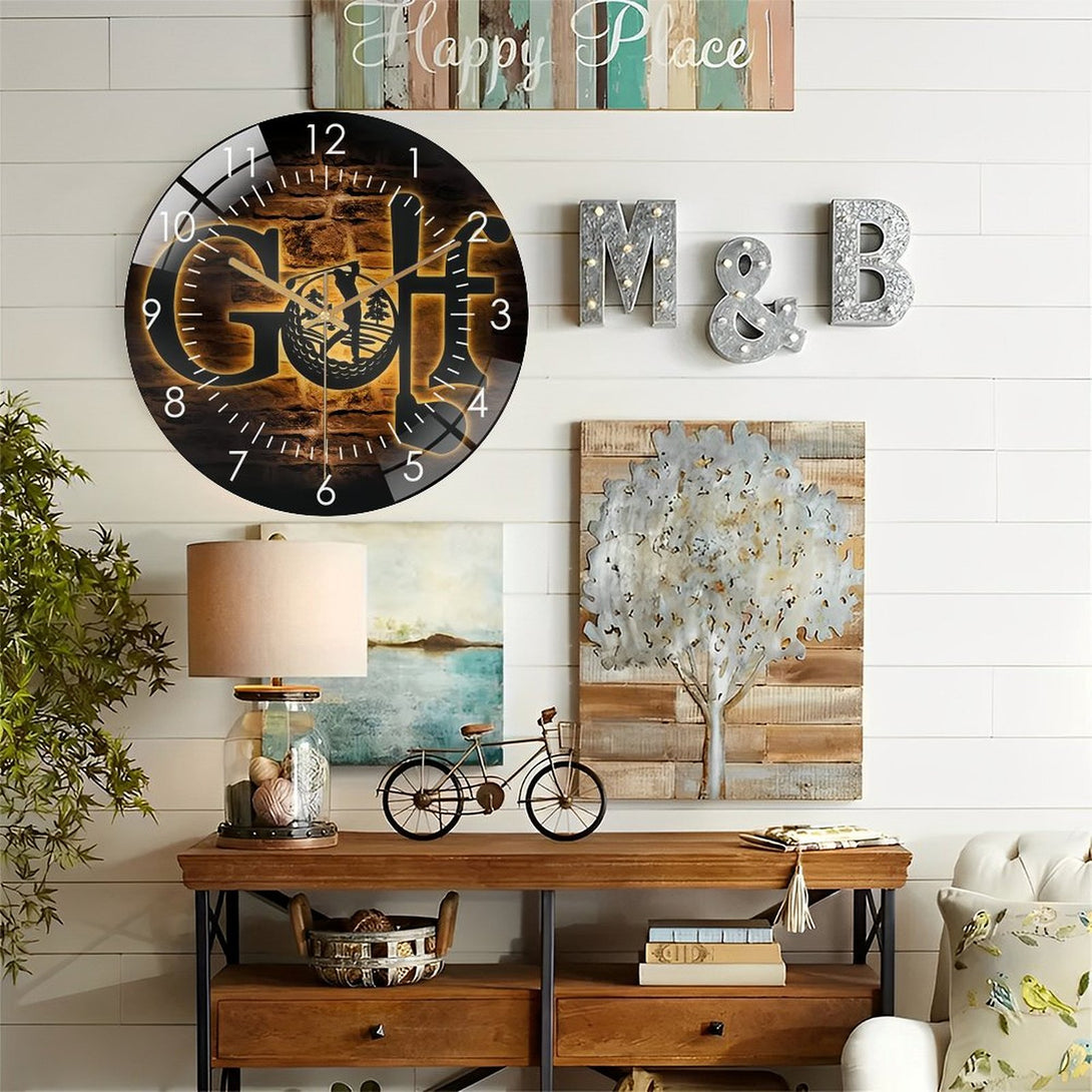 Decor Wall Clocks: Golfing Metal Wall Art Glass Wall Clock, Golfer Glass Wall Clock,Home Decor 19th Hole Golf Club Man Cave Decoration Housewarming Birthday Christmas Dad Gifts