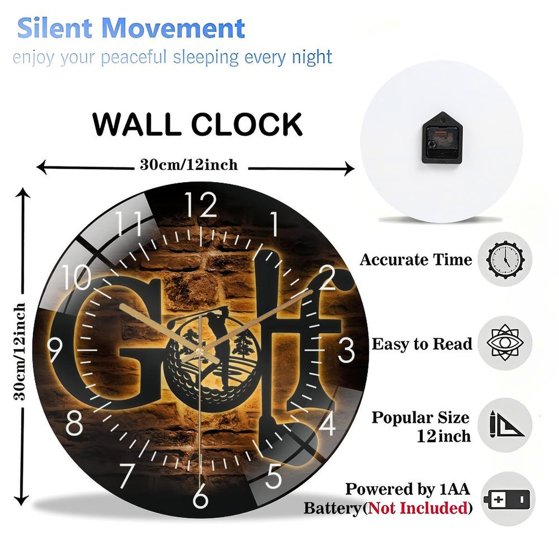 Golfing Metal Wall Art Glass Wall Clock, Golfer Glass Wall Clock,Home Decor 19th Hole Golf Club Man Cave Decoration Housewarming Birthday Christmas Dad Gifts,12×12inch(30×30cm)