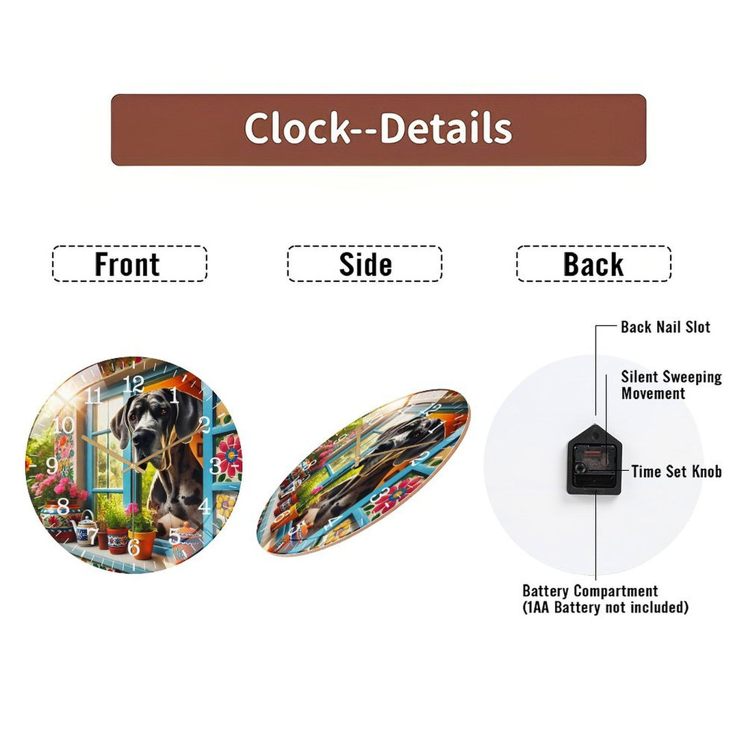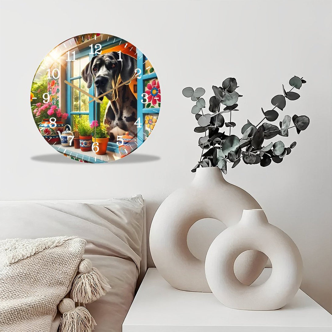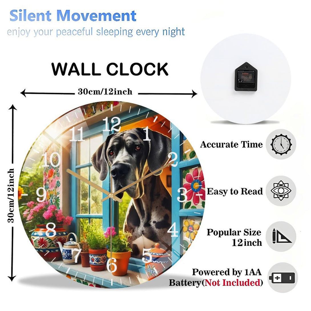 Great Dane in Window Dog Glass Wall Clock ,Dog Lover Wall Clock for Homes, Bars, Offices, Man Caves, Garages, And Living Rooms. .Also Makes A Great Gift.Housewarming Gift,12×12inch(30×30cm)