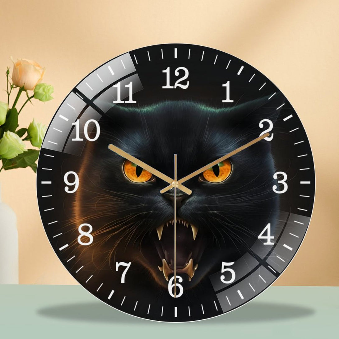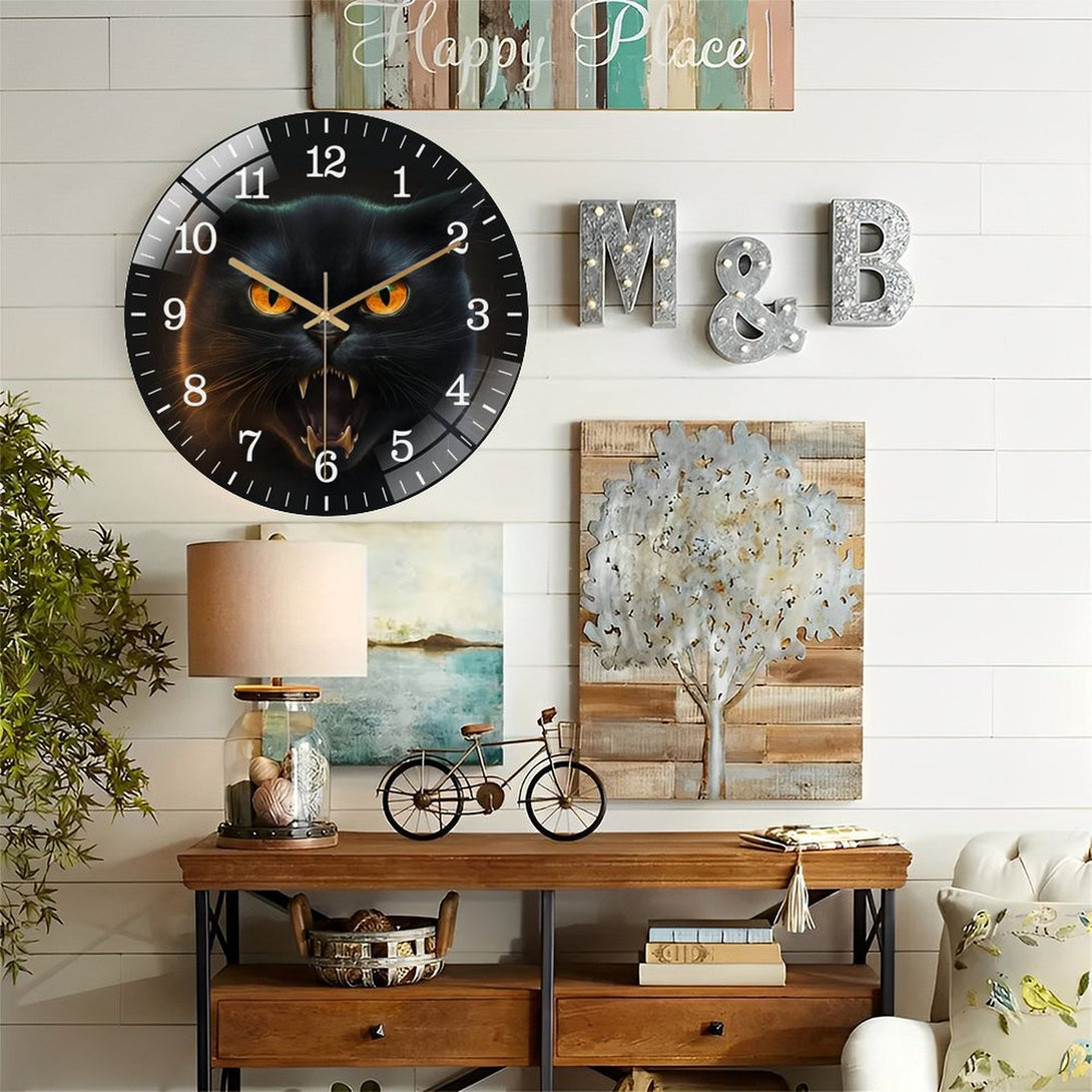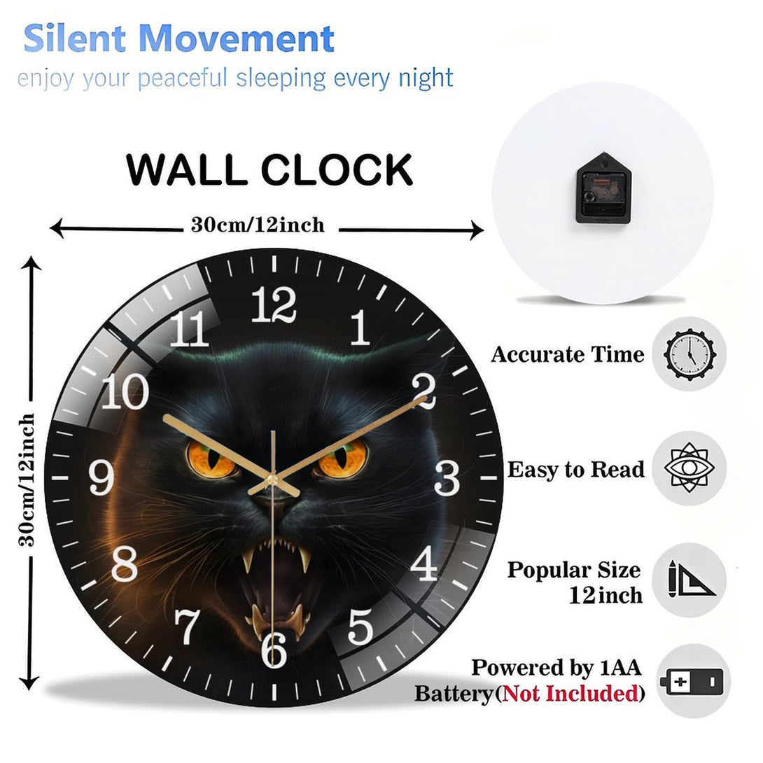 Decor Wall Clocks: Hallo-ween Cat, Scary Black Cat Glass Wall Clock for Homes, Bars, Offices, Man Caves, Garages, And Living Rooms. Also Makes A Great Gift. Style 12×12inch(30×30cm)
