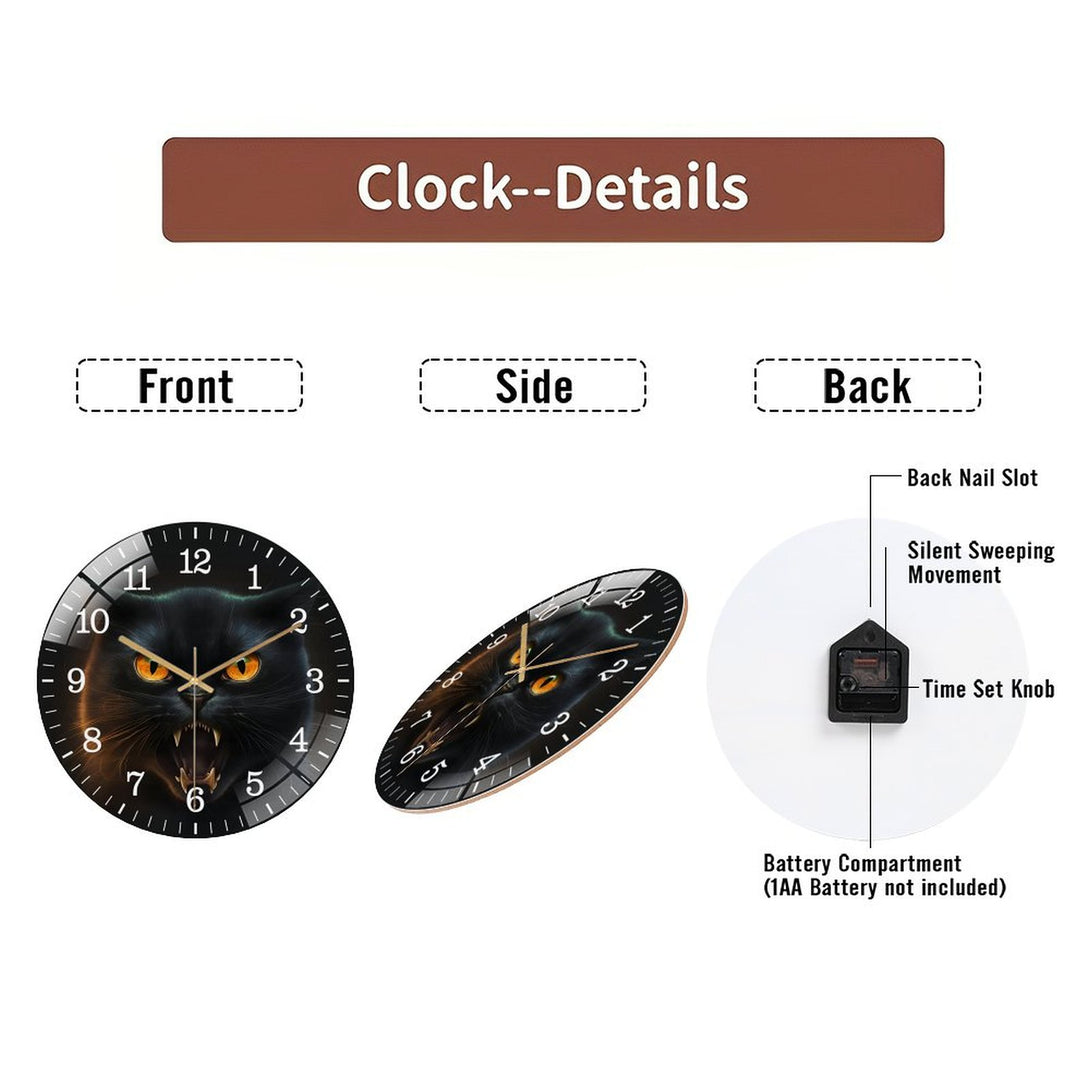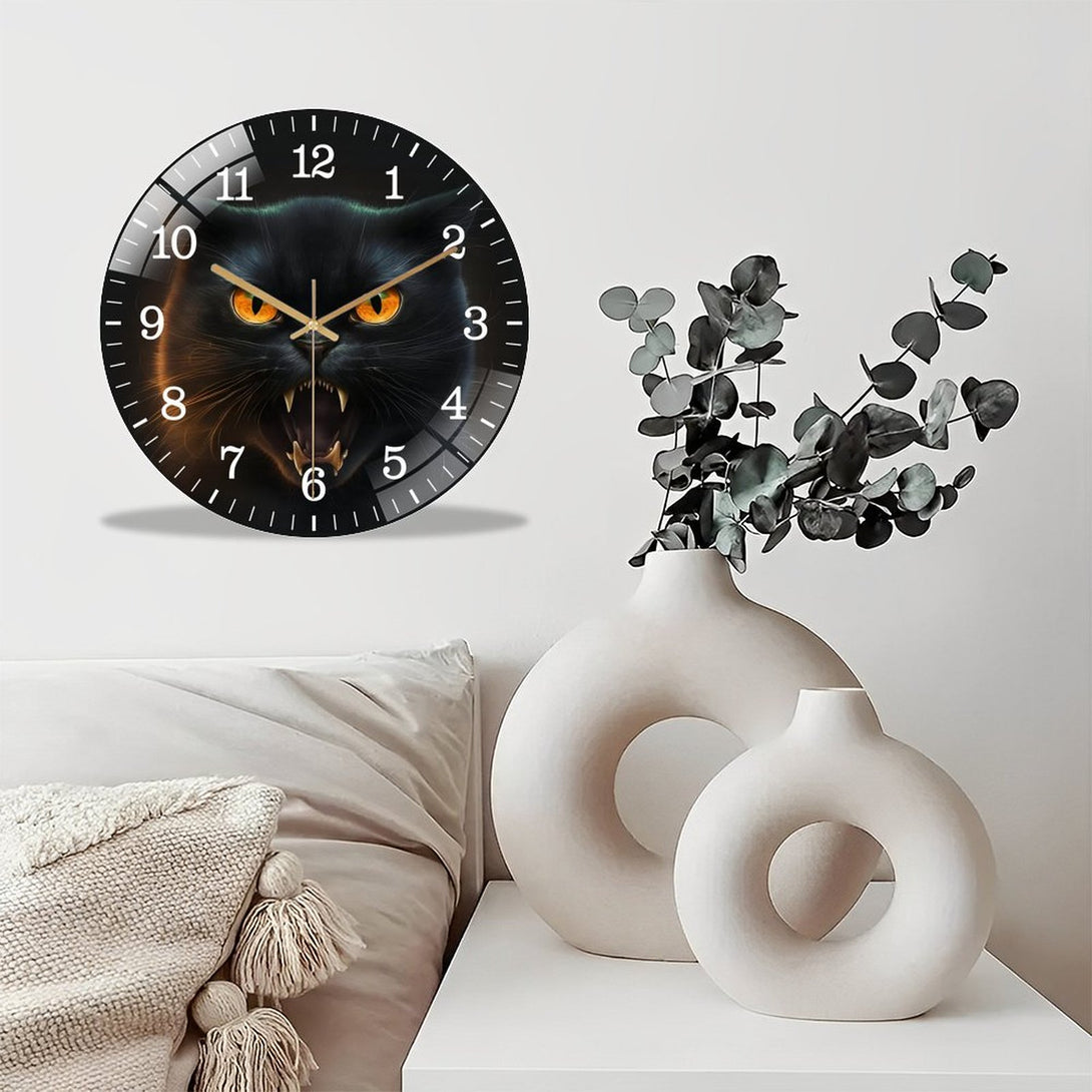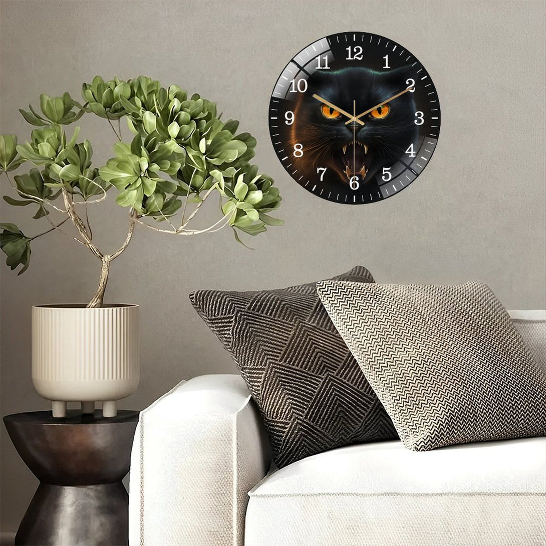 Decor Wall Clocks: Hallo-ween Cat, Scary Black Cat Glass Wall Clock for Homes, Bars, Offices, Man Caves, Garages, And Living Rooms. Also Makes A Great Gift. Style 12×12inch(30×30cm)