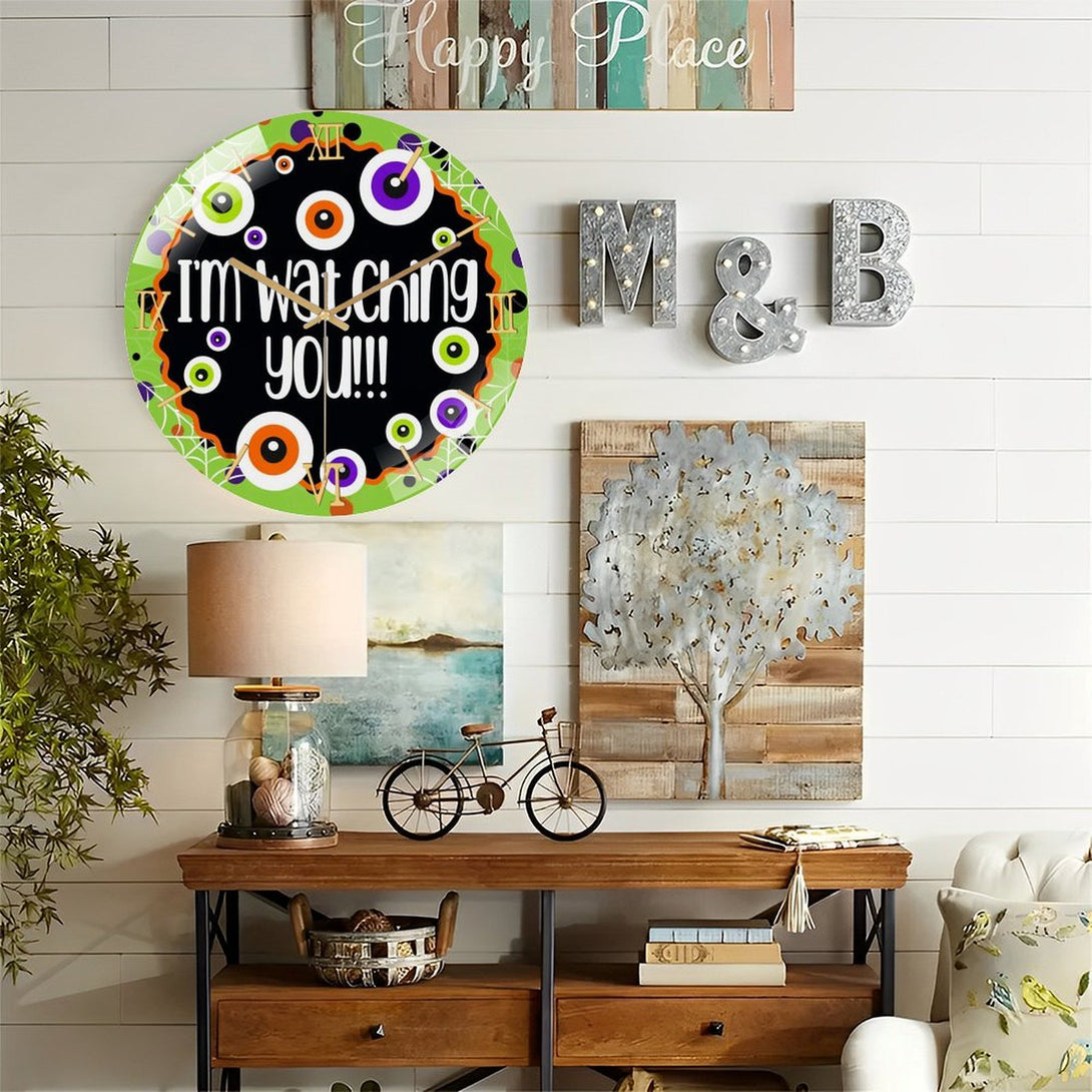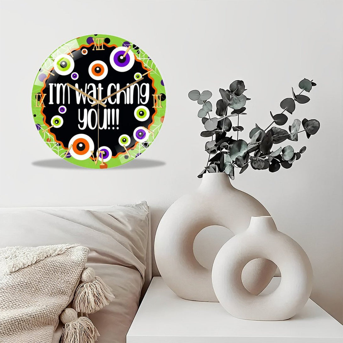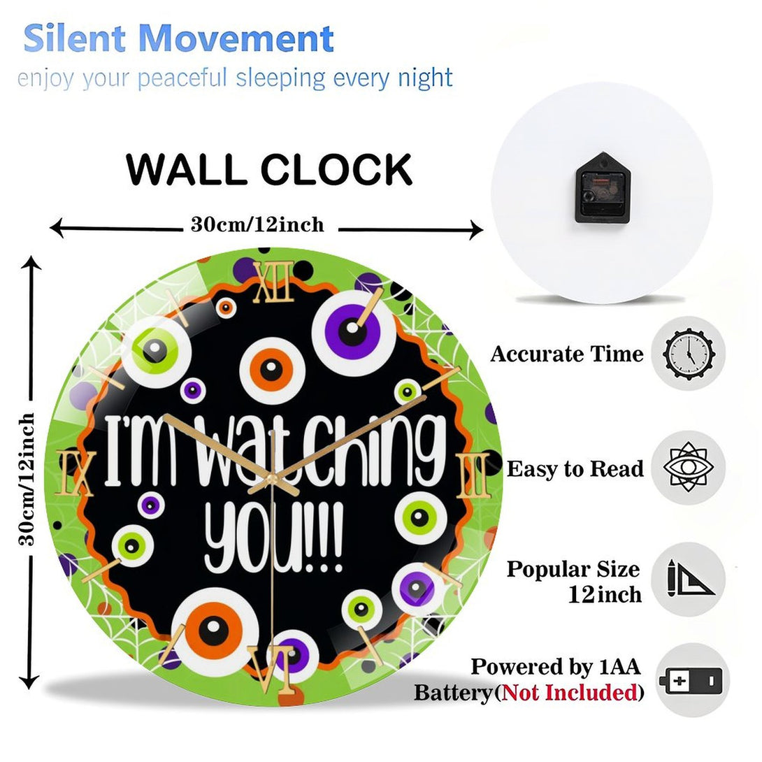 Hallo-ween Eyeballs Glass Wall Clock, I'm Watching You! Hallo-ween Decor Wall Clock for Homes, Bars, Offices, Man Caves, Garages, And Living Rooms. Hallo-ween Gift,12×12inch(30×30cm)