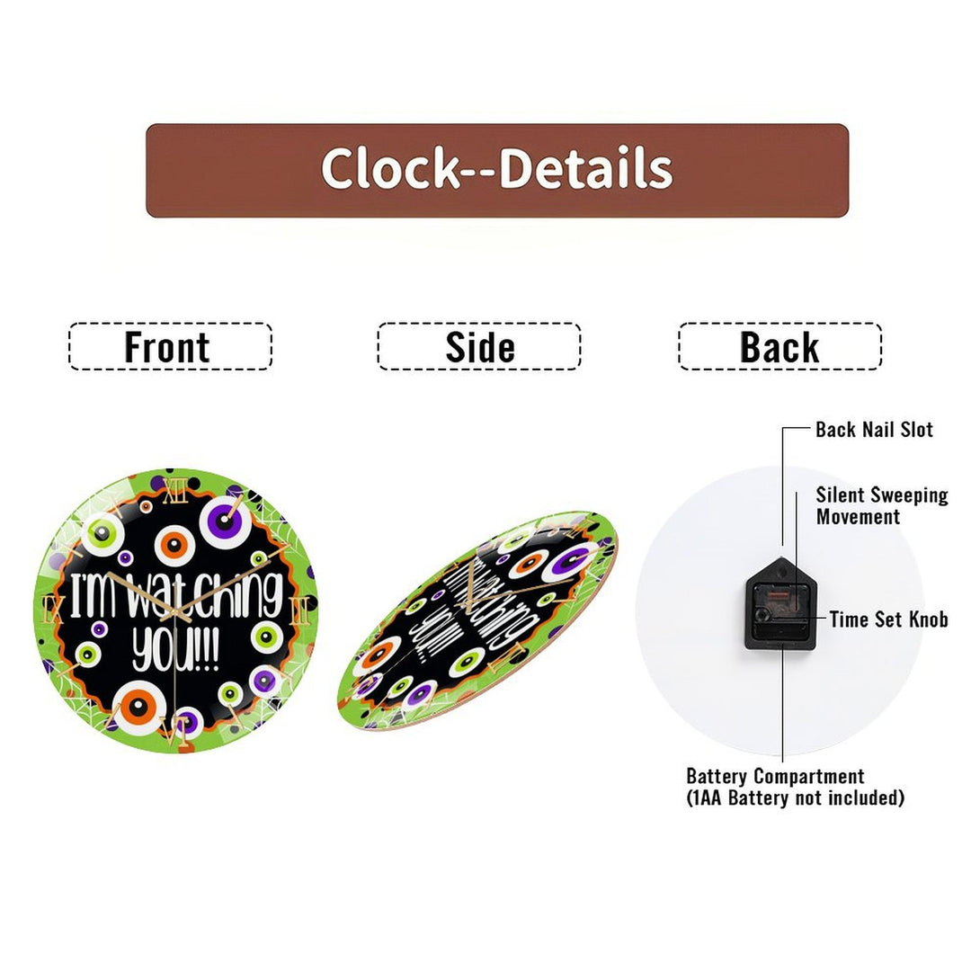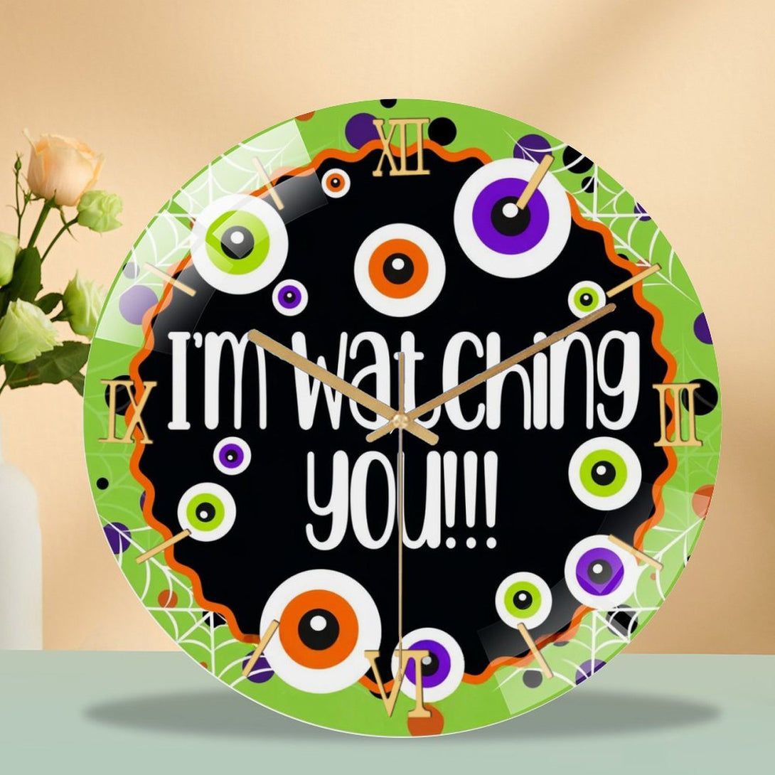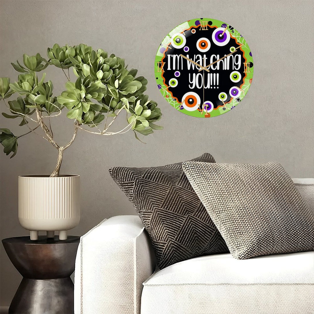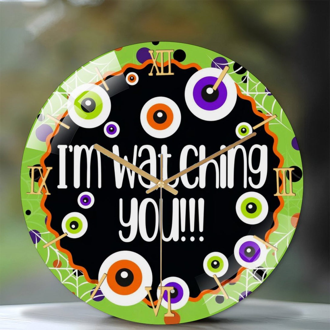 Hallo-ween Eyeballs Glass Wall Clock, I'm Watching You! Hallo-ween Decor Wall Clock for Homes, Bars, Offices, Man Caves, Garages, And Living Rooms. Hallo-ween Gift,12×12inch(30×30cm)