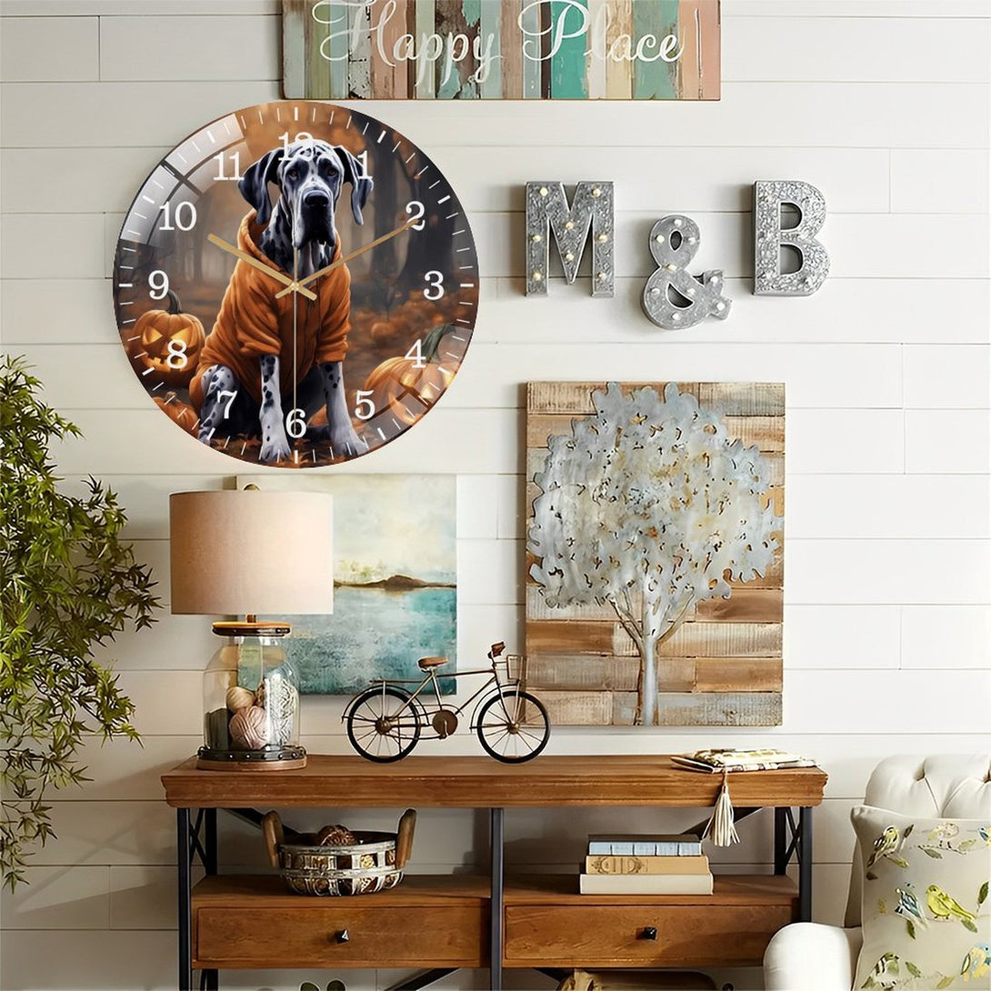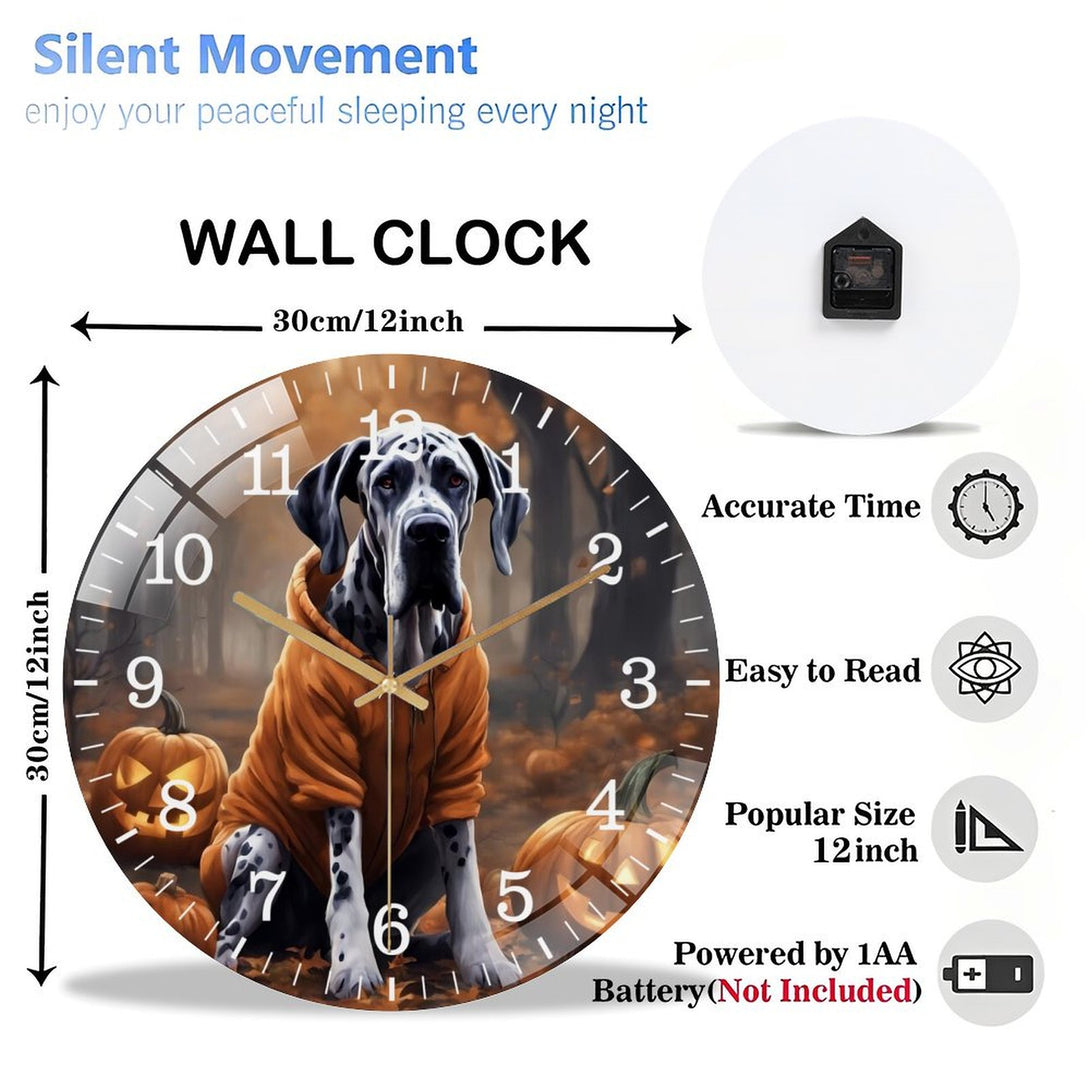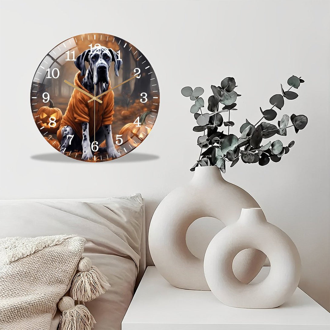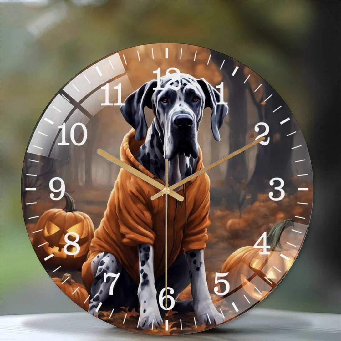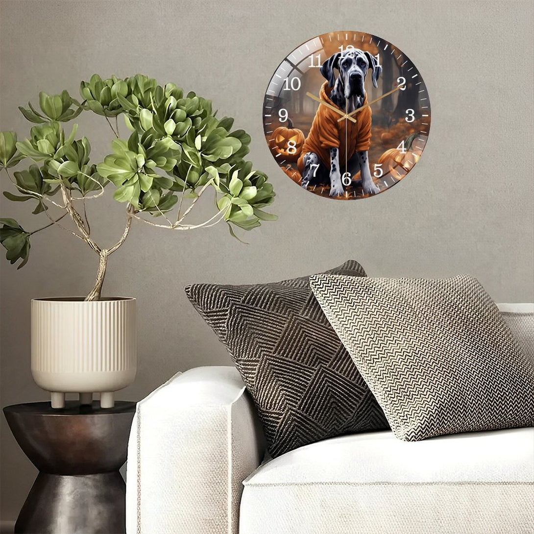 Hallo Ween Great Dane Dog Glass Wall Clock ,Dog Lover Wall Clock for Homes, Bars, Offices, Man Caves, Garages, And Living Rooms. .Also Makes A Great Gift._副本,12×12inch(30×30cm)
