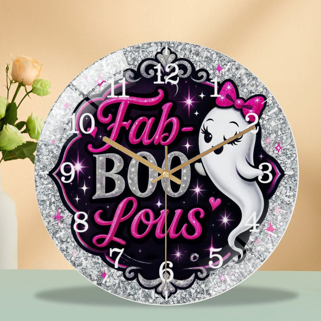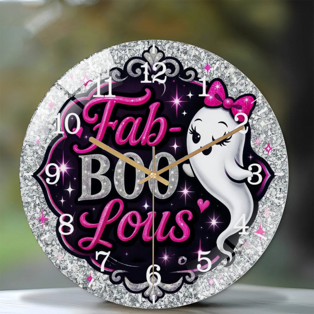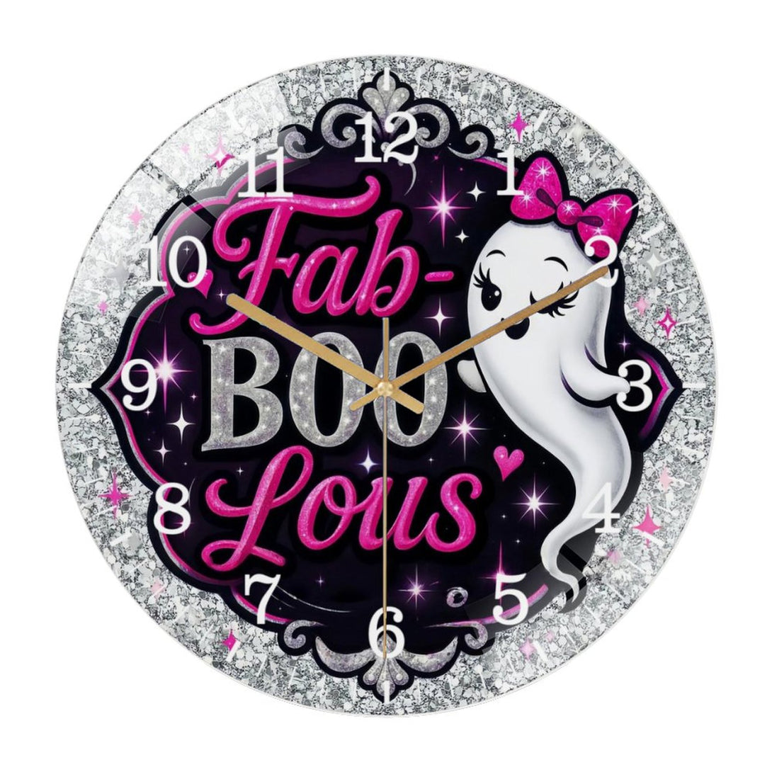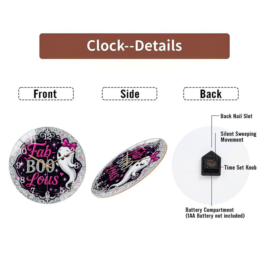 Decor Wall Clocks: Hallo-ween Pink Ghost Wreath Glass Wall Clock,Spooky Hallo Ween Wall Clock from Homes, Bars, Offices, Man Caves, Garages, And Living Rooms. Also Makes A Great Gift.
