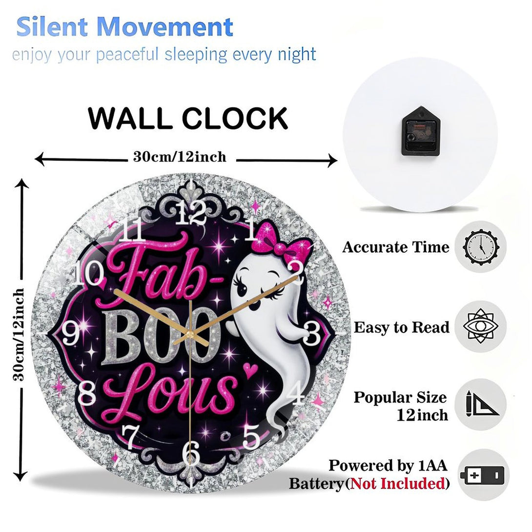 Hallo-ween Pink Ghost Wreath Glass Wall Clock,Spooky Hallo Ween Wall Clock from Homes, Bars, Offices, Man Caves, Garages, And Living Rooms. Also Makes A Great Gift.,12×12inch(30×30cm)
