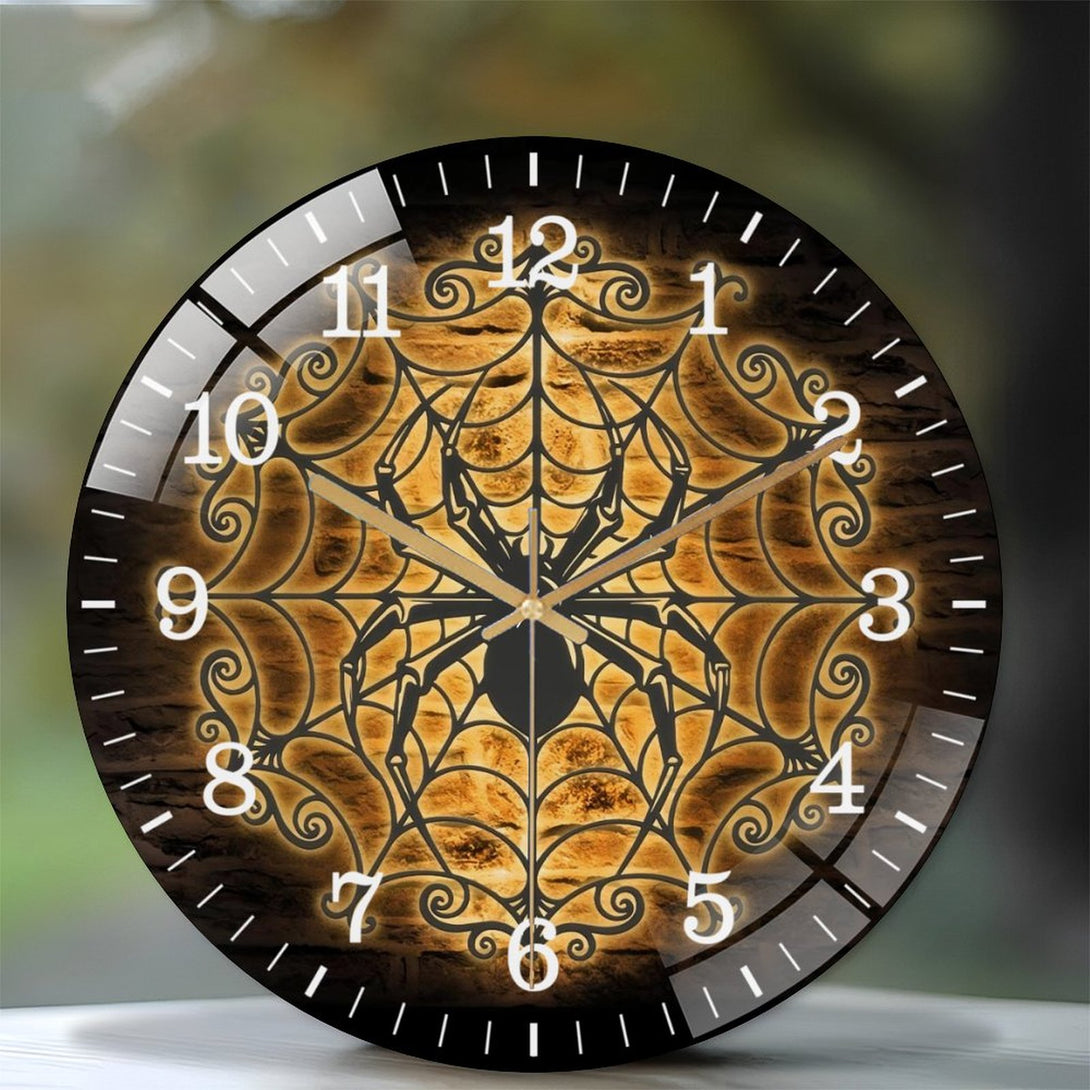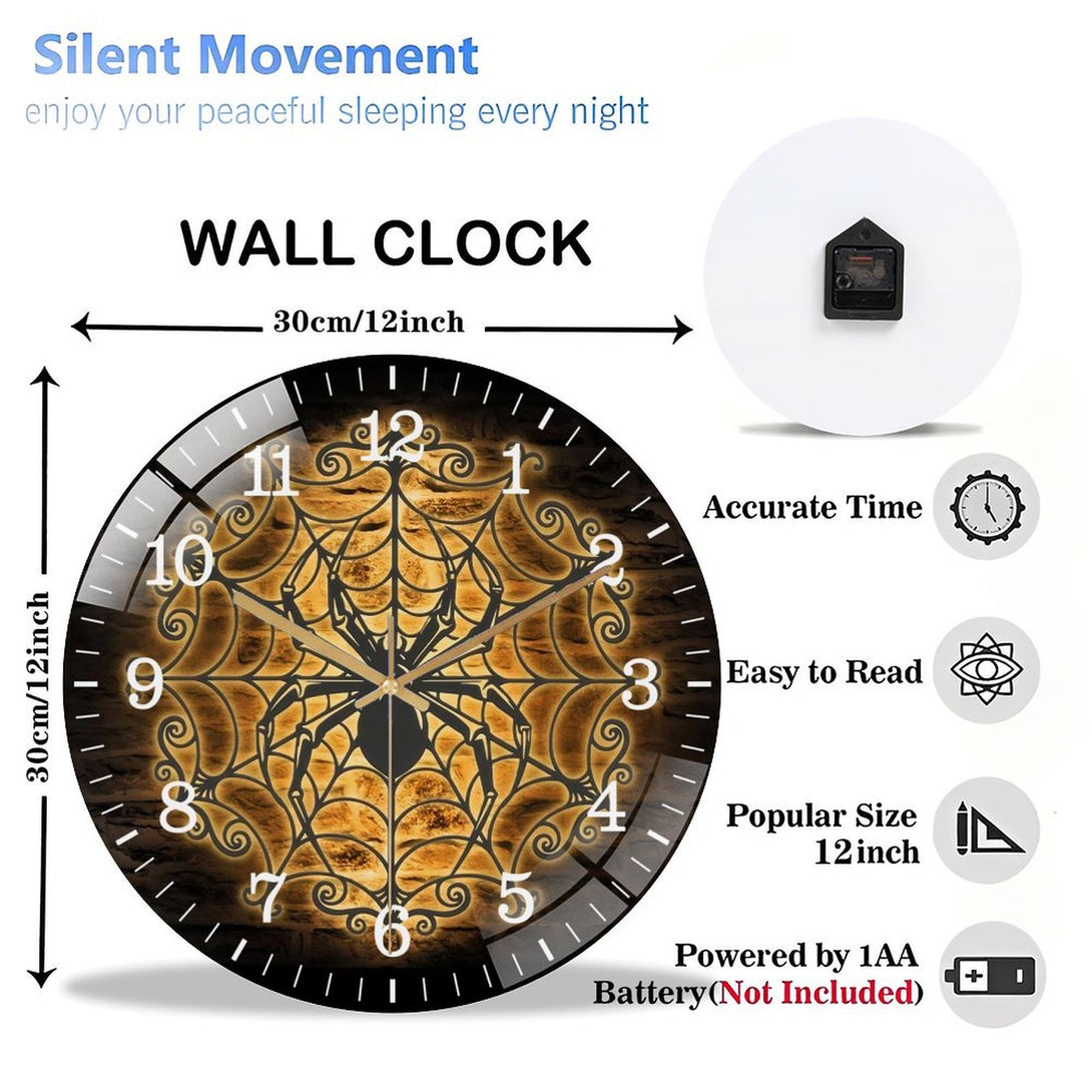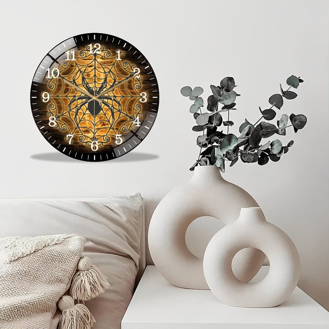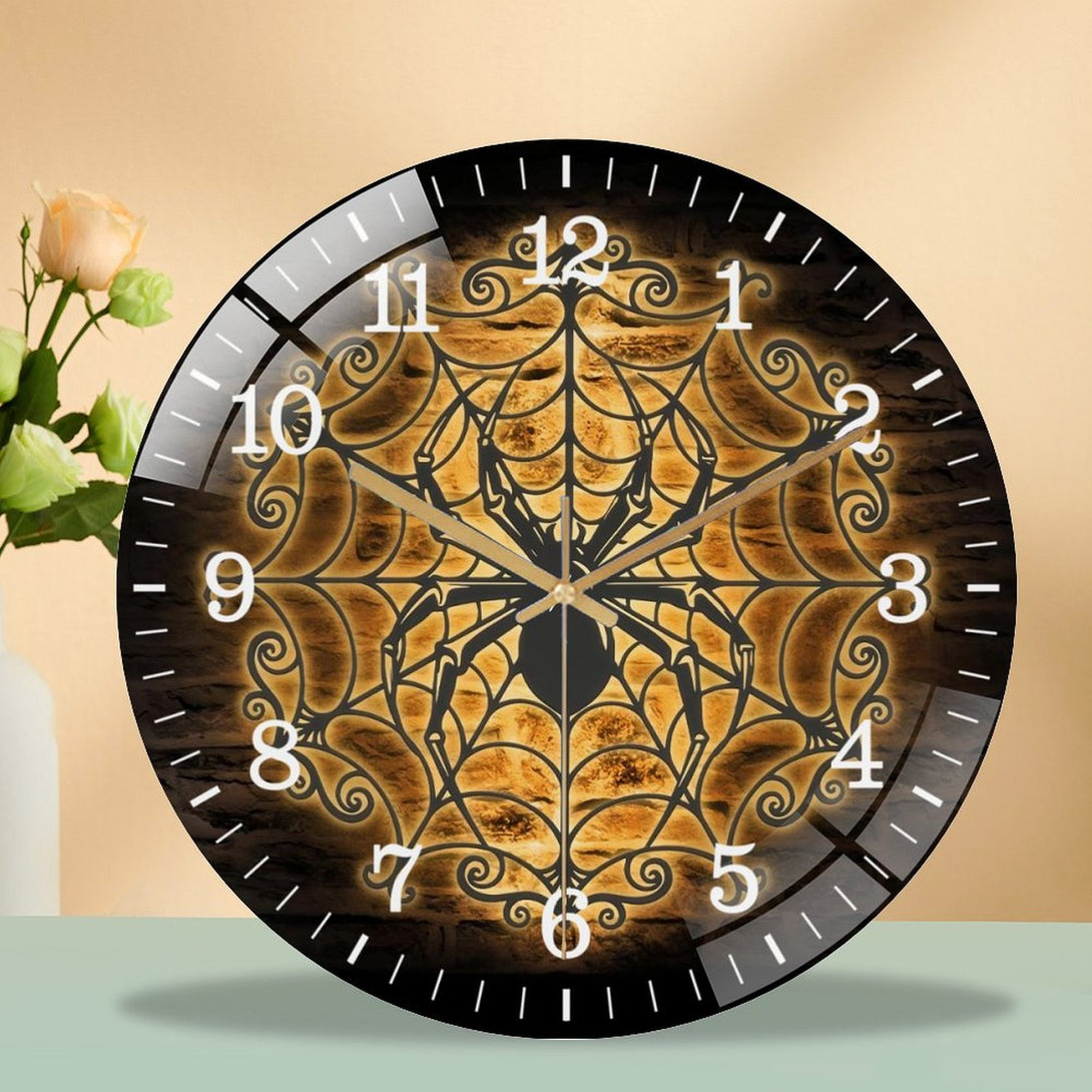 Hallo-ween Spider Glass Wall Clock, Creepy Spider Web Decor Wall Clock for Homes, Bars, Offices, Man Caves, Garages, And Living Rooms. Also Makes A Great Gift.,12×12inch(30×30cm)