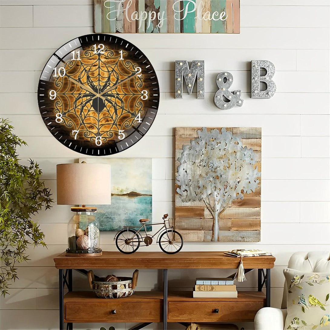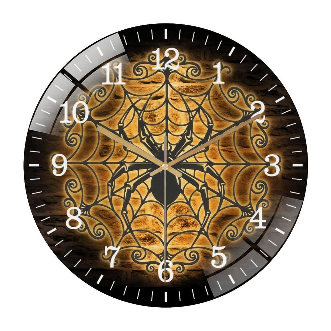 Decor Wall Clocks: Hallo-ween Spider Glass Wall Clock, Creepy Spider Web Decor Wall Clock for Homes, Bars, Offices, Man Caves, Garages, And Living Rooms. Also Makes A Great Gift.