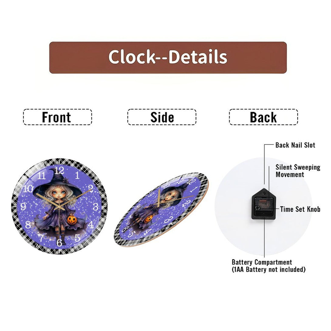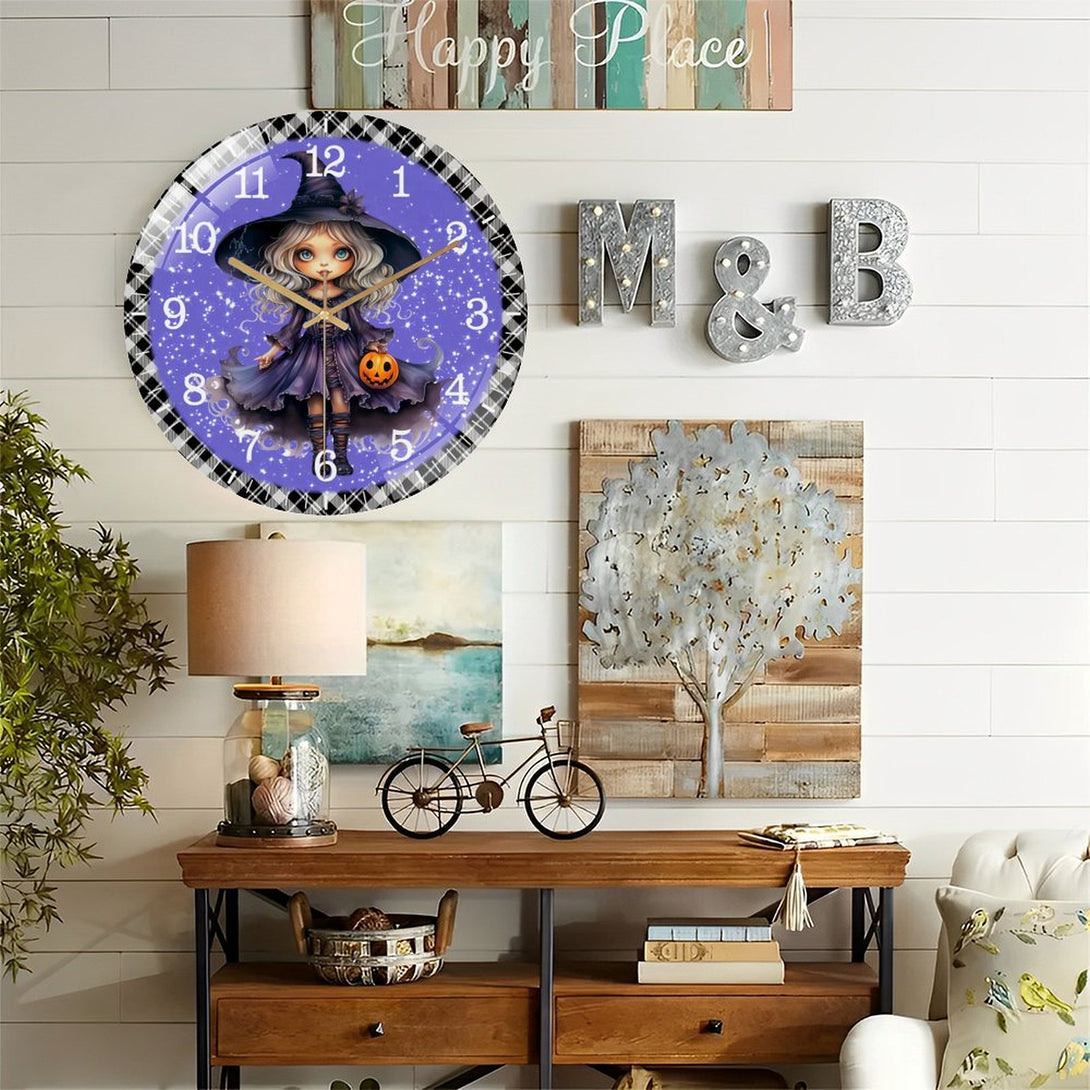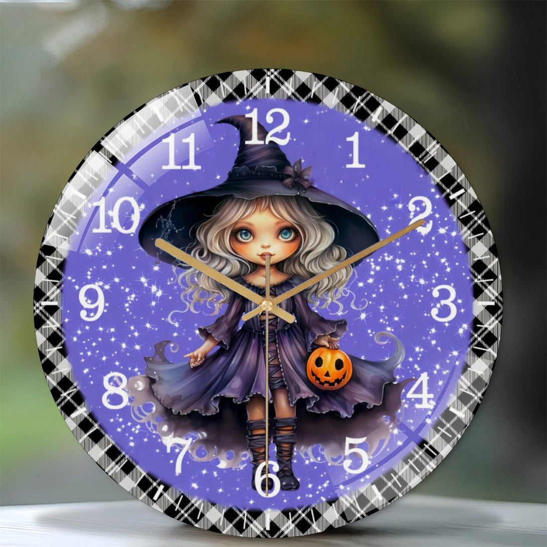 Decor Wall Clocks: Hallo-ween Trick Or Treater Witchy Girl Glass Wall Clock, Cute Witch Girl Wall Clock for Homes, Bars, Offices, Man Caves, Garages, And Living Rooms. Also Makes A Great Gift.