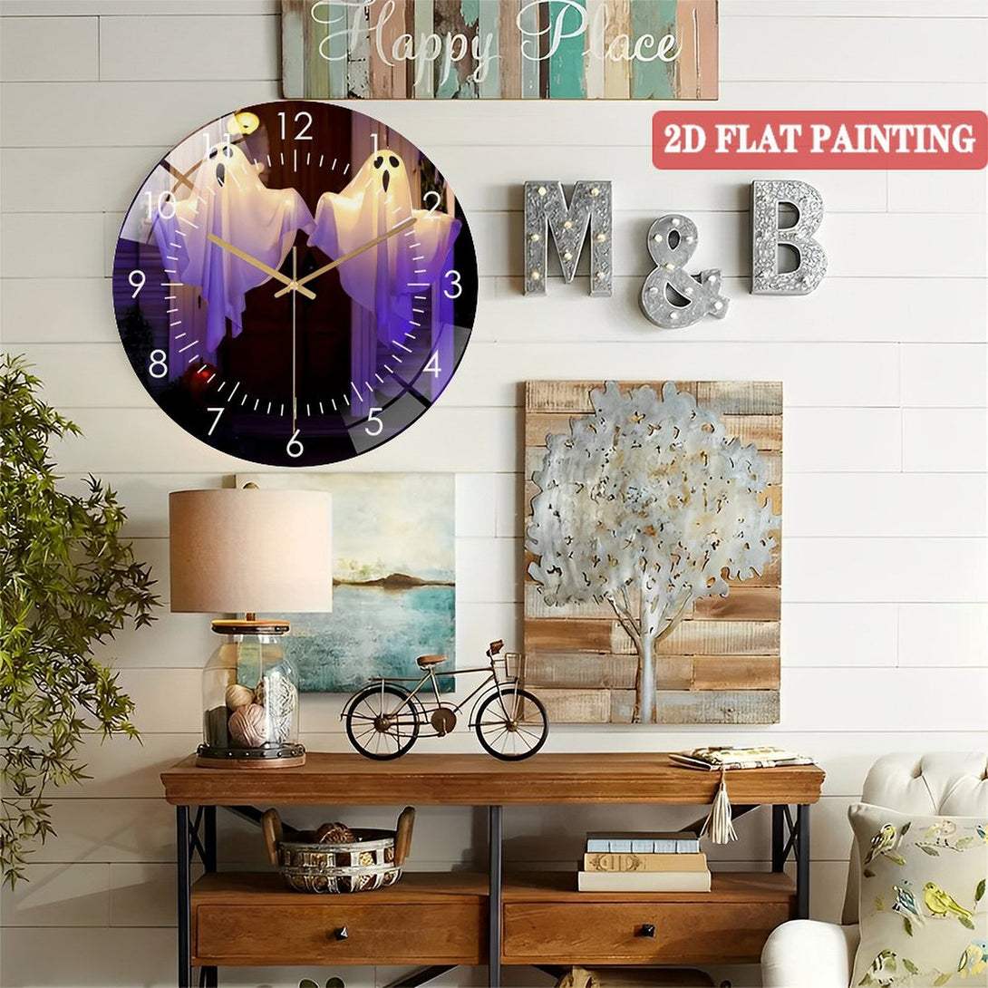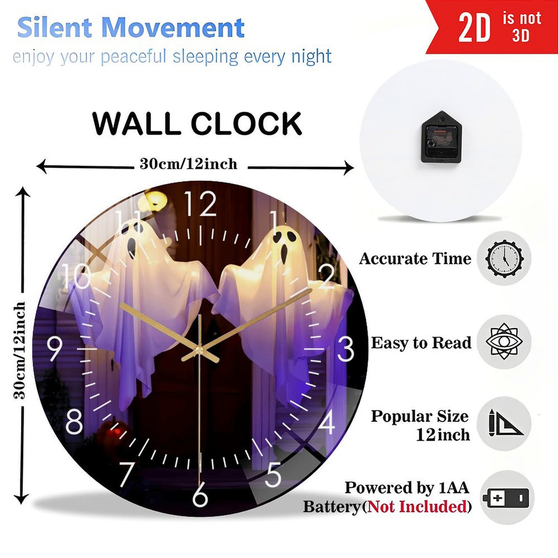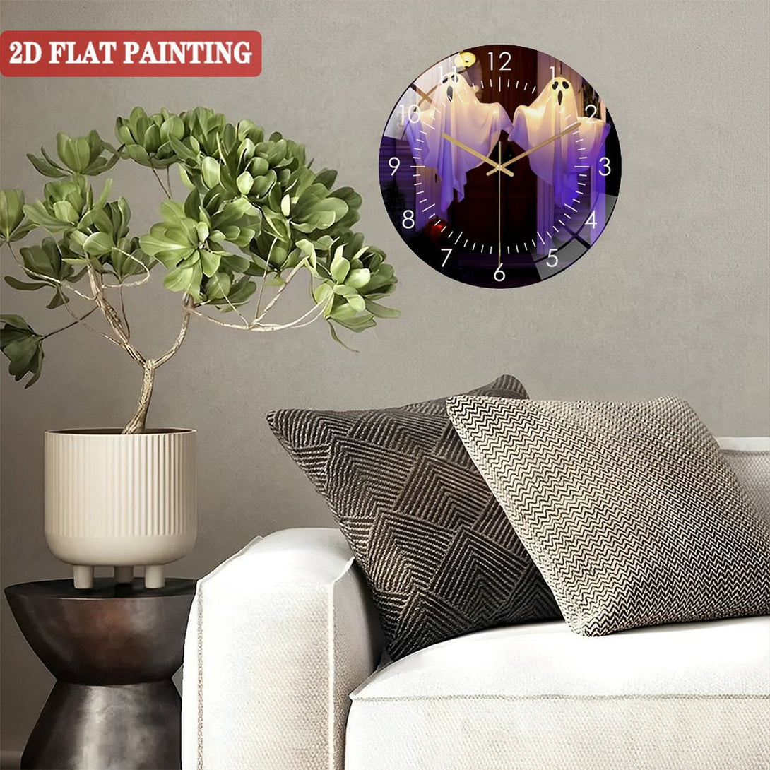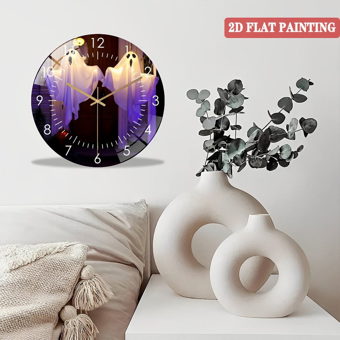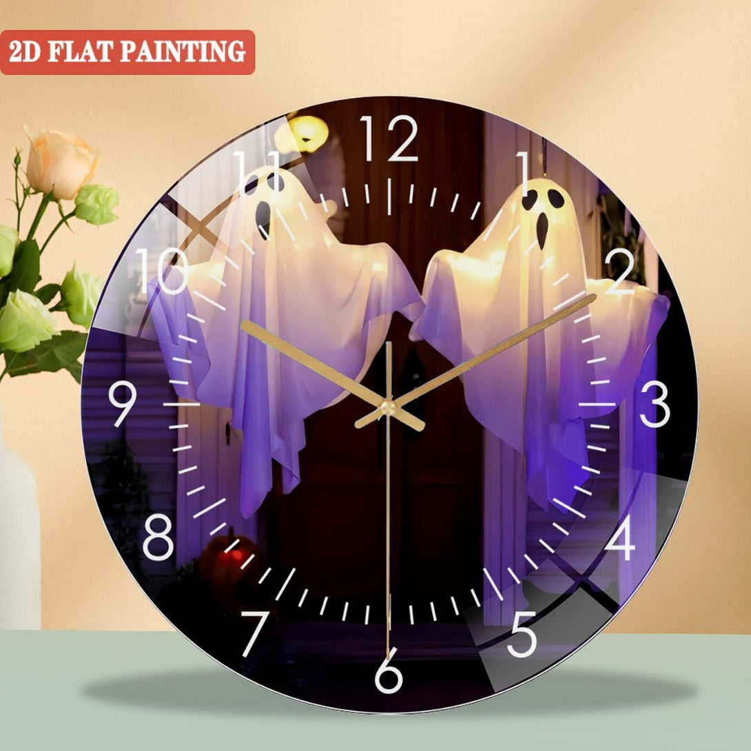Halloween Party Ghost Glass Wall Clocks,Indoor Outdoor Hanging Decoration Glass Wall Clocks, Spooky Horror Scream Perfect Halloween Gift