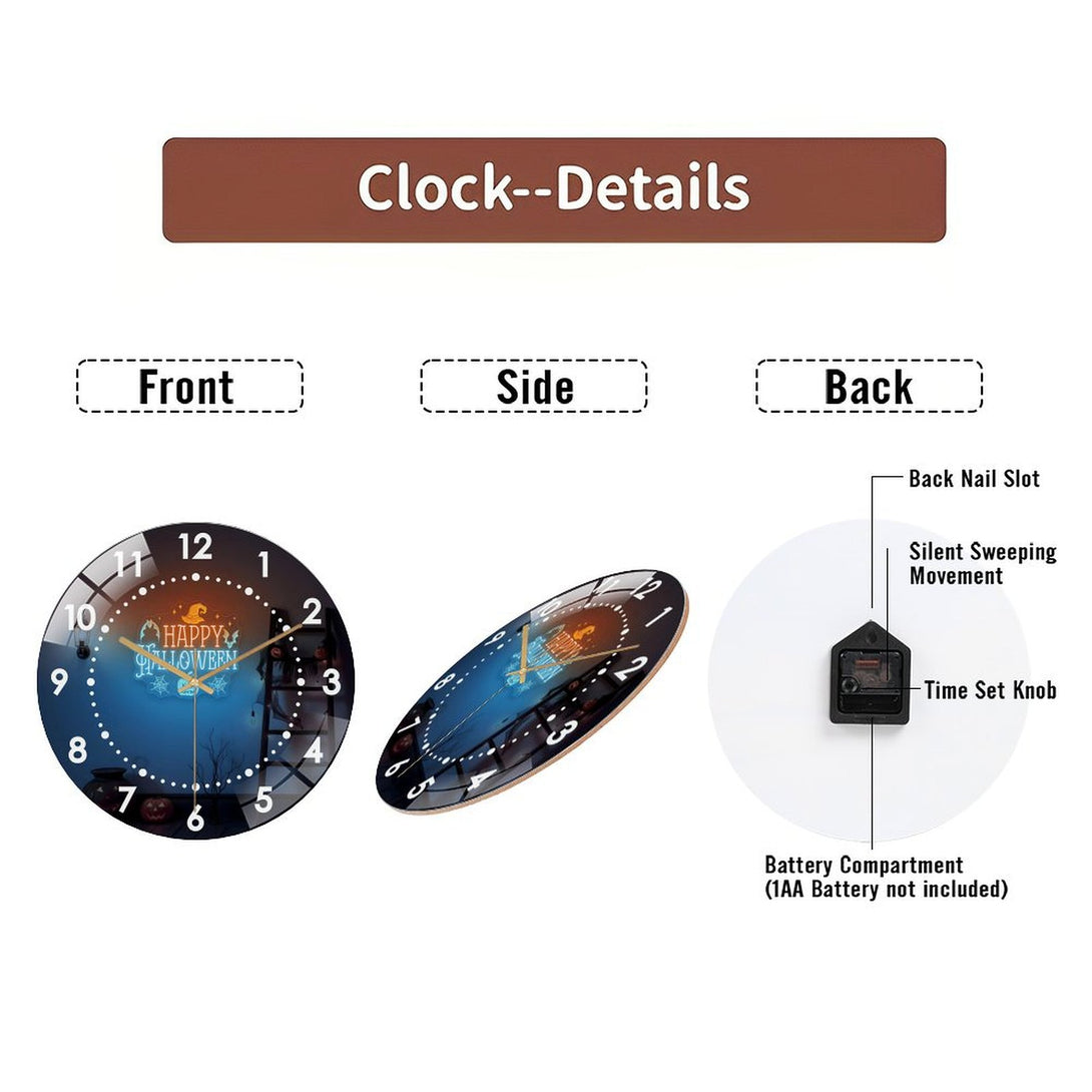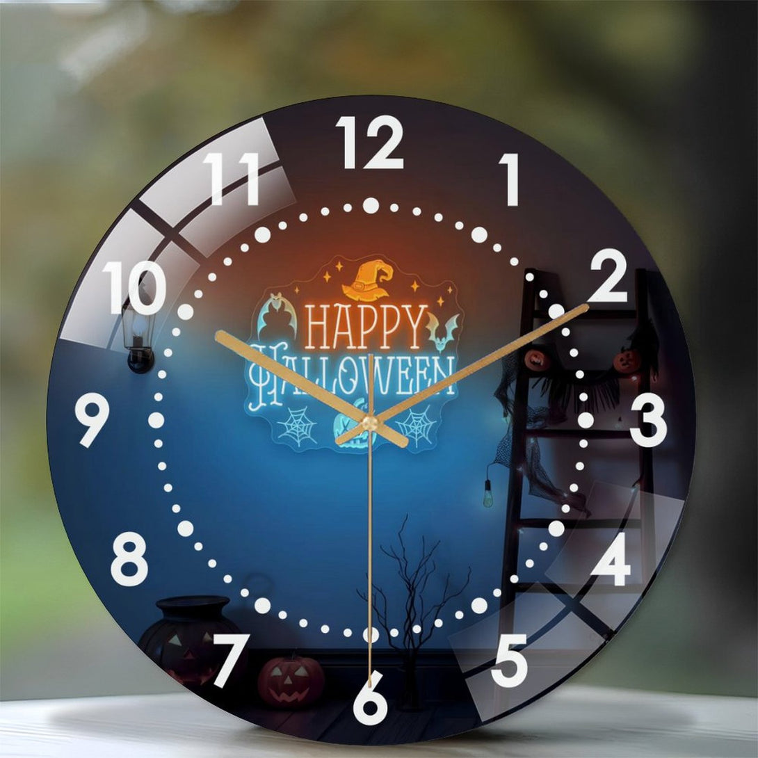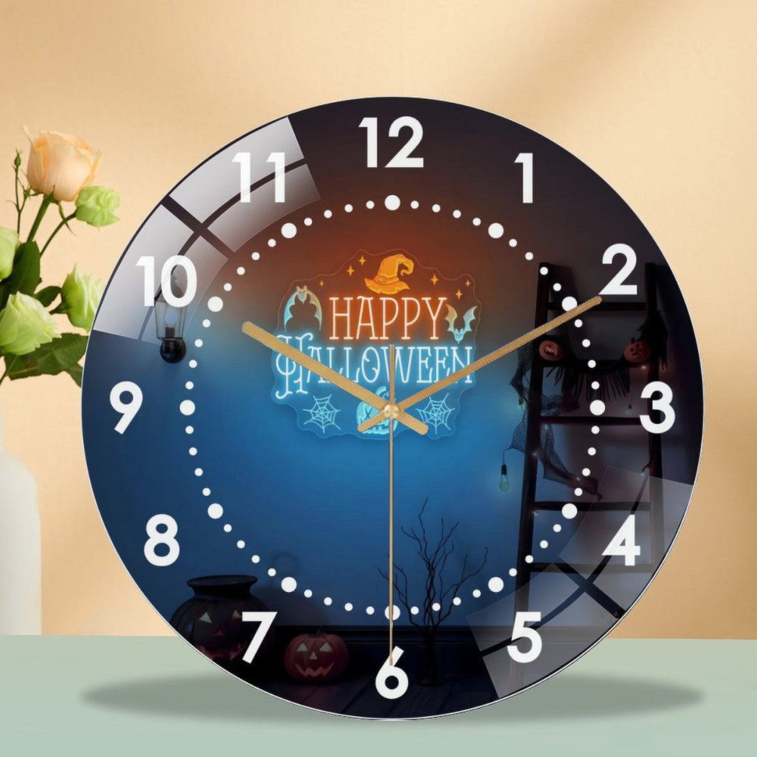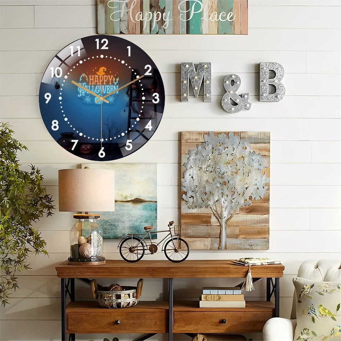 Decor Wall Clocks: Happy Halloween Glass Wall Clock, Pooky Season Home Decor Haunted House Party Decor Wall Clock, for Homes, Bars, Offices, Man Caves, Garages, And Living Rooms. Hallo-ween Gift .