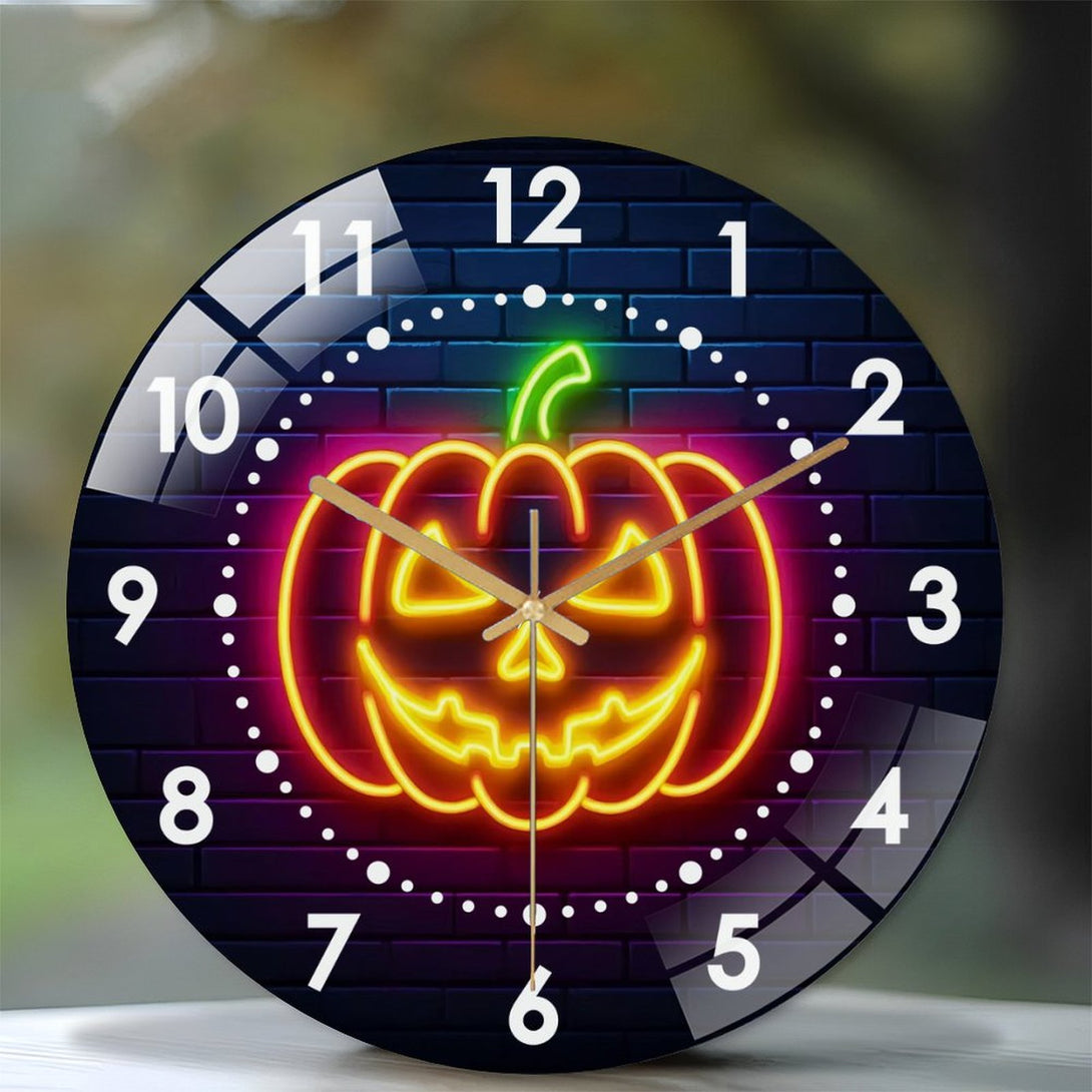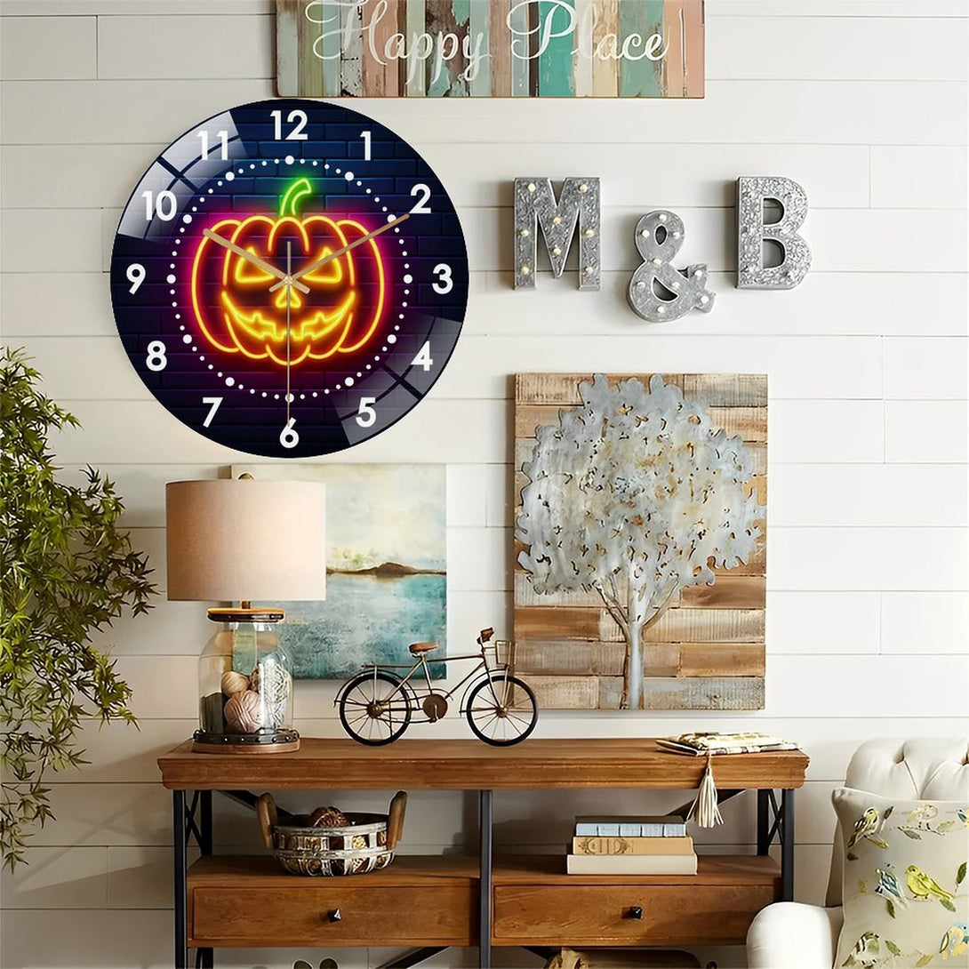 Decor Wall Clocks: Horror Pumpkin Halloween- Glass Wall Clock,Halloween- Home Decor Wall Clock, for Homes, Bars, Offices, Man Caves, Garages, And Living Rooms. Hallo-ween Gift .
