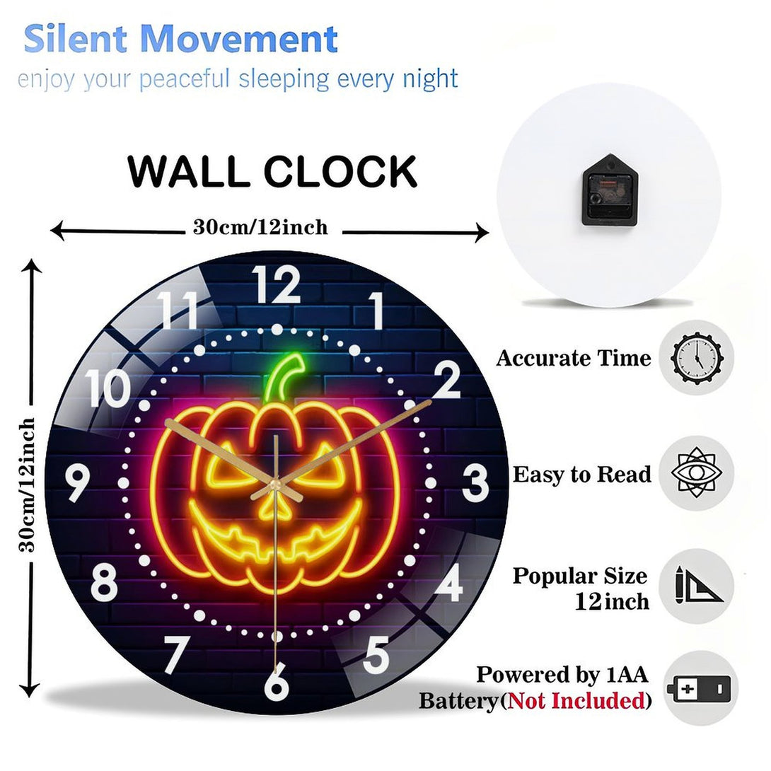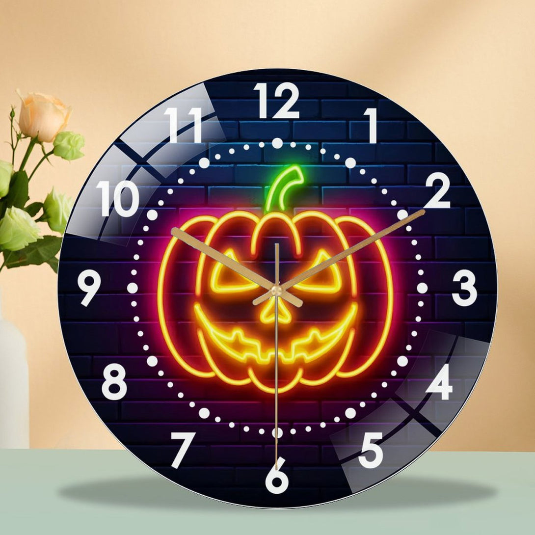 Horror Pumpkin Halloween- Glass Wall Clock,Halloween- Home Decor Wall Clock, for Homes, Bars, Offices, Man Caves, Garages, And Living Rooms. Hallo-ween Gift .Also Makes A Grea.,12×12inch(30×30cm)