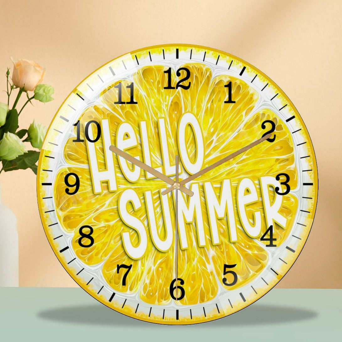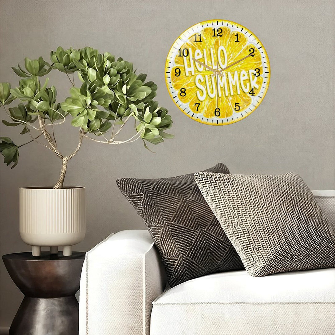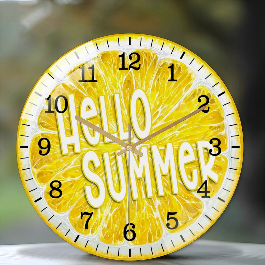 Decor Wall Clocks: Lemon Slice Hello Summer Lemon Glass Wall Clock, Lemon Decor Wall Clock for Homes, Bars, Offices, Man Caves, Garages, And Living Rooms .Also Makes A Great Gift.