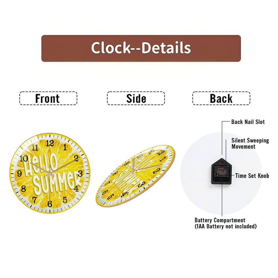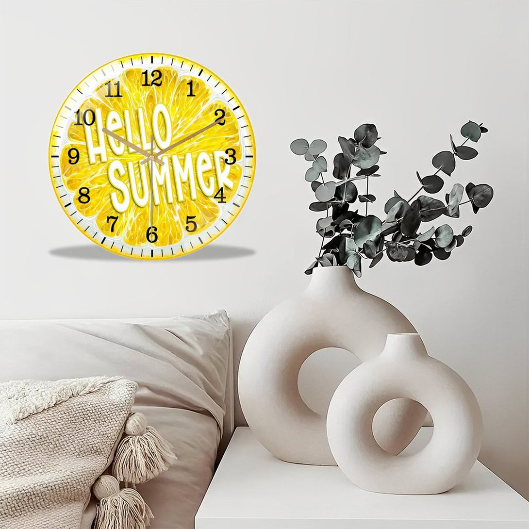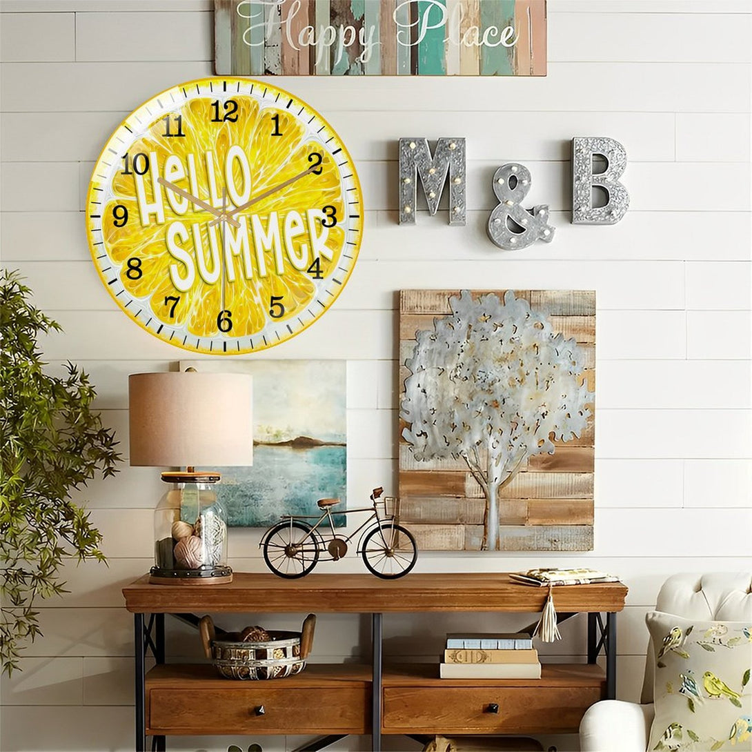Decor Wall Clocks: Lemon Slice Hello Summer Lemon Glass Wall Clock, Lemon Decor Wall Clock for Homes, Bars, Offices, Man Caves, Garages, And Living Rooms .Also Makes A Great Gift.