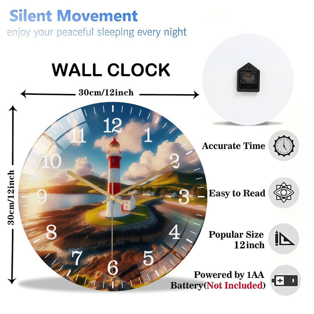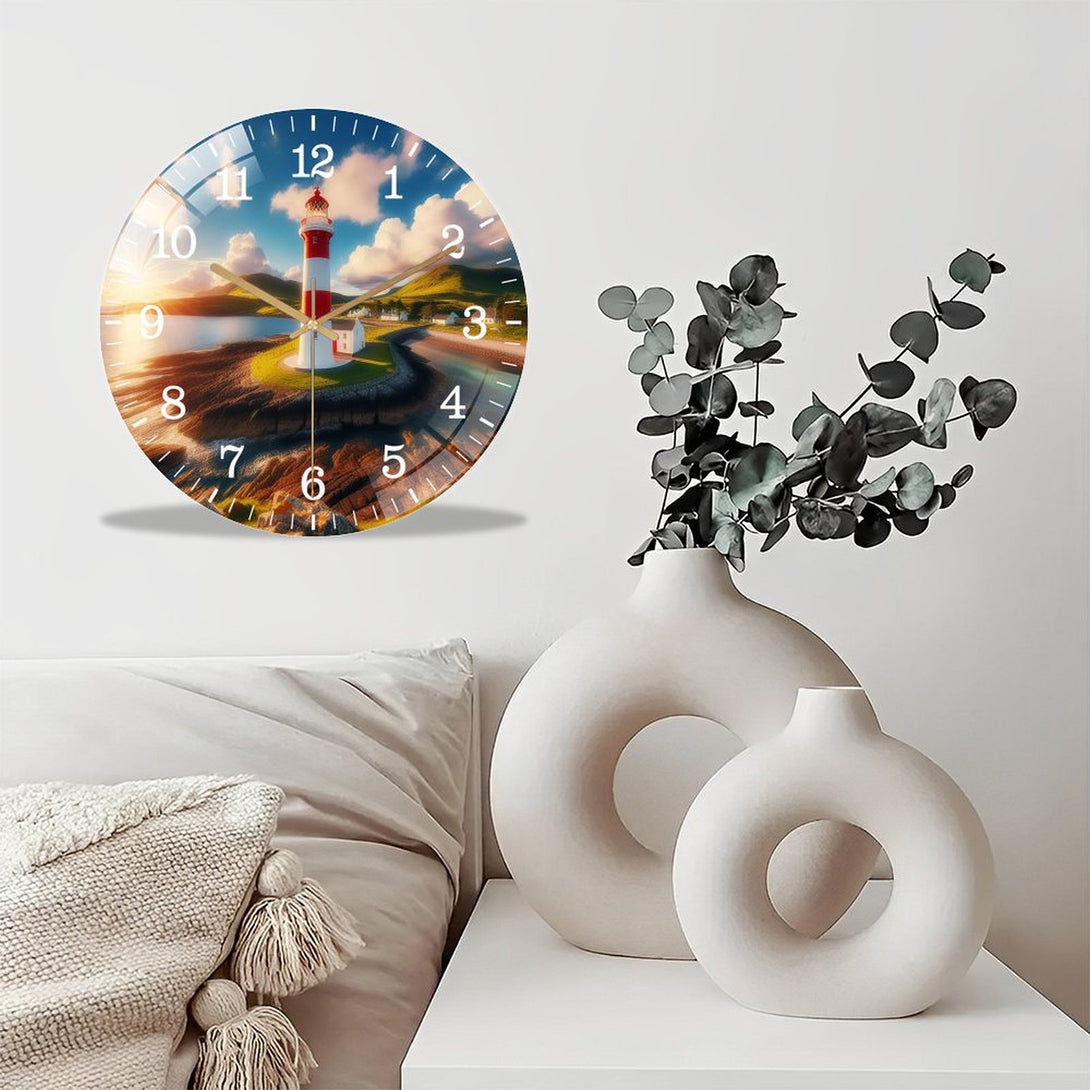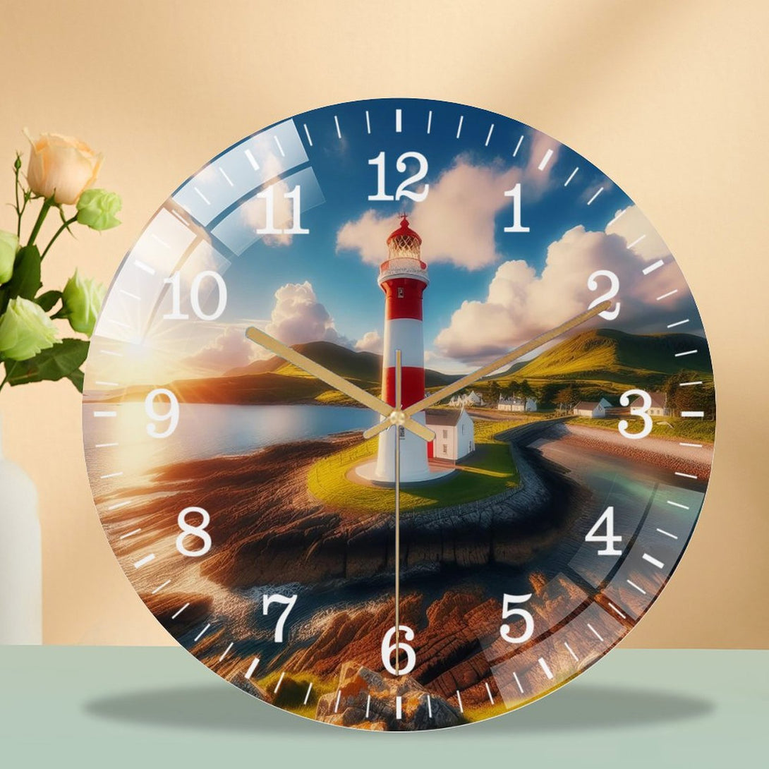 Lighthouse on Peninsula Glass Wall Clock ,Decor Wall Clock.Gift for Her for Homes, Bars, Offices, Man Caves, Garages, And Living Rooms. for Your Home Or Gift,12×12inch(30×30cm)