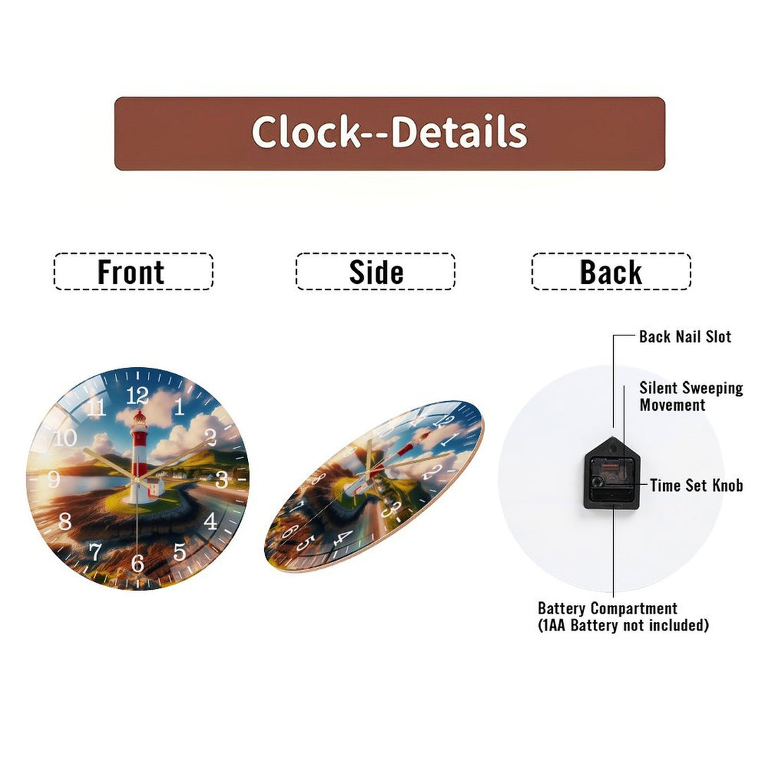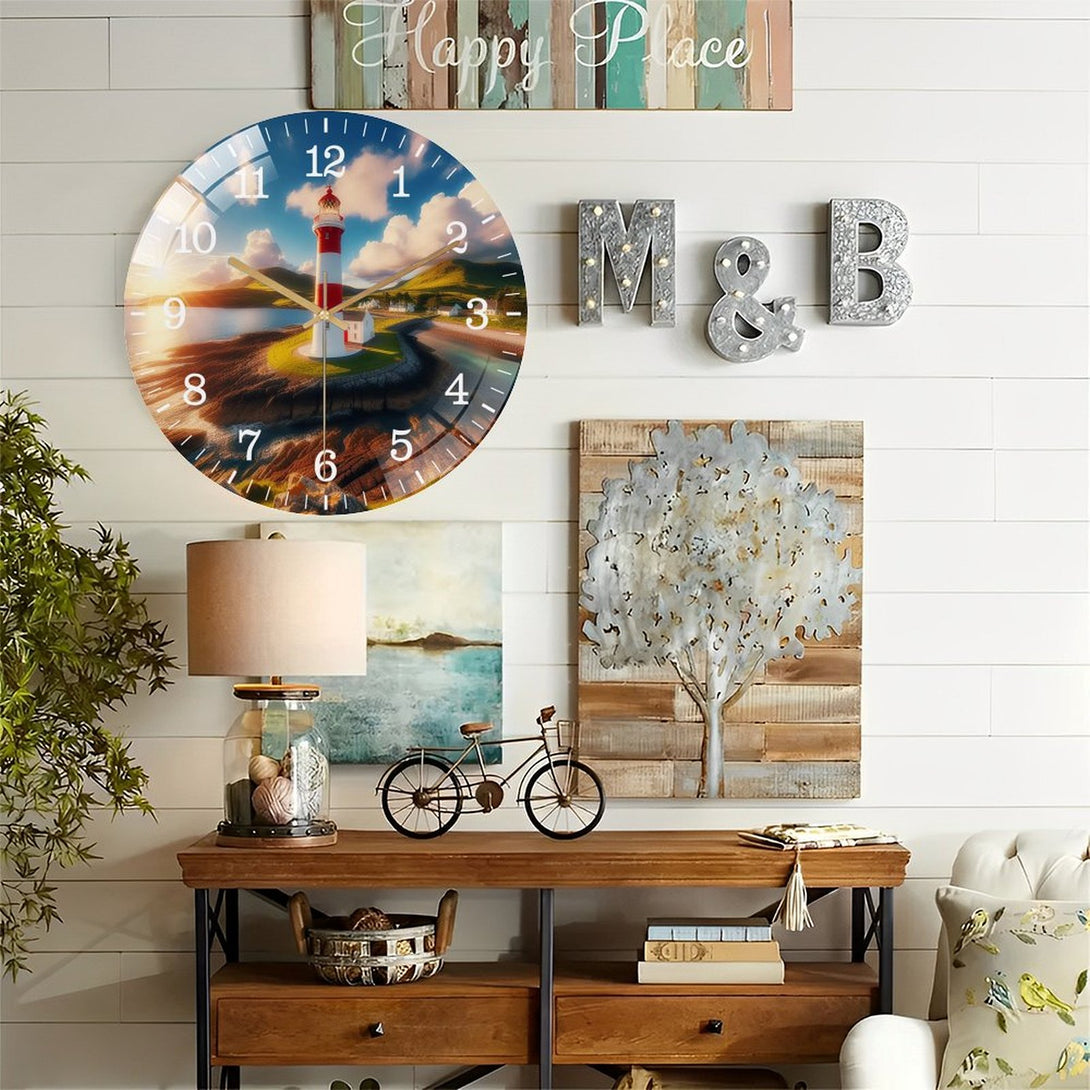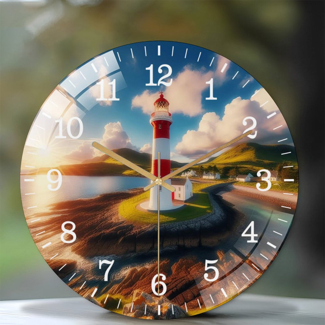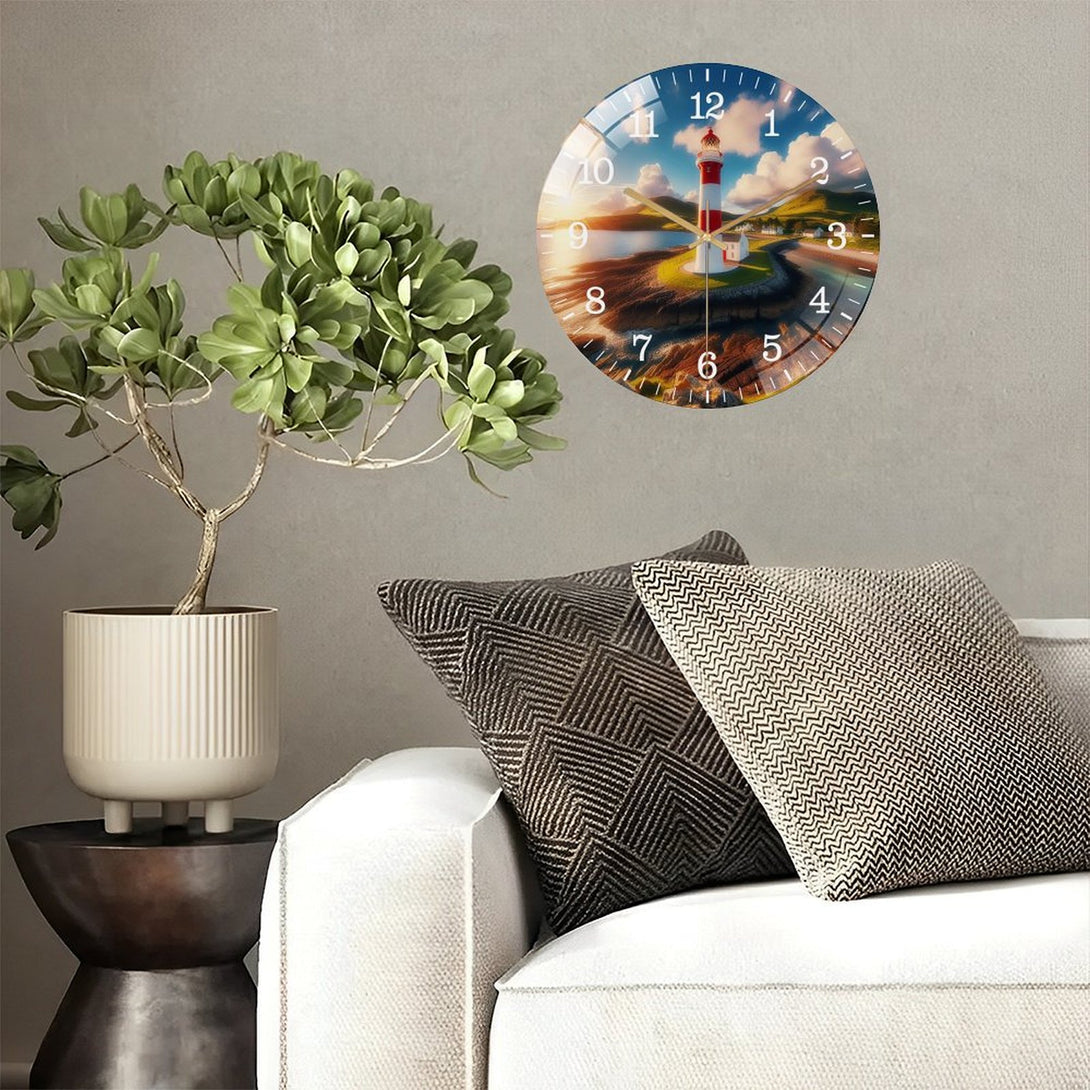 Lighthouse on Peninsula Glass Wall Clock ,Decor Wall Clock.Gift for Her for Homes, Bars, Offices, Man Caves, Garages, And Living Rooms. for Your Home Or Gift,12×12inch(30×30cm)