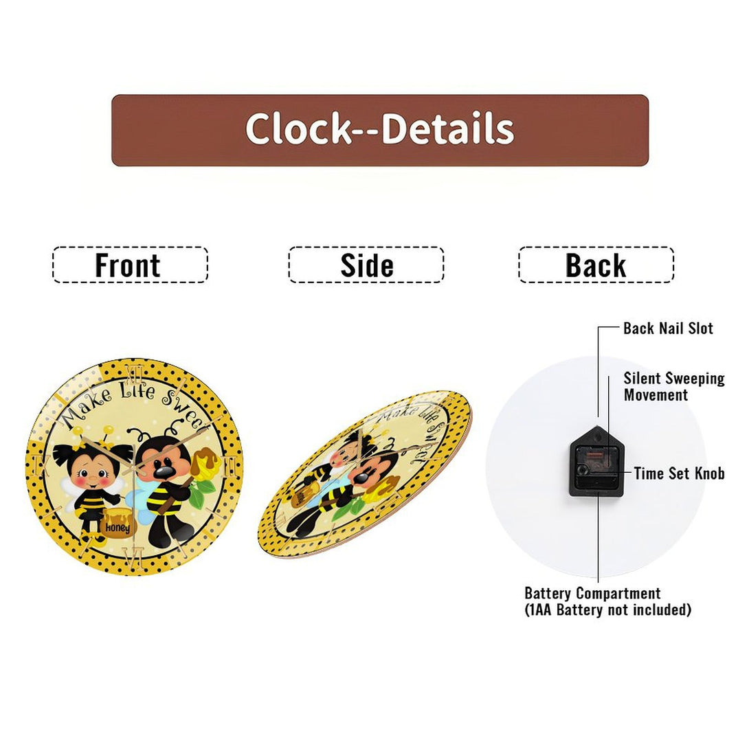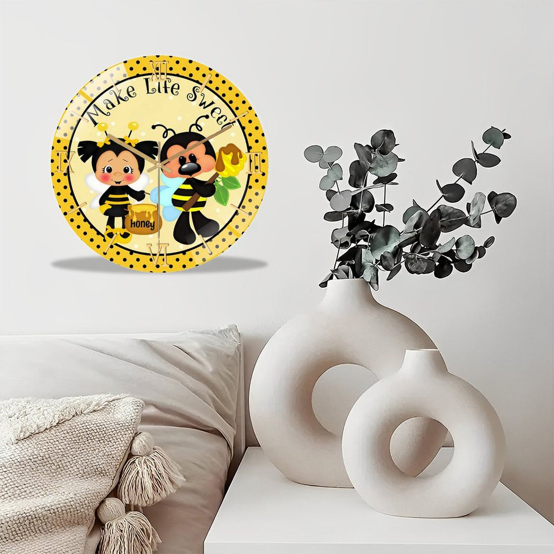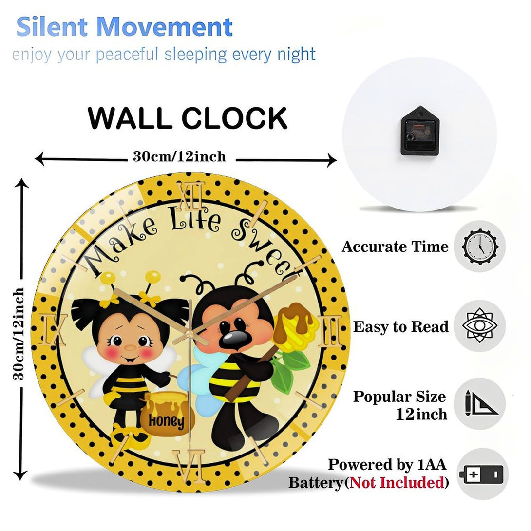 Make Life Sweet Bee Glass Wall Clock Round Spring Summer Wall Clock for Homes, Bars, Offices, Man Caves, Garages, And Living Rooms. Also Makes A Great Gift.,12×12inch(30×30cm)